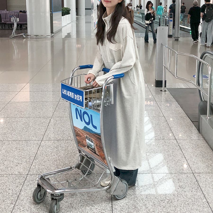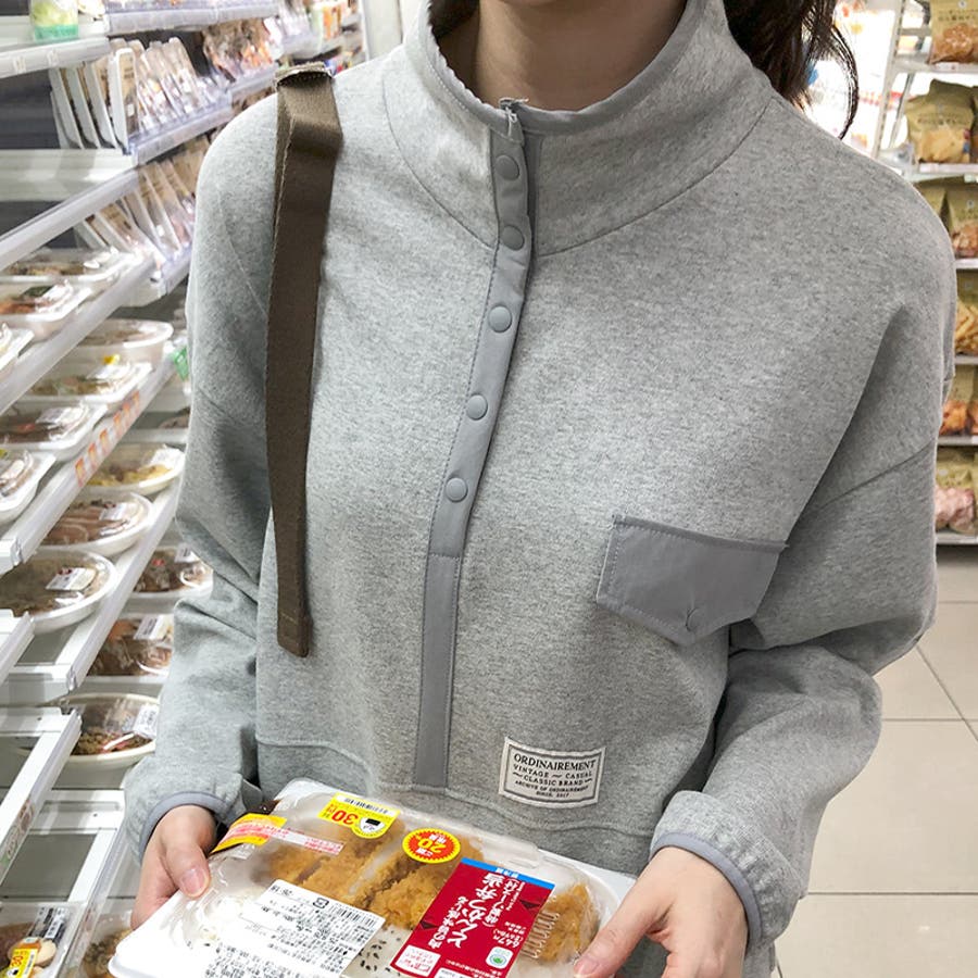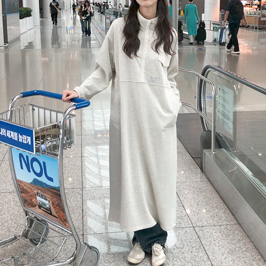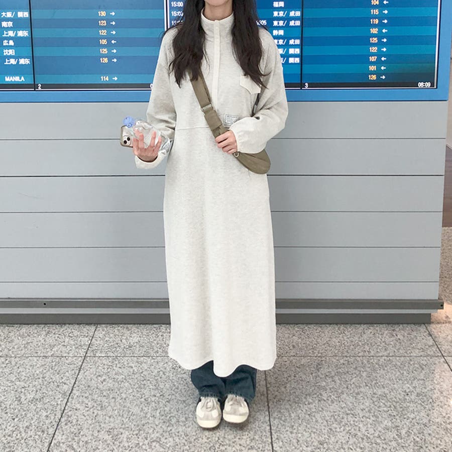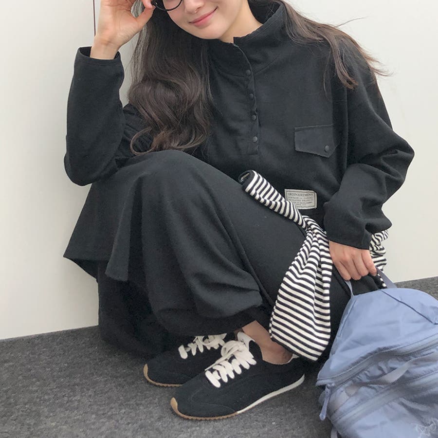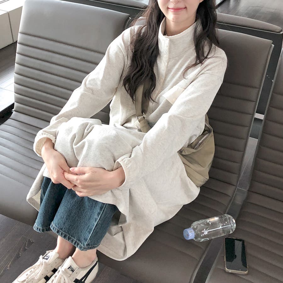 ゆるカワコーデ☆配色スタンドネックスウェットワンピース