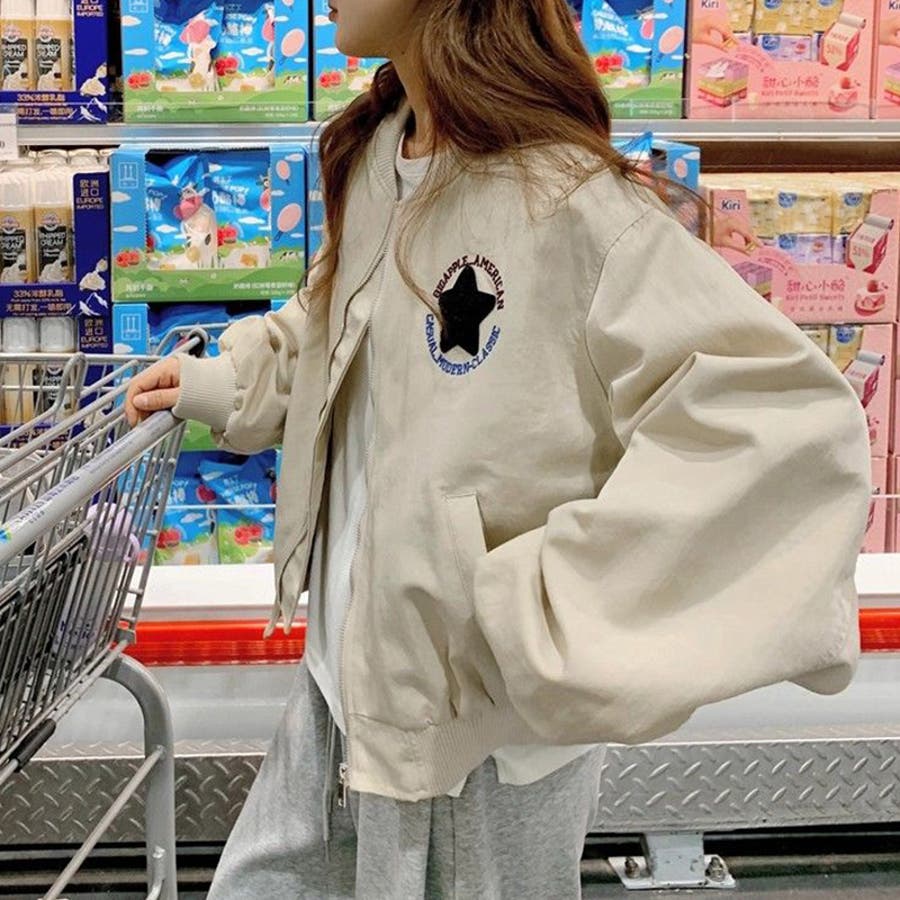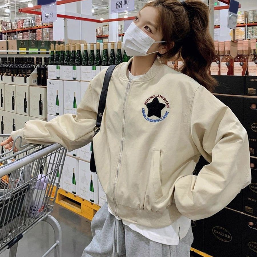 ゆるカワコーデ☆背面刺繍入り スタジャン風ジャケット
