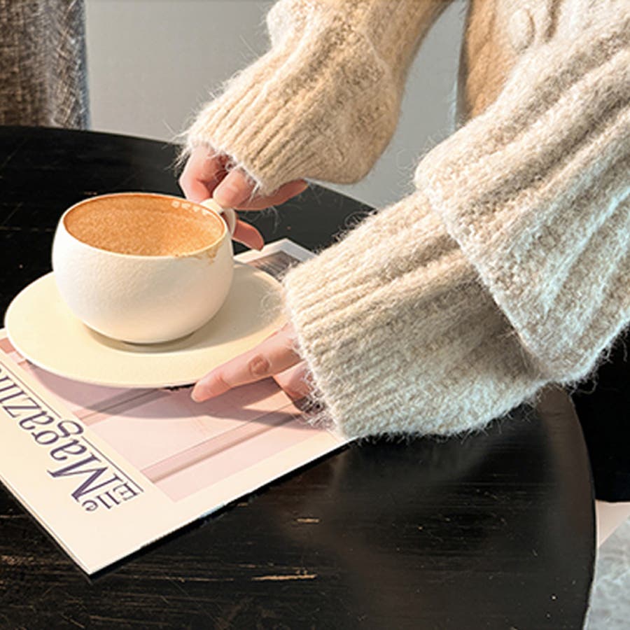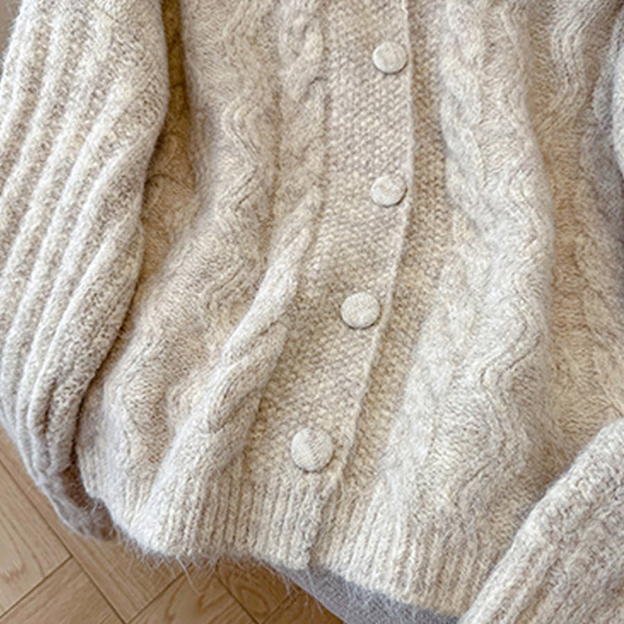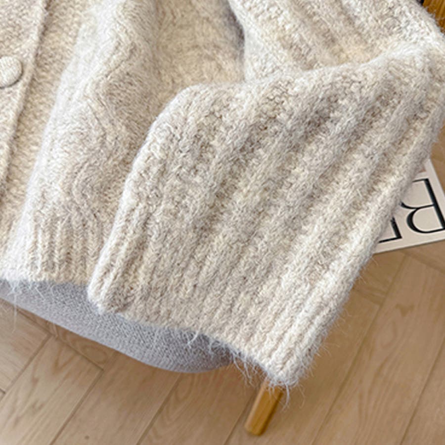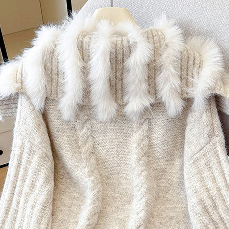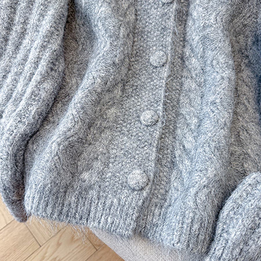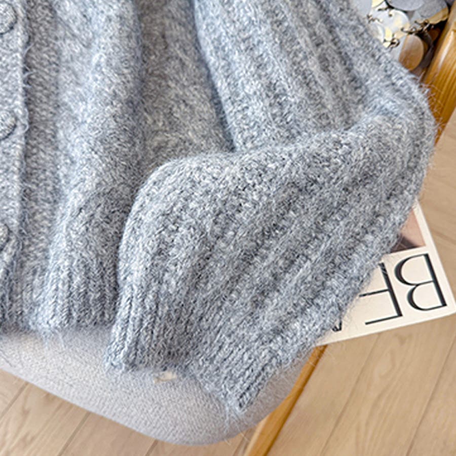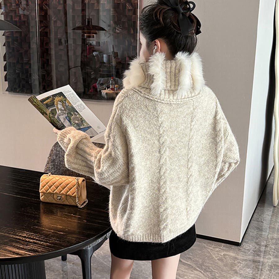 【グレー】甘辛系ガールズ☆ニットカーディガンふんわり厚手ファーカラー付きアウター