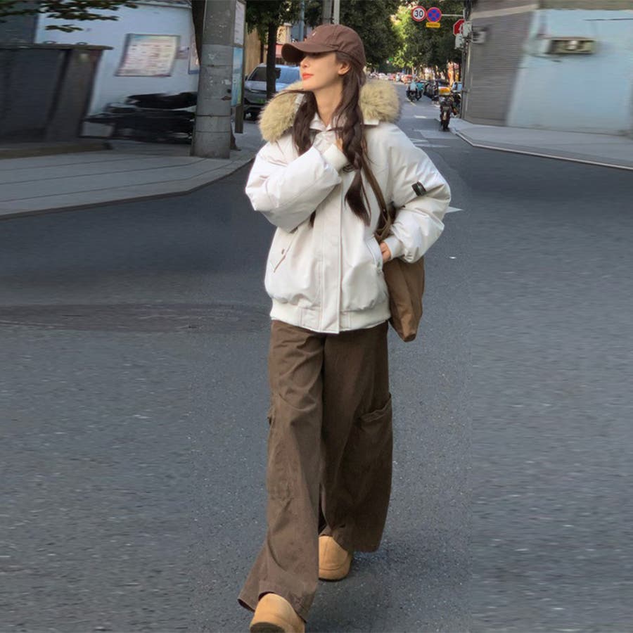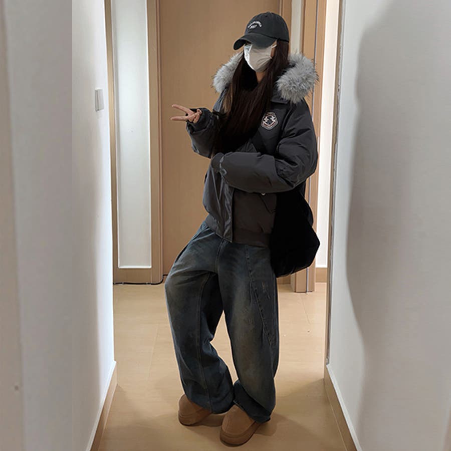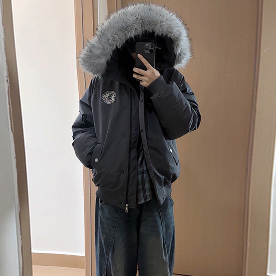 ユニセックス☆ミリタリー風ペアパーカーコート大毛襟