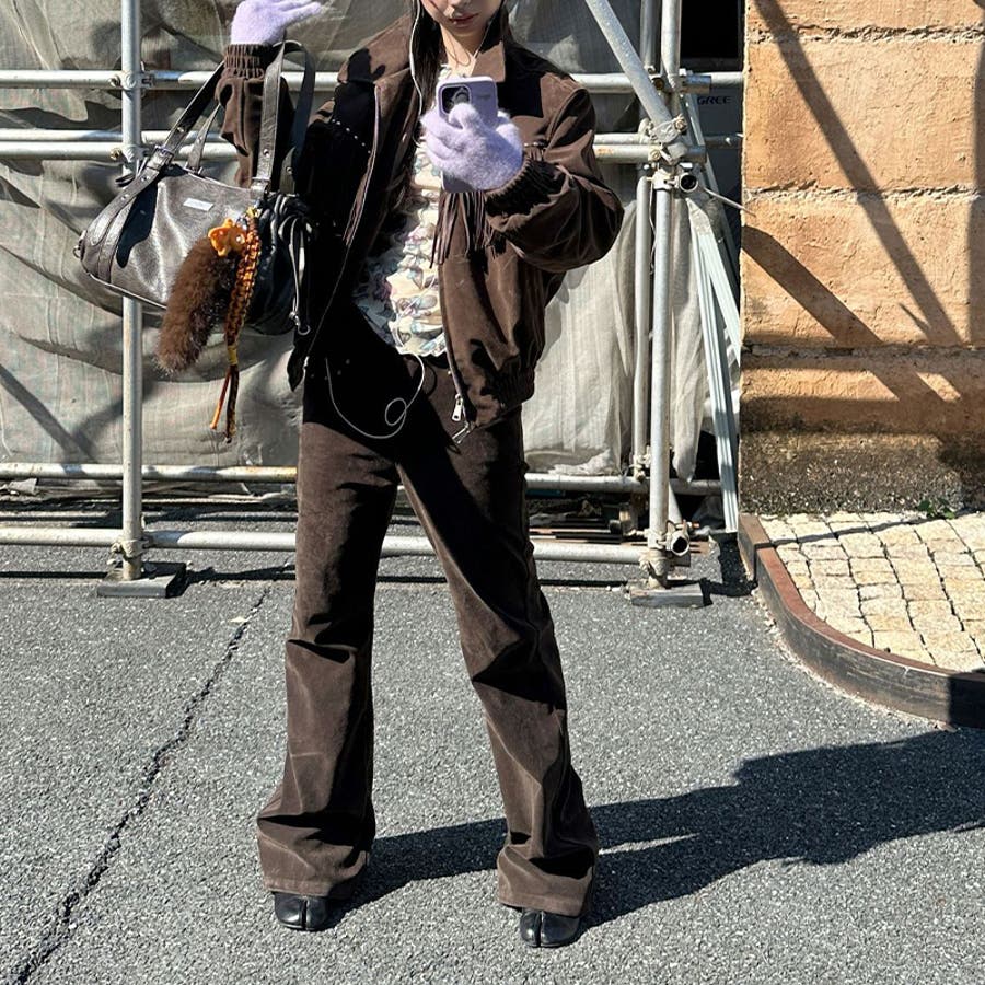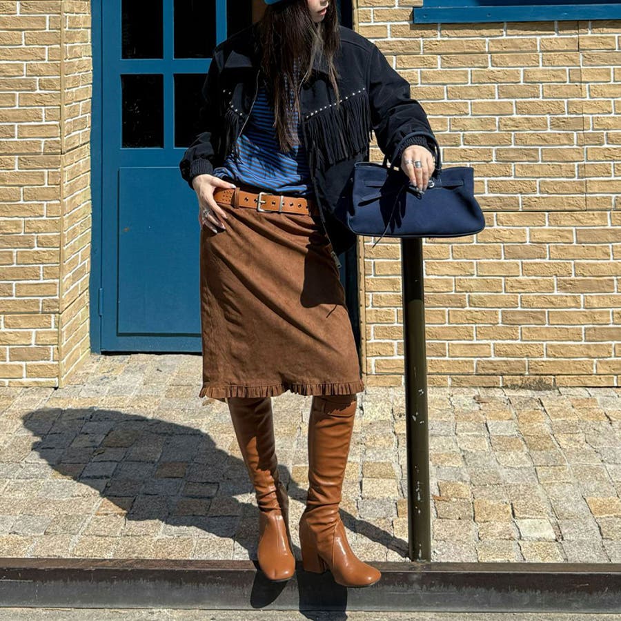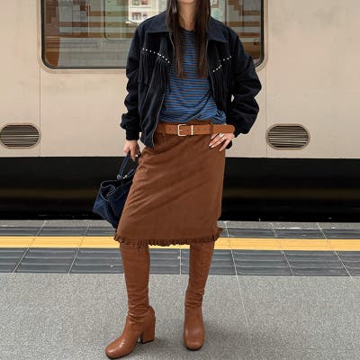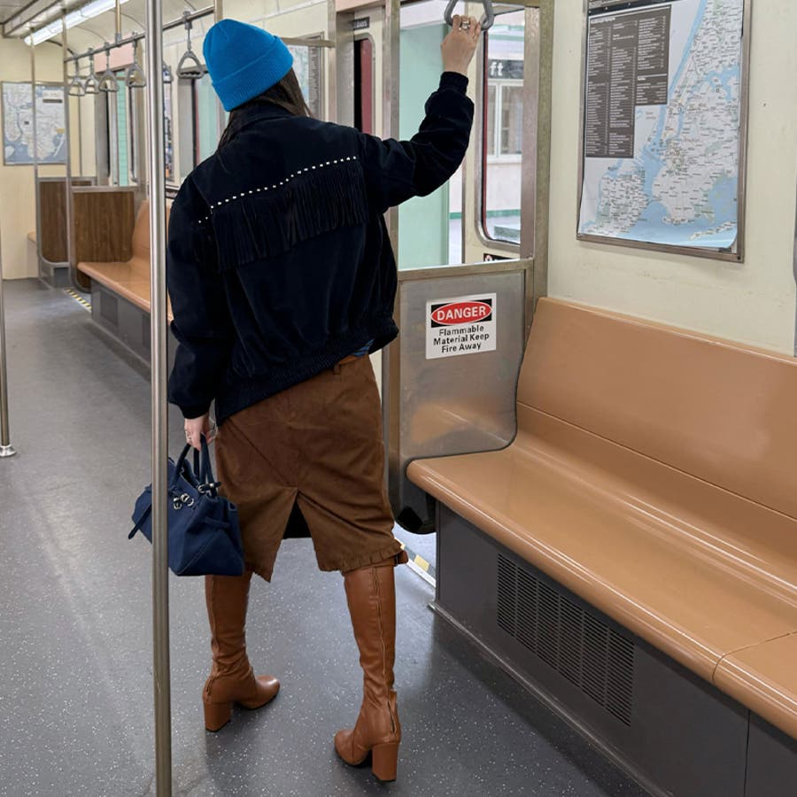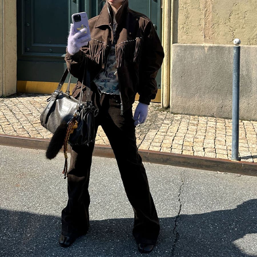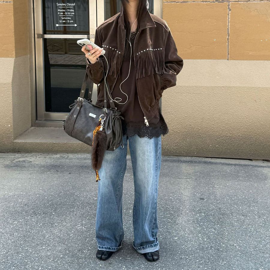 ユニセックス☆スエード中綿ジャケットフリンジスタッズ付