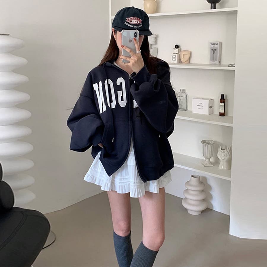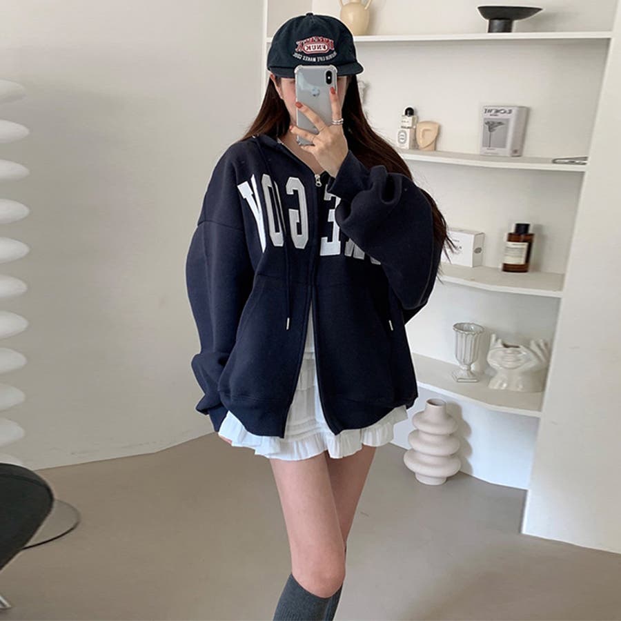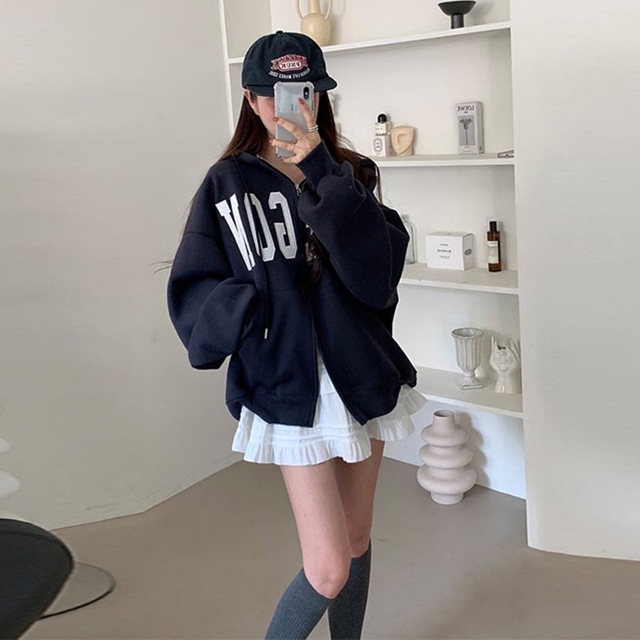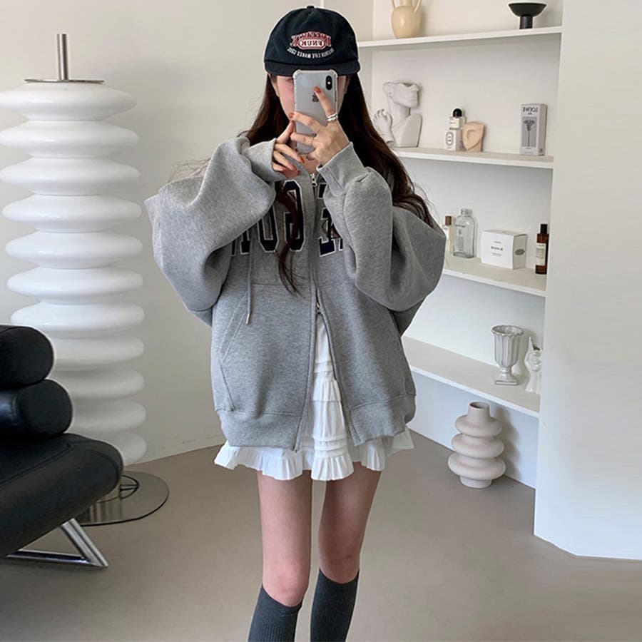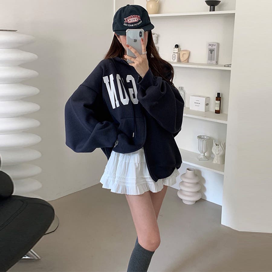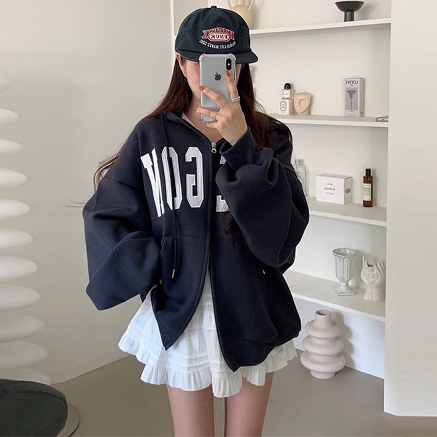 快適スタイルを実現☆ロゴジップパーカー 裏起毛あたたか