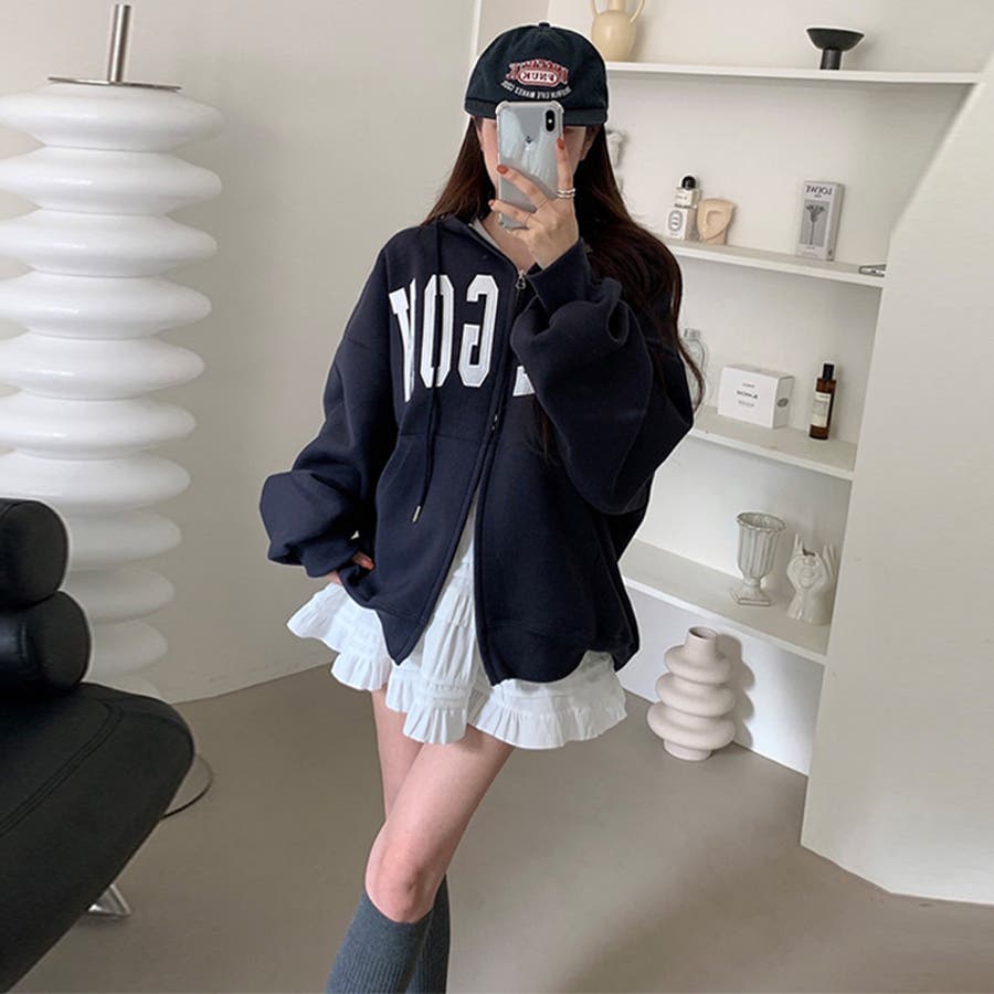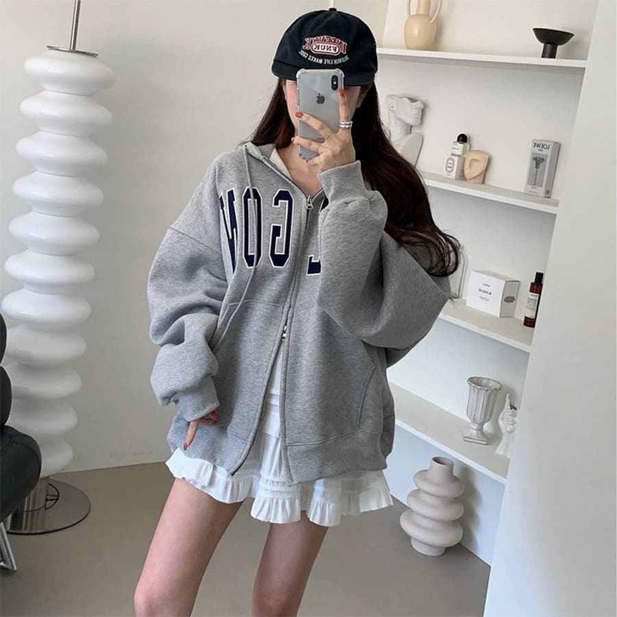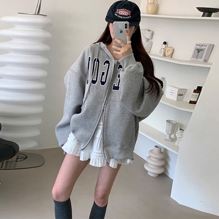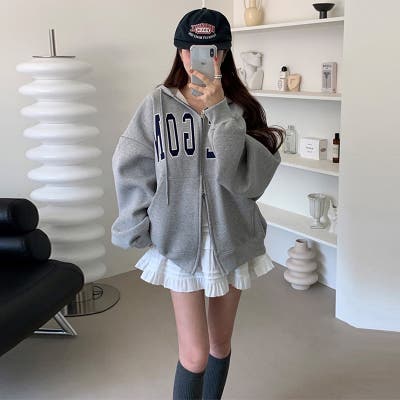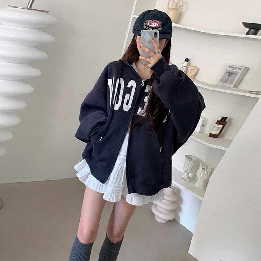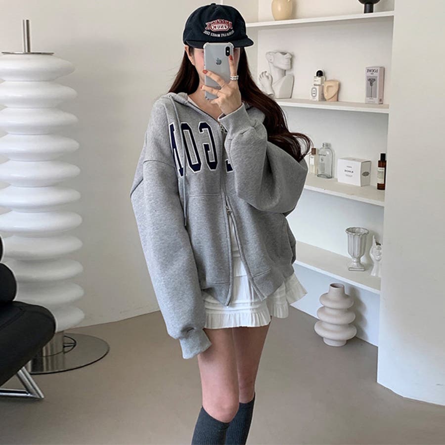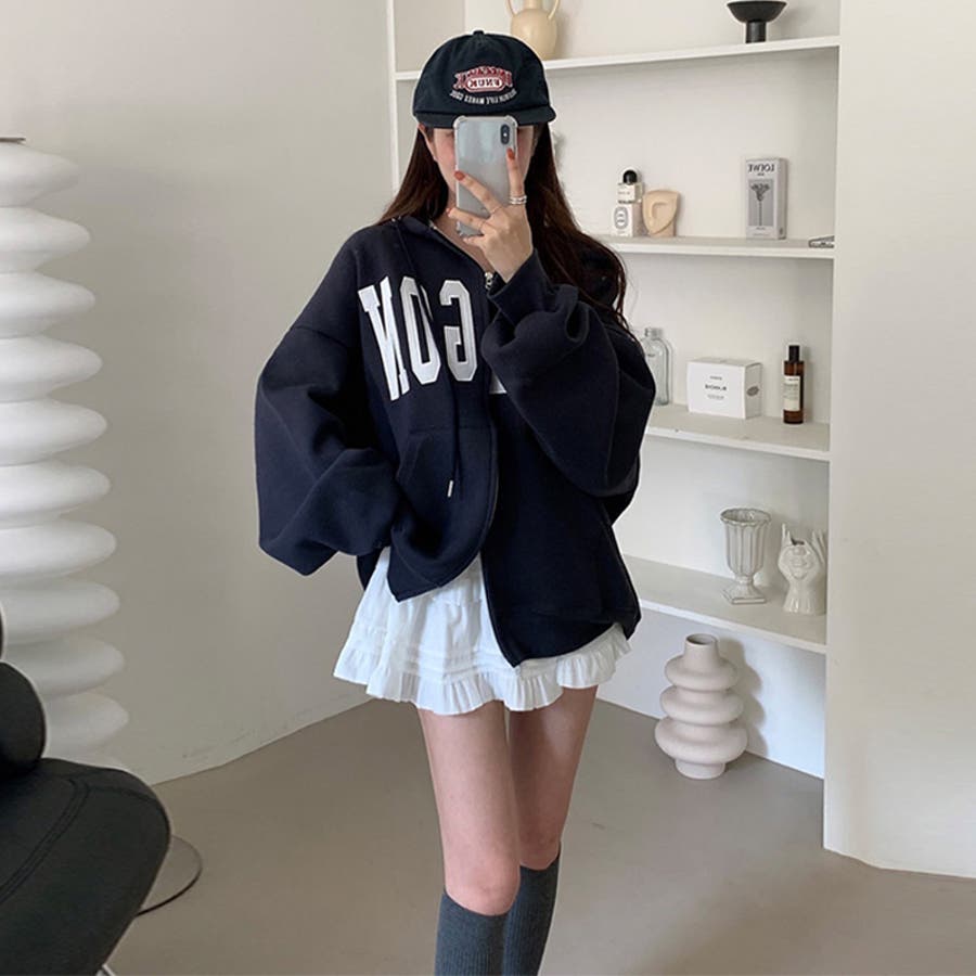 快適スタイルを実現☆ロゴジップパーカー 裏起毛あたたか