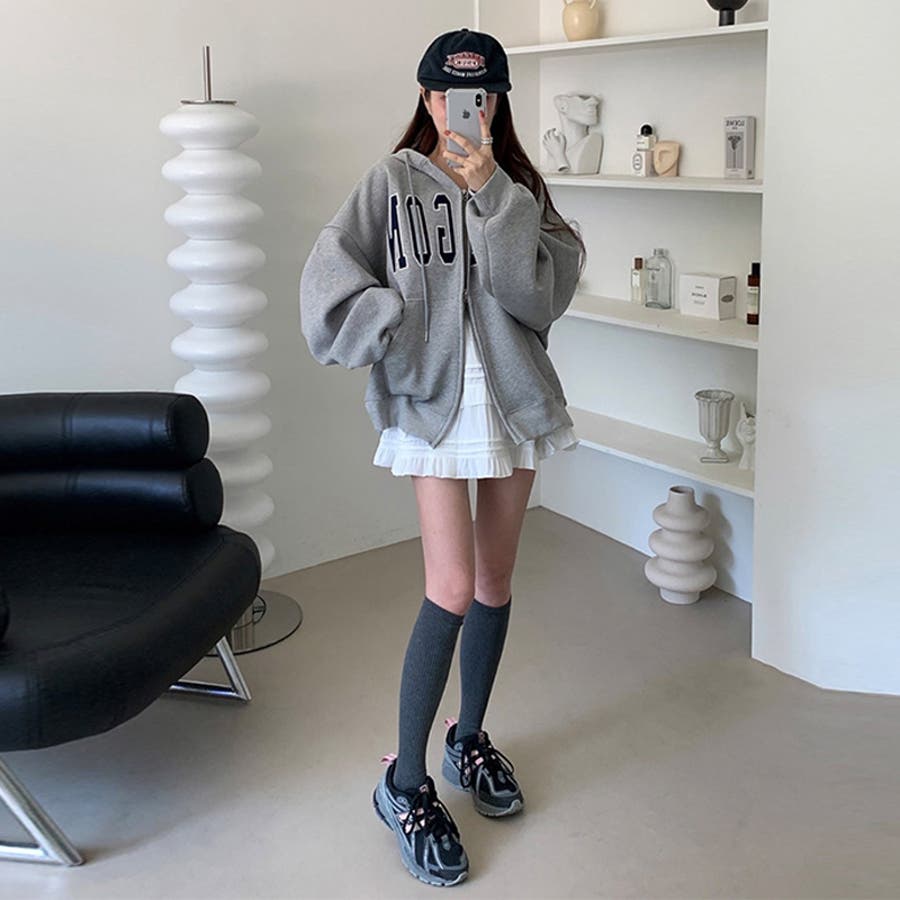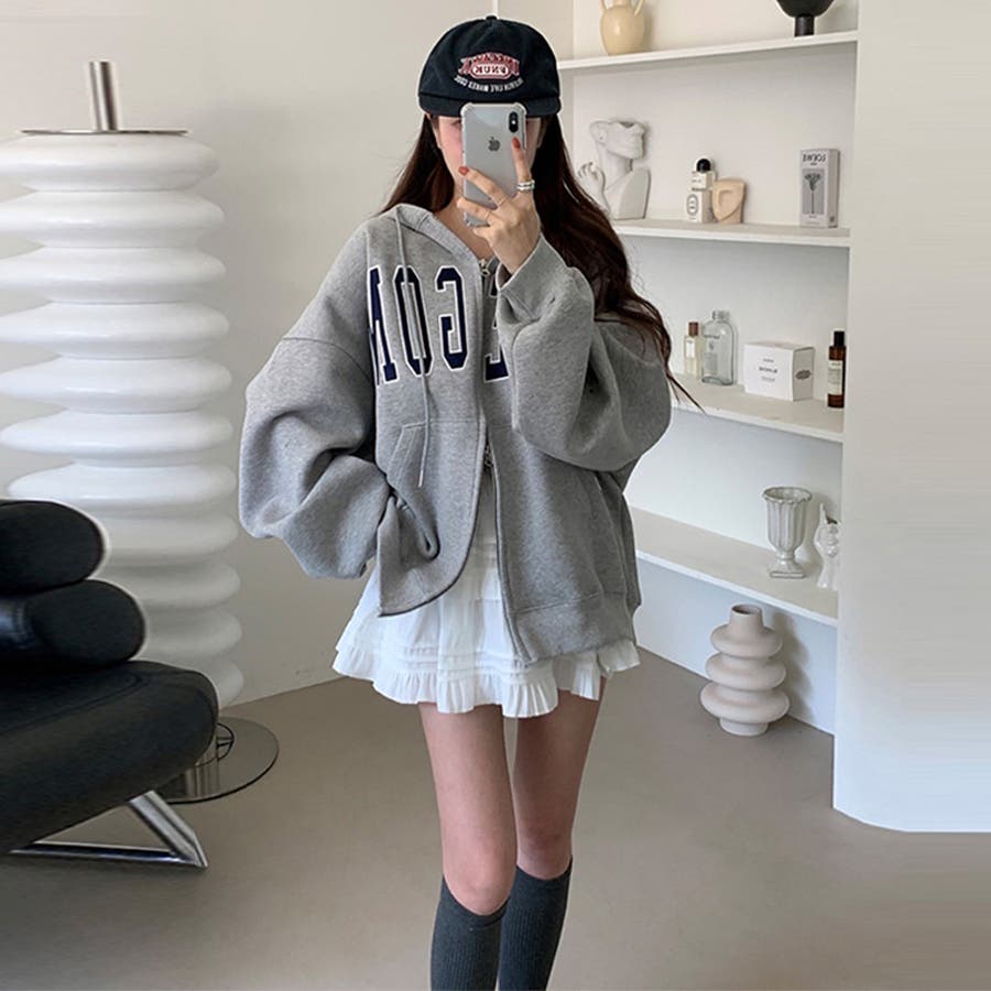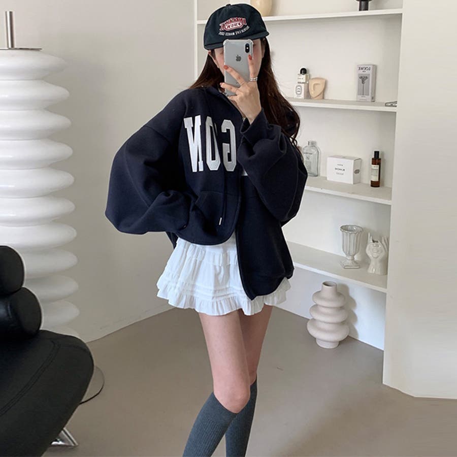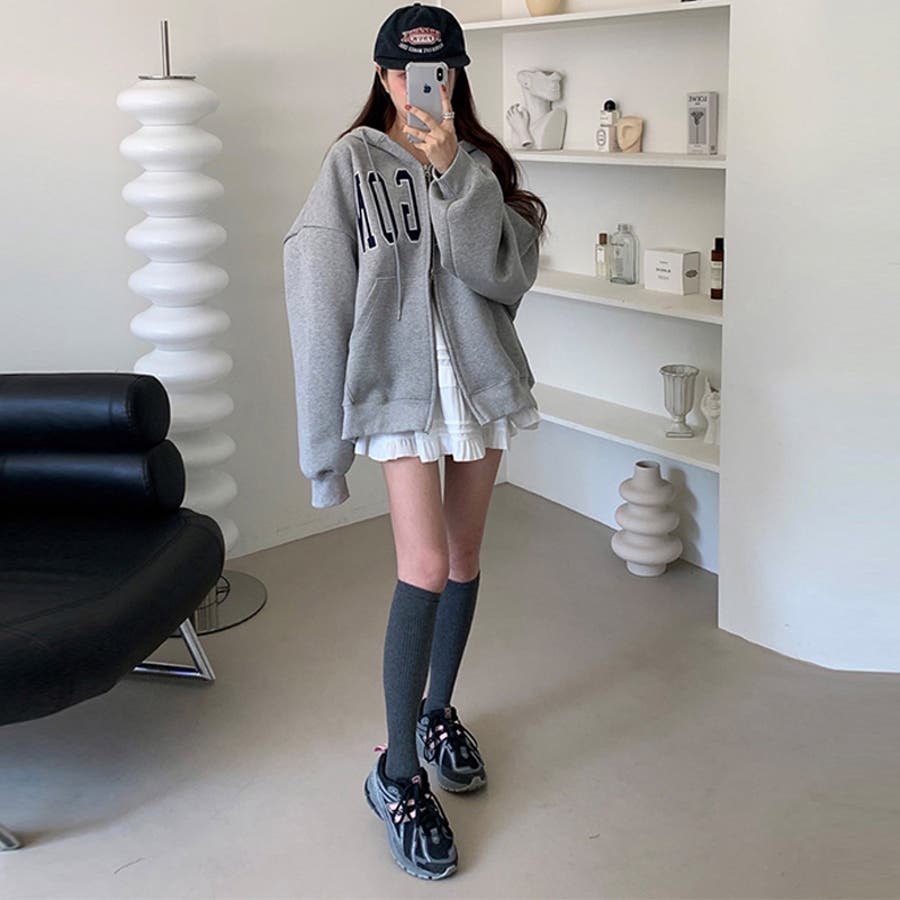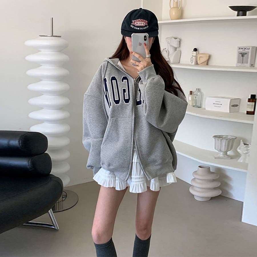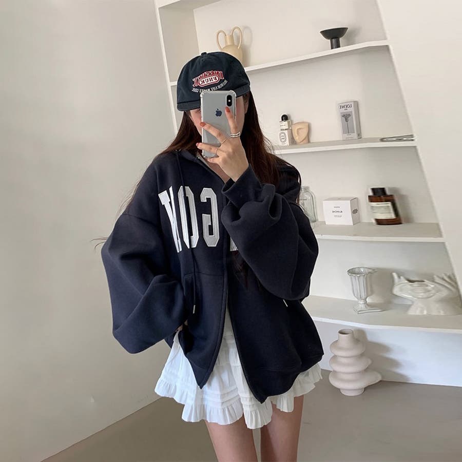 快適スタイルを実現☆ロゴジップパーカー 裏起毛あたたか