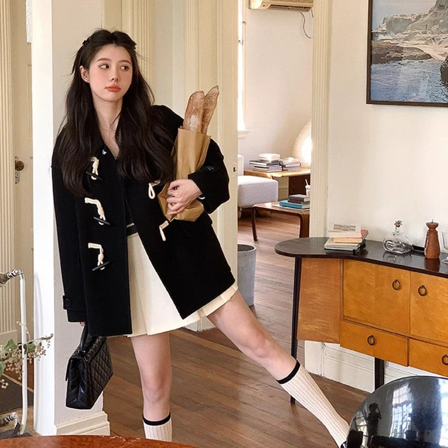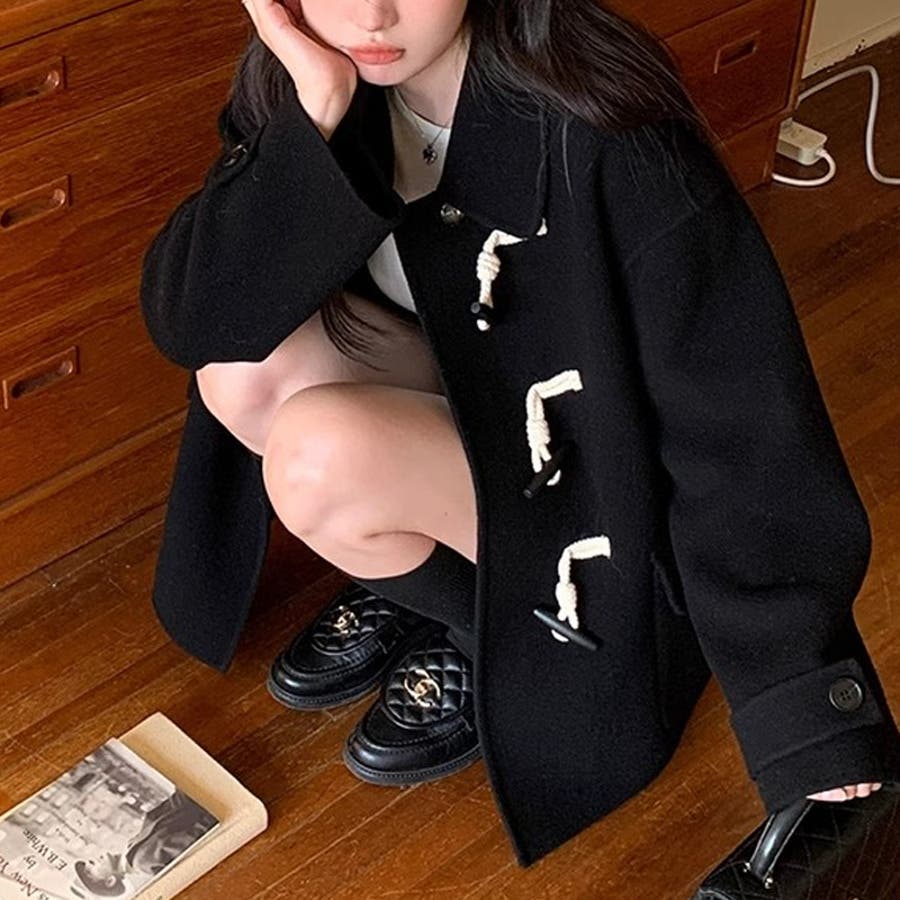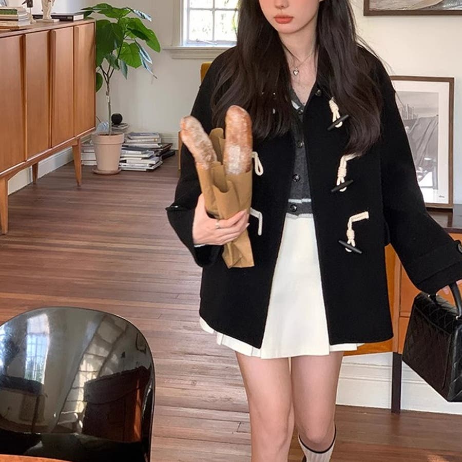 ミレニアル学園風☆牛角ボタンショートコート厚手キルティングウール風アウター