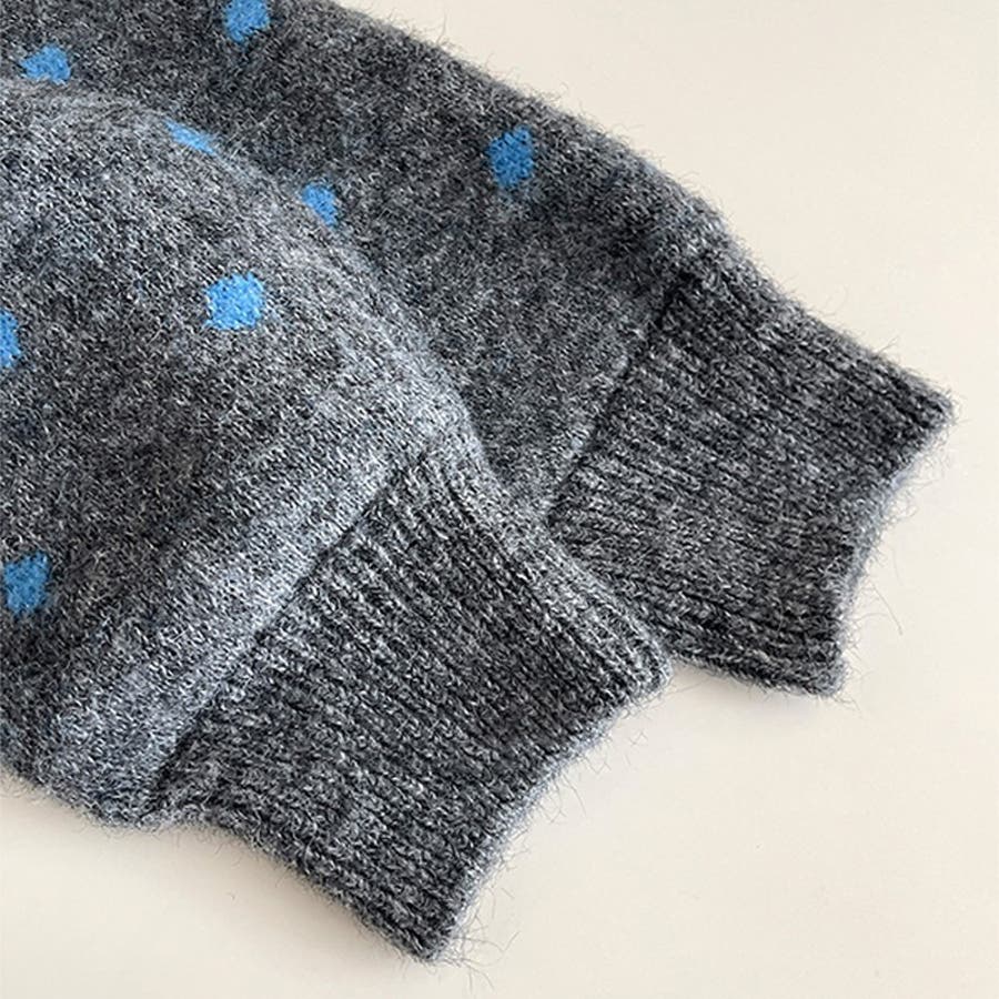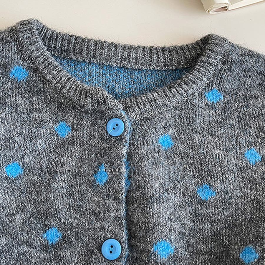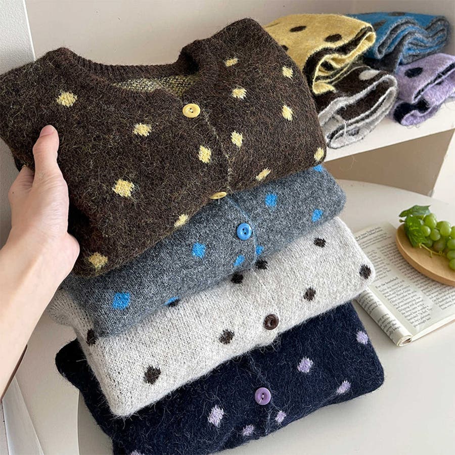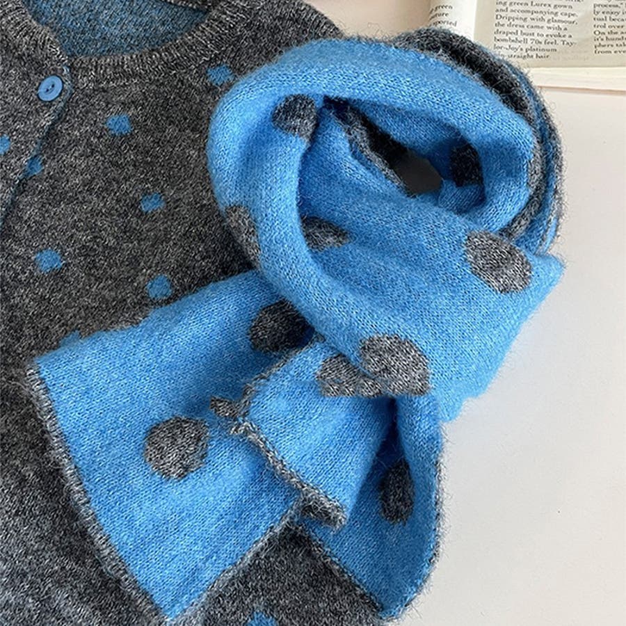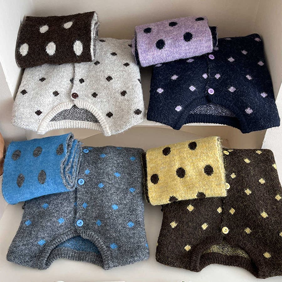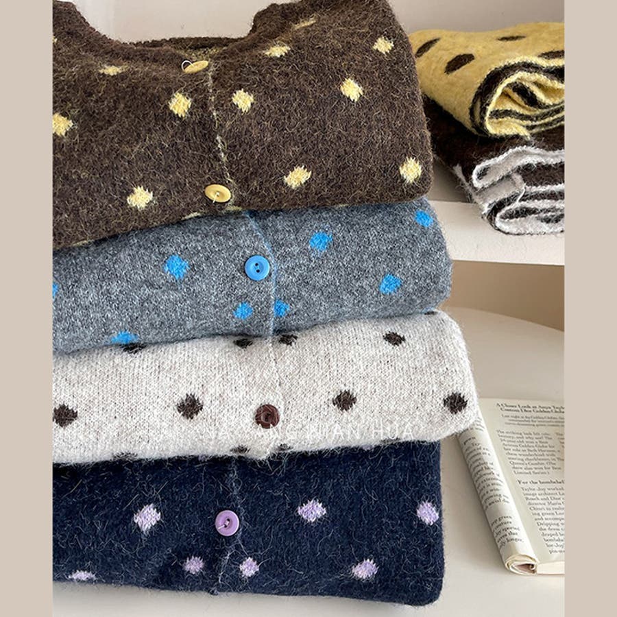 ゆるカワコーデ☆ドット柄ニットカーディガンマフラー付2点セット