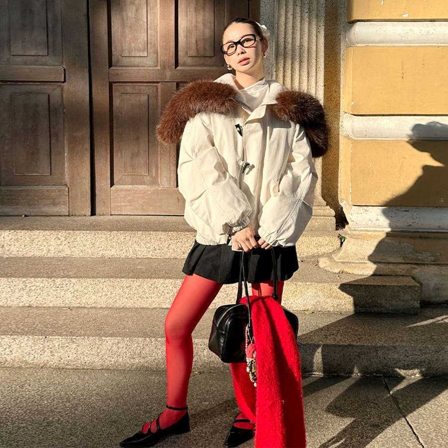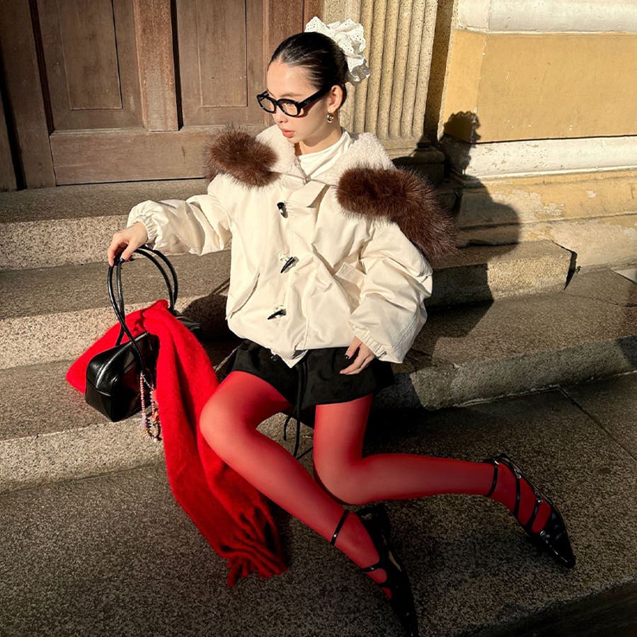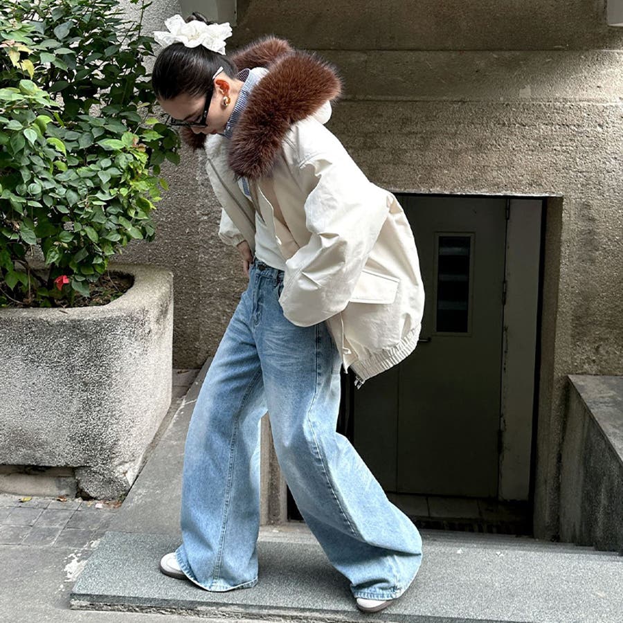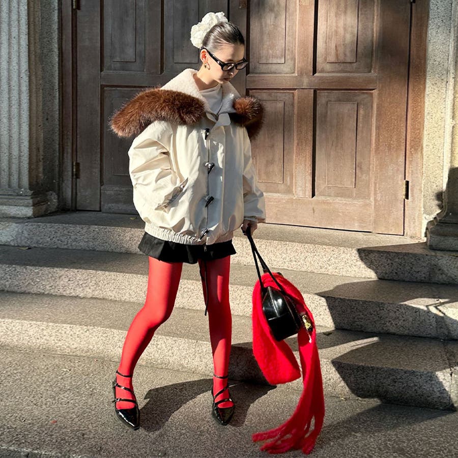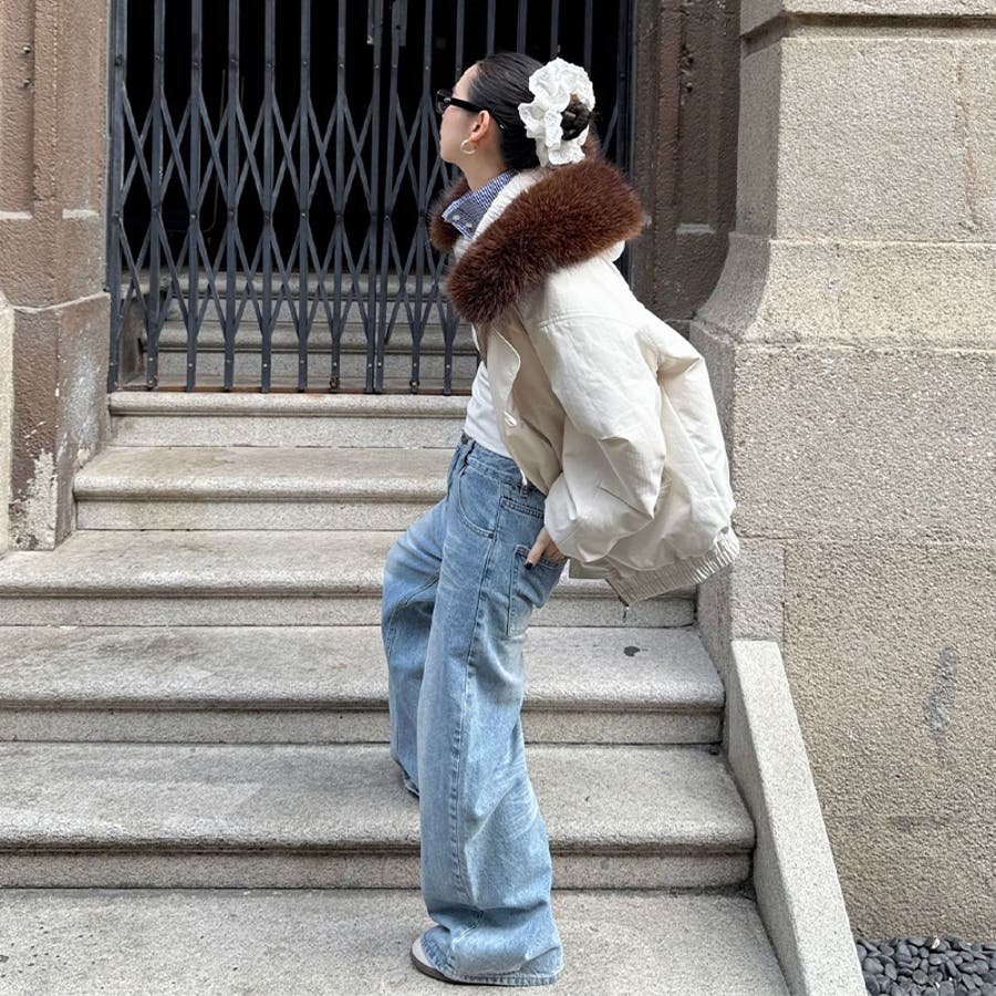 ユニセックス☆ストリート系厚手キルティング牛角ボタンファー付きパーカー