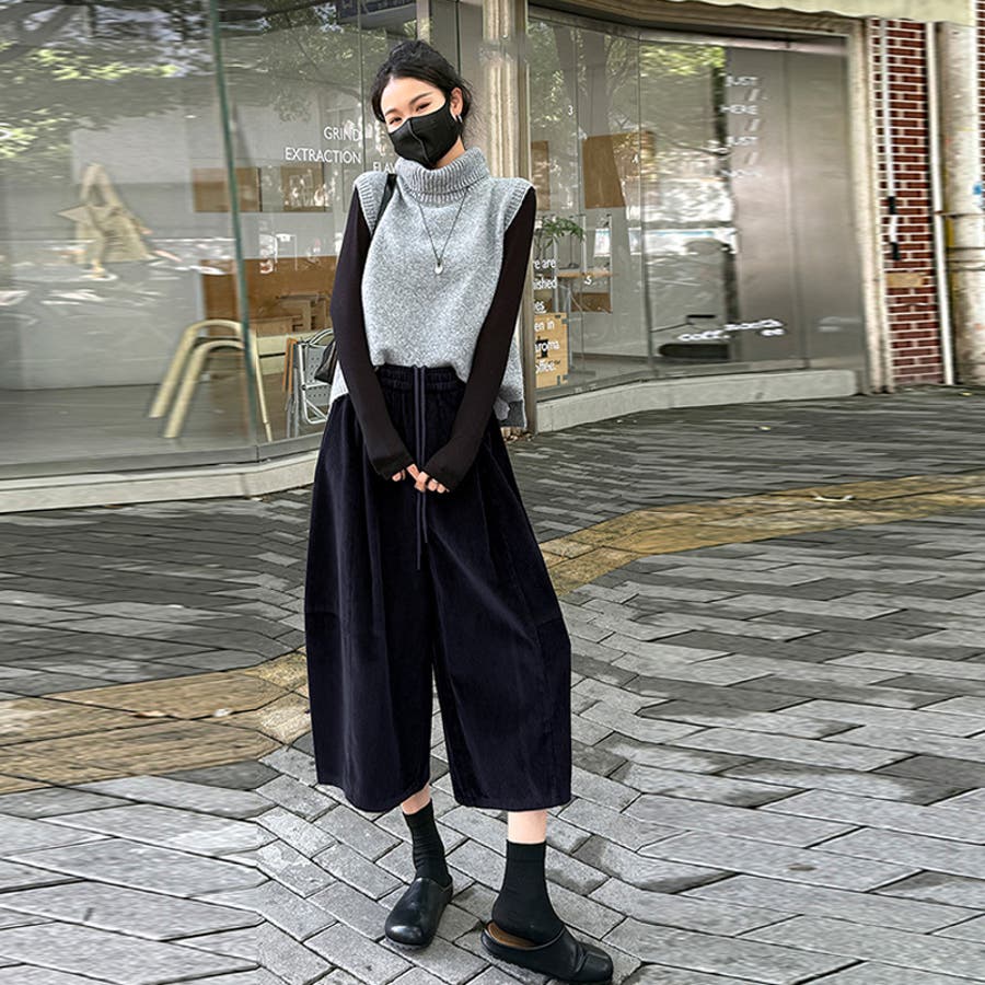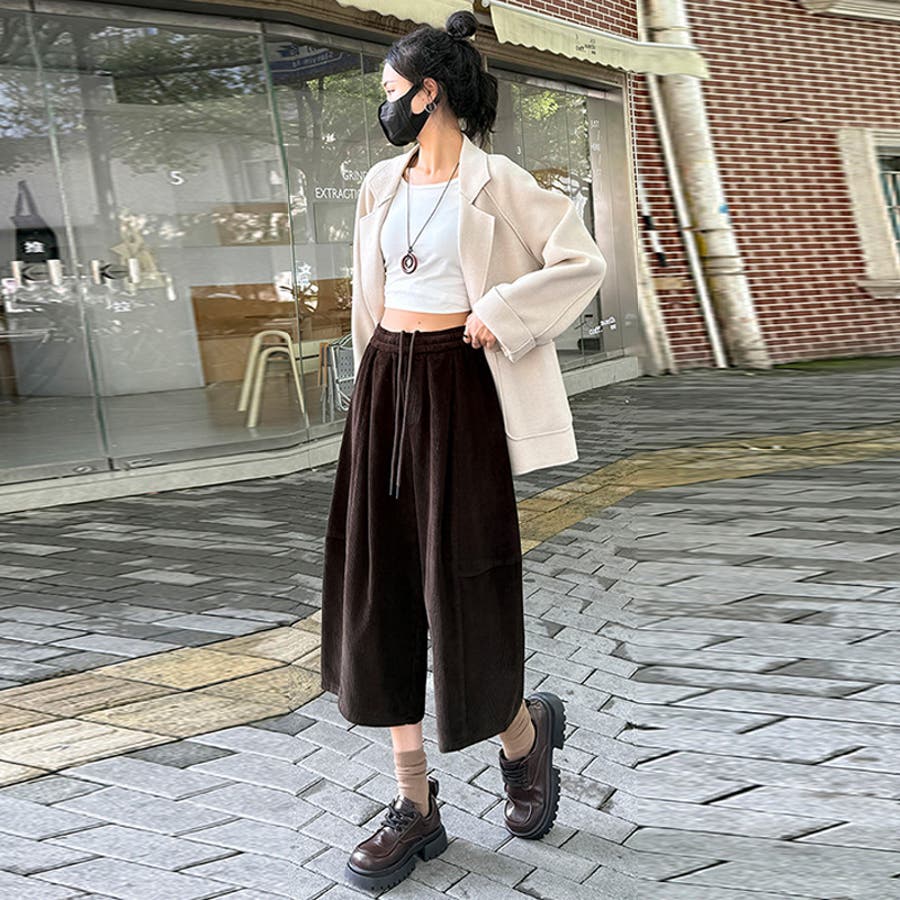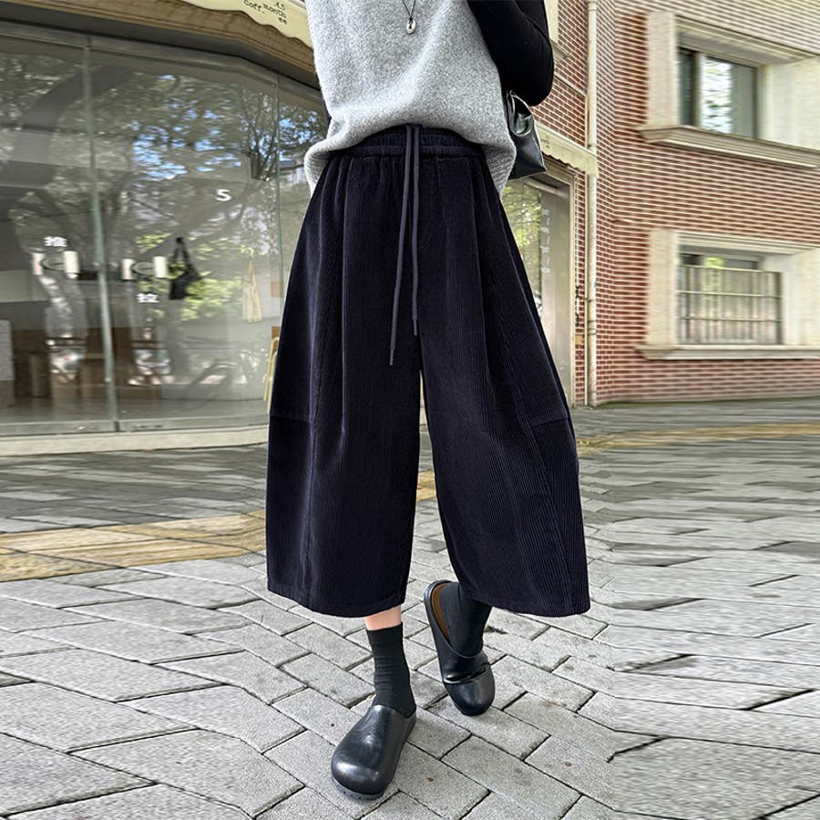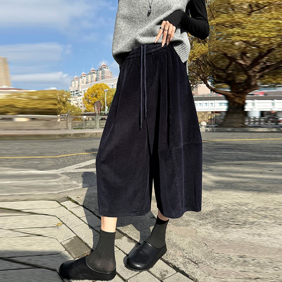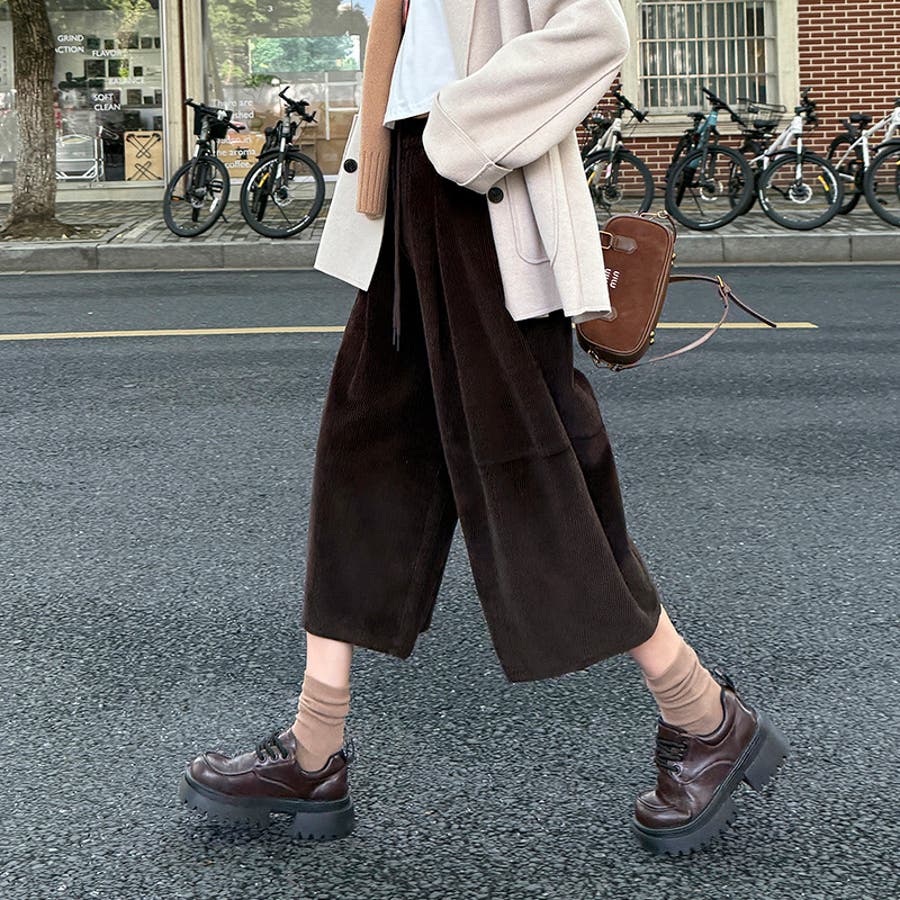 甘辛系ガールズ☆コーデュロイ七分丈パンツレトロオールドマネー風