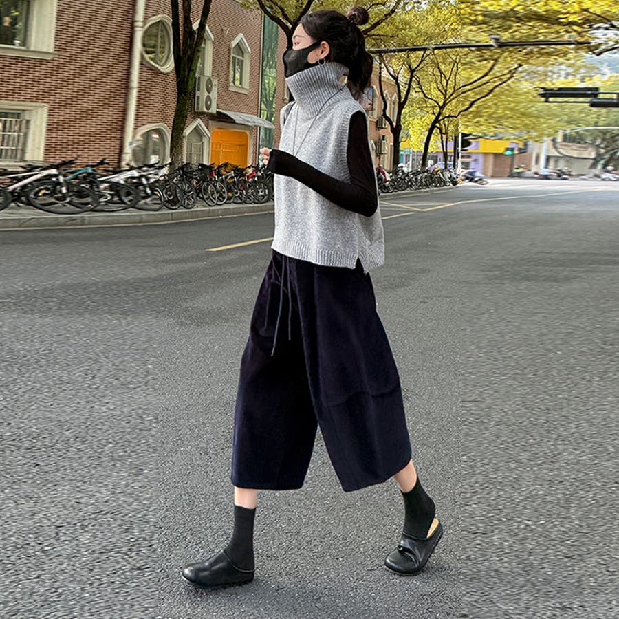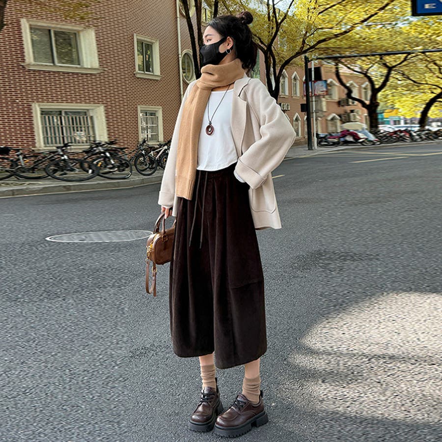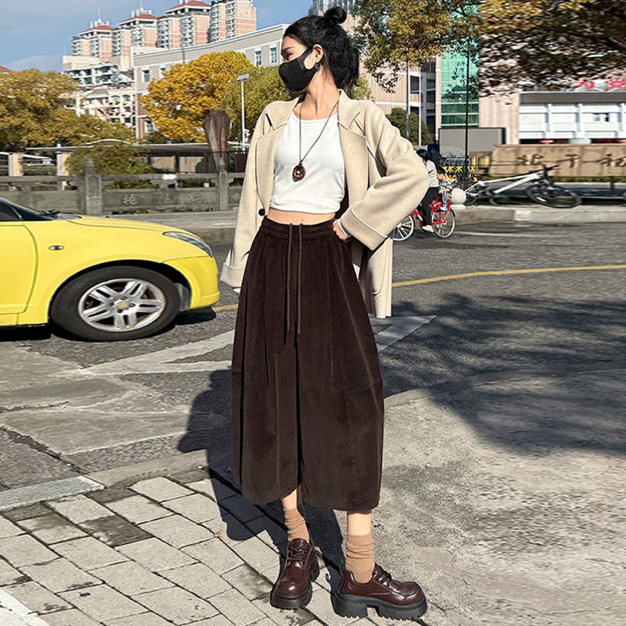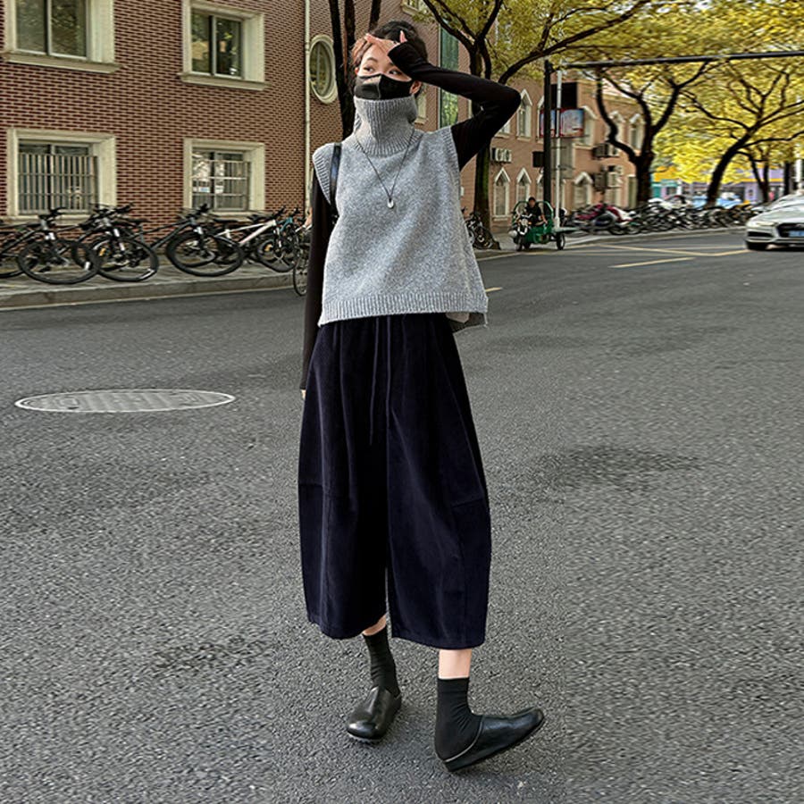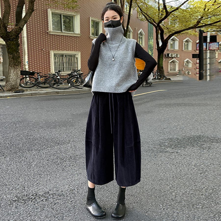 甘辛系ガールズ☆コーデュロイ七分丈パンツレトロオールドマネー風