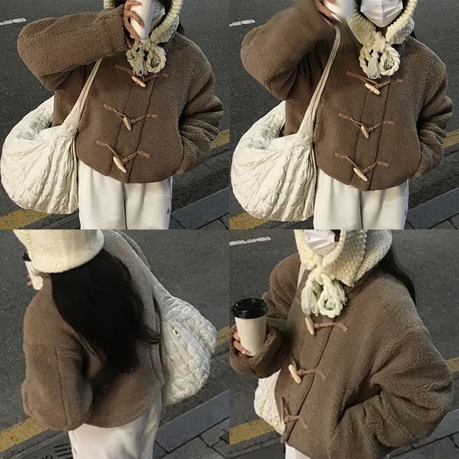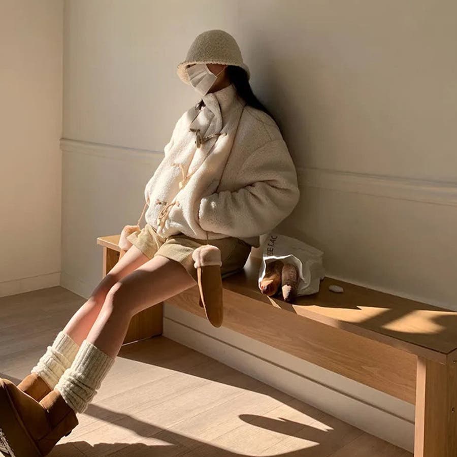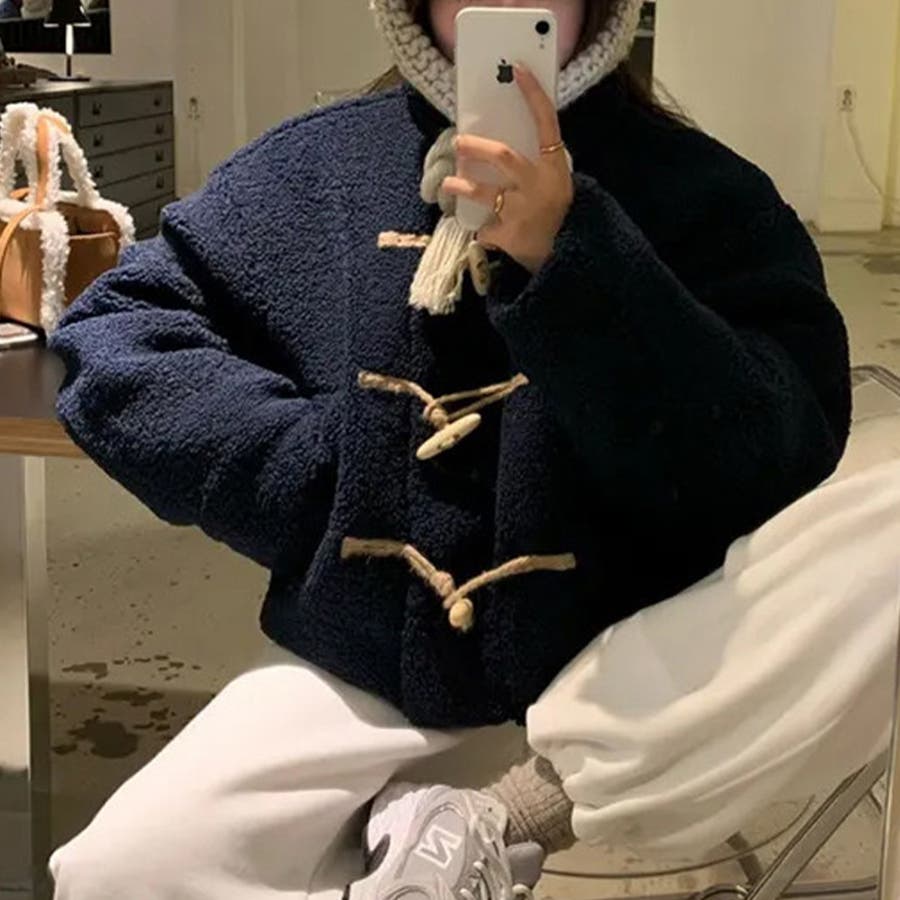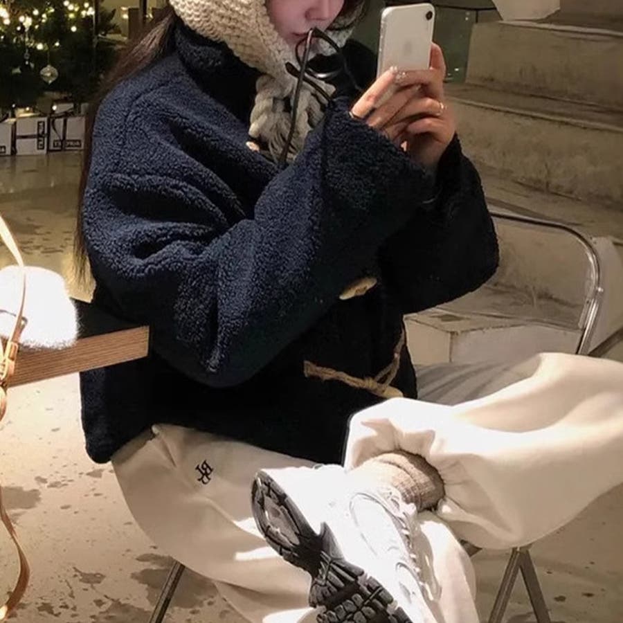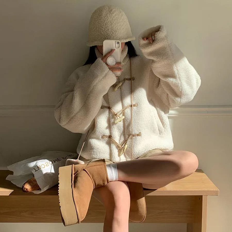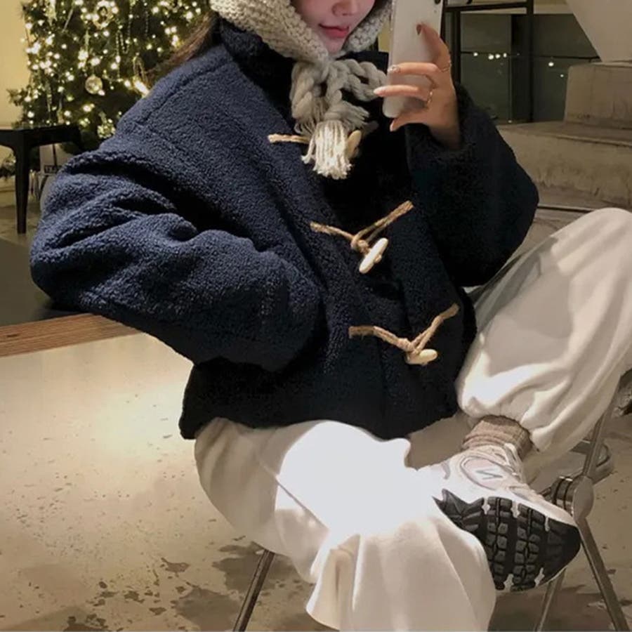 ゆるカワコーデ☆牛角ボタンボアジャケットムートン風アウター