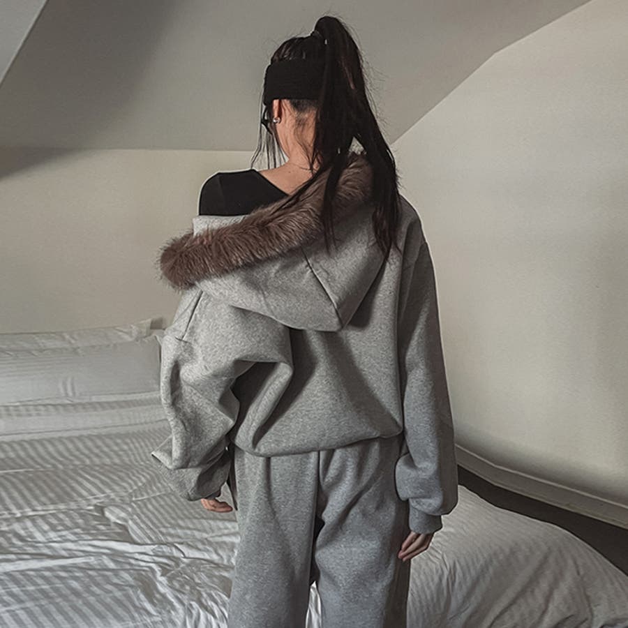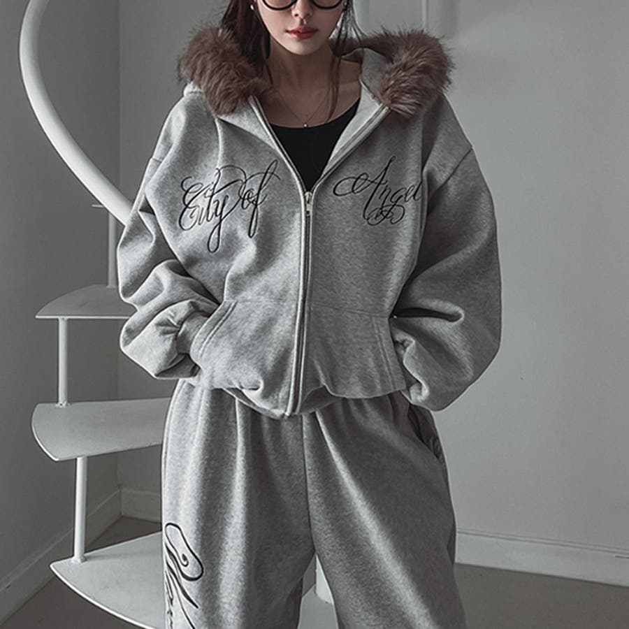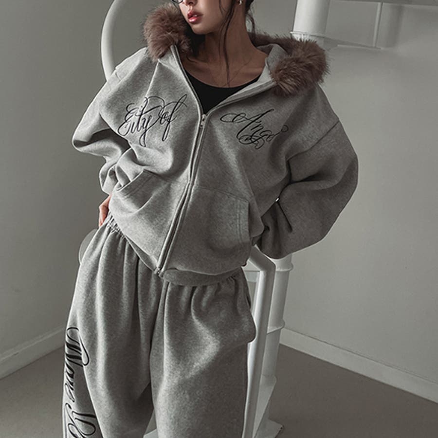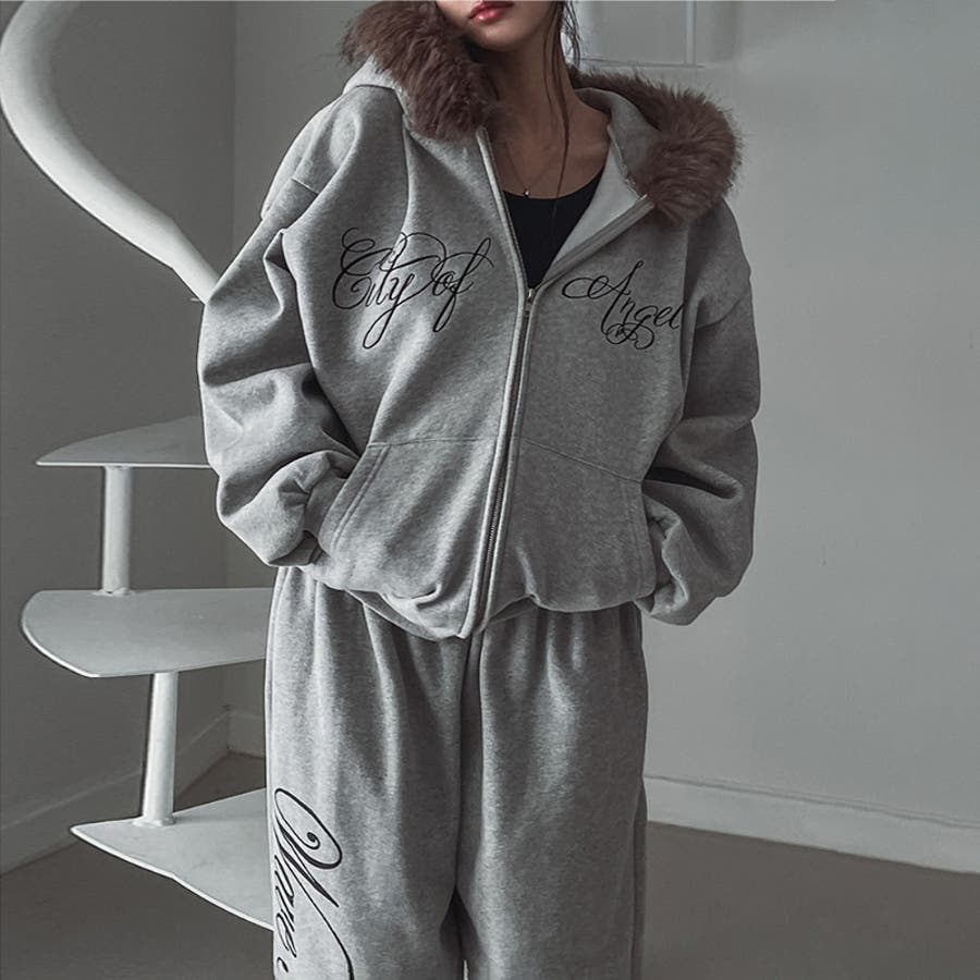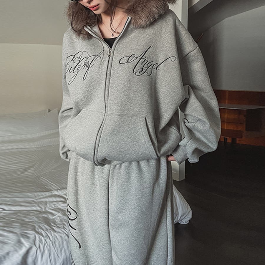 甘辛系ガールズ☆保温裏起毛!大きめファー付き英字ジップパーカーアウター