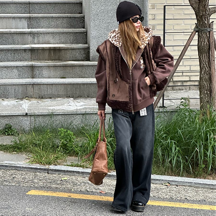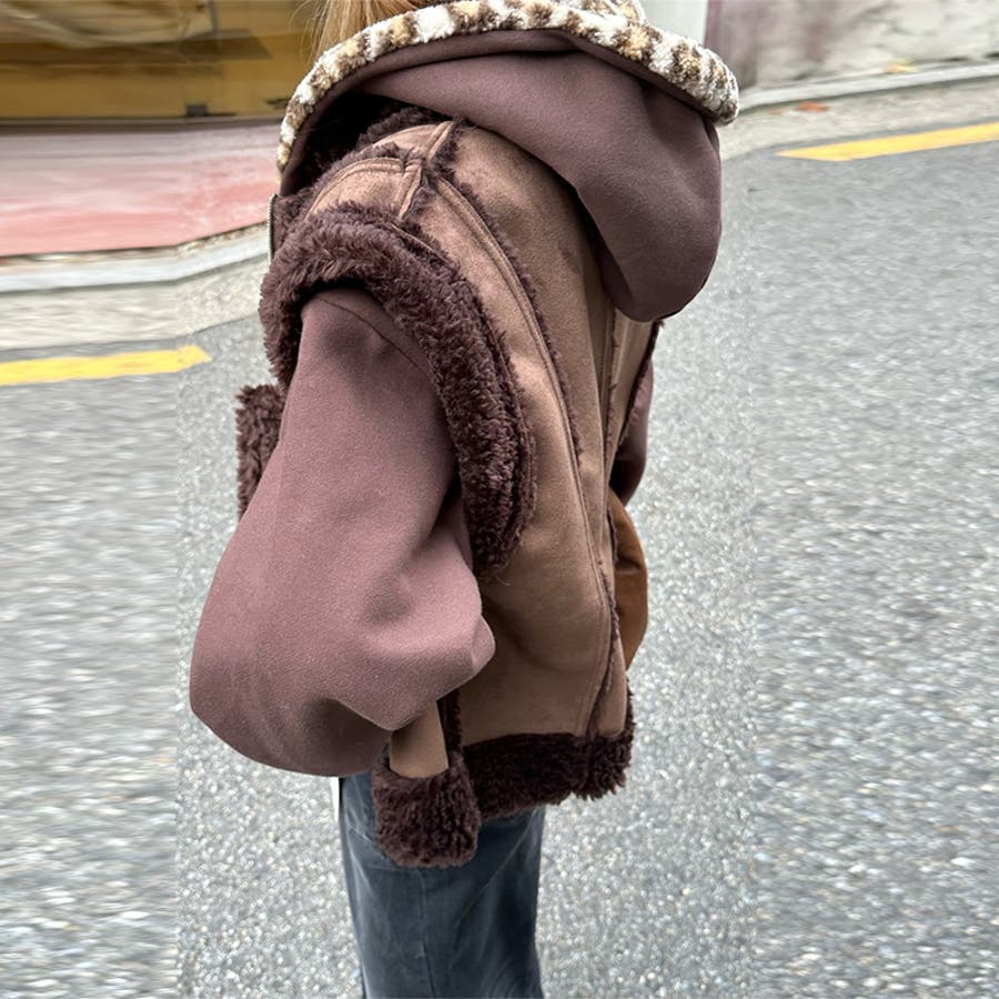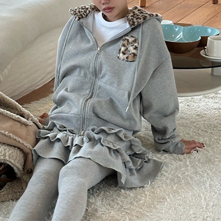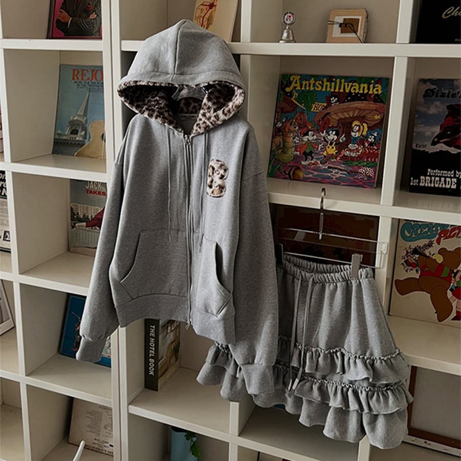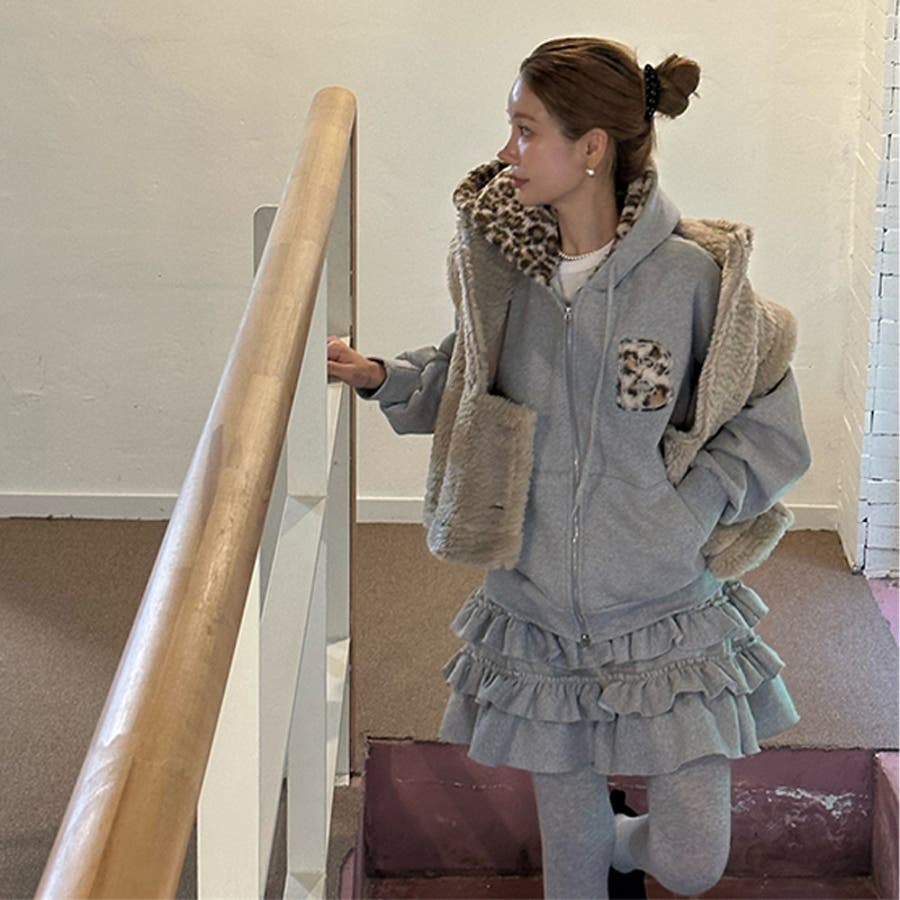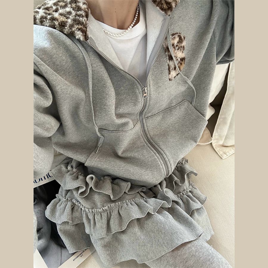 甘辛系ガールズ☆裏起毛厚手レオパード配色ワッペン英字パーカーアウター
