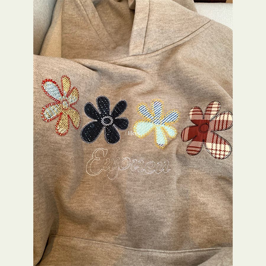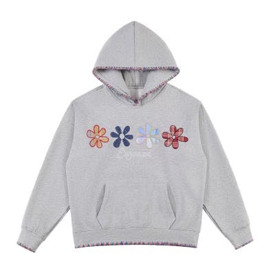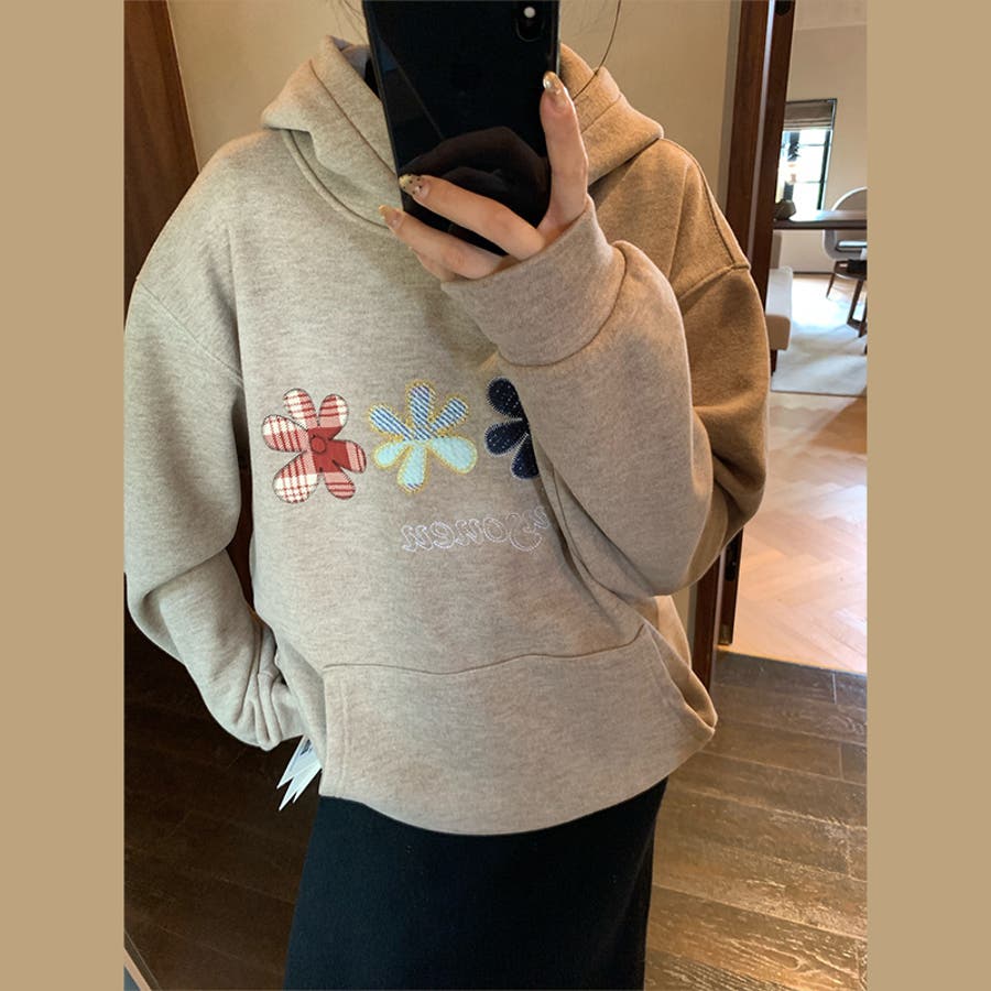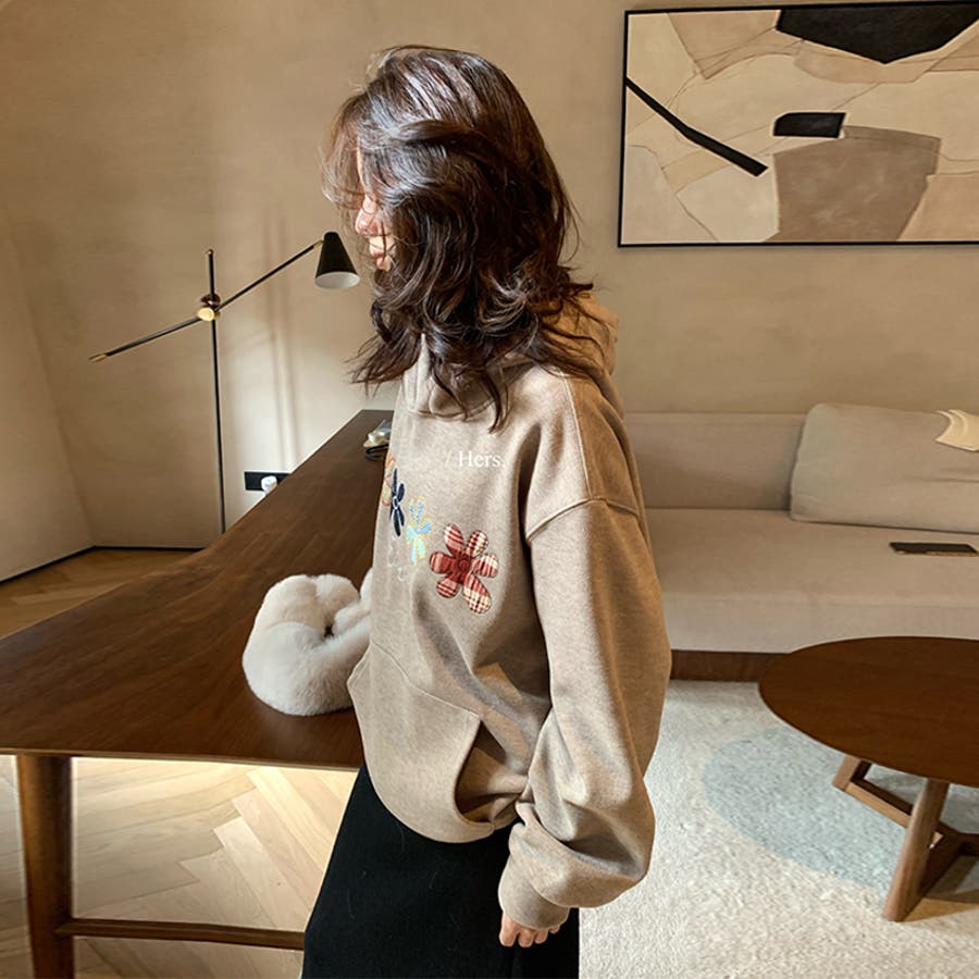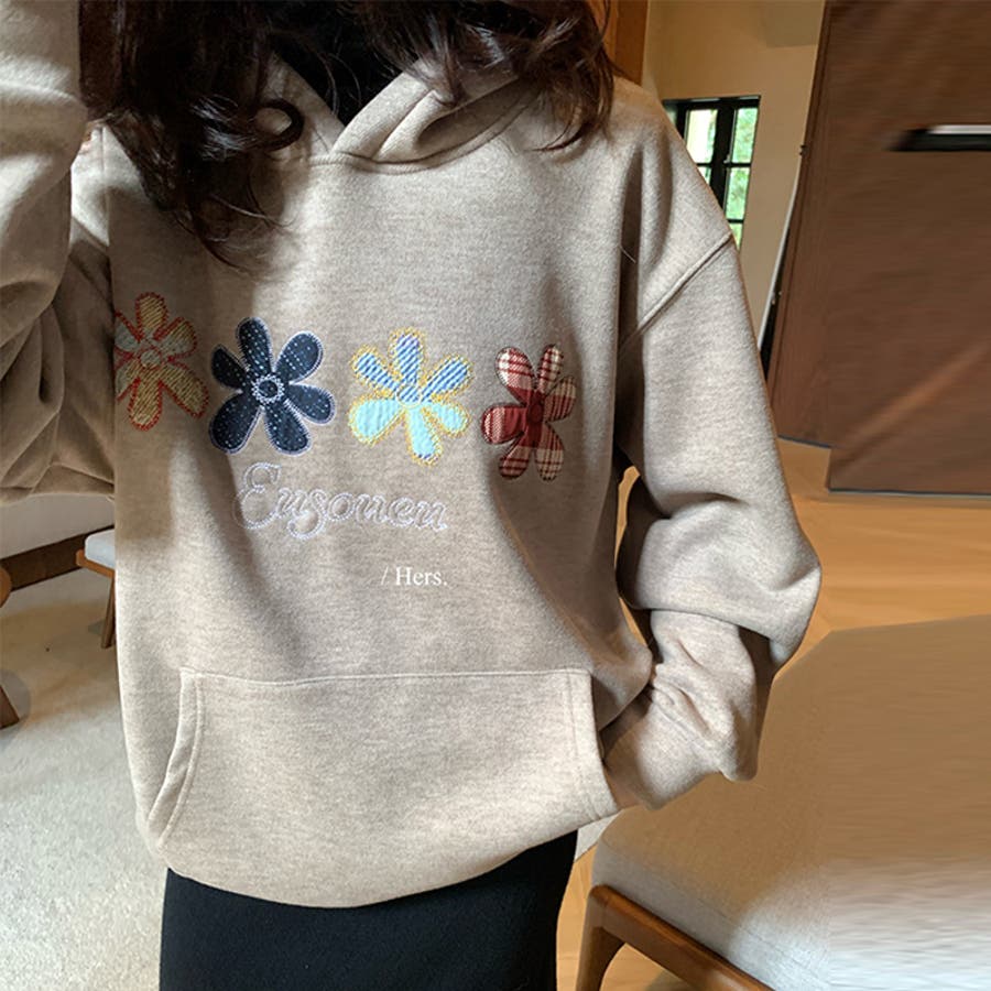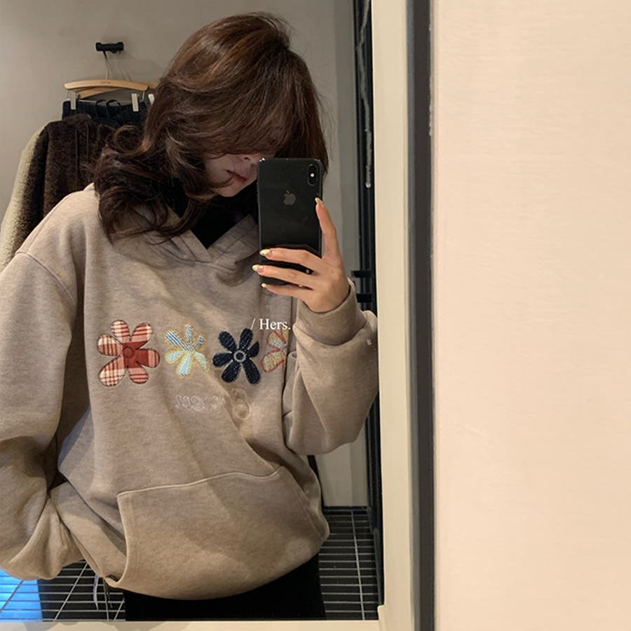 甘辛系ガールズ☆大サイズ花刺繍フード付きスウェットオーバーサイズアウター