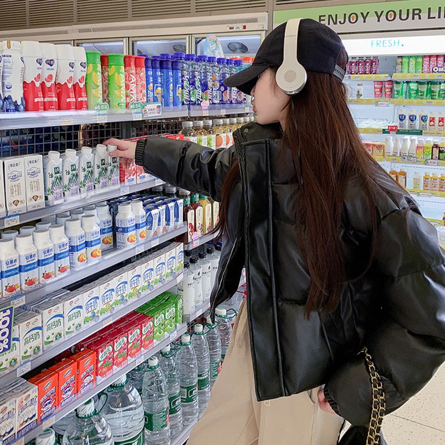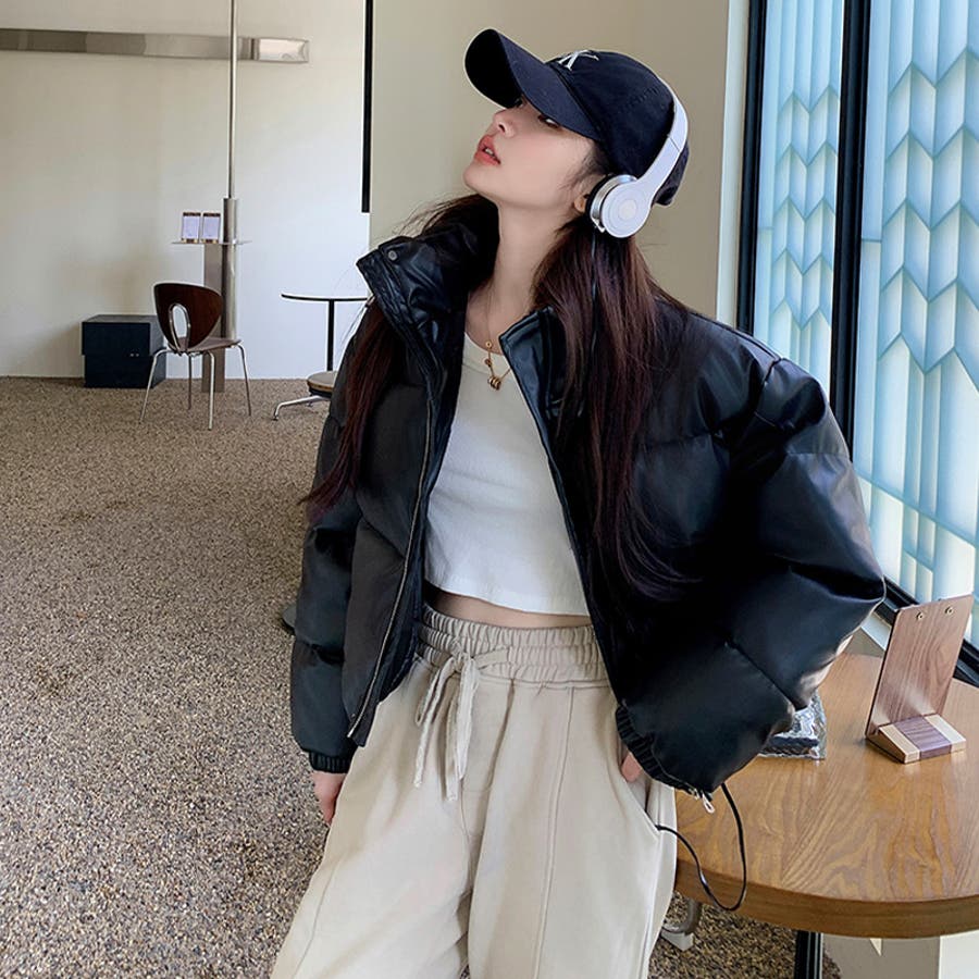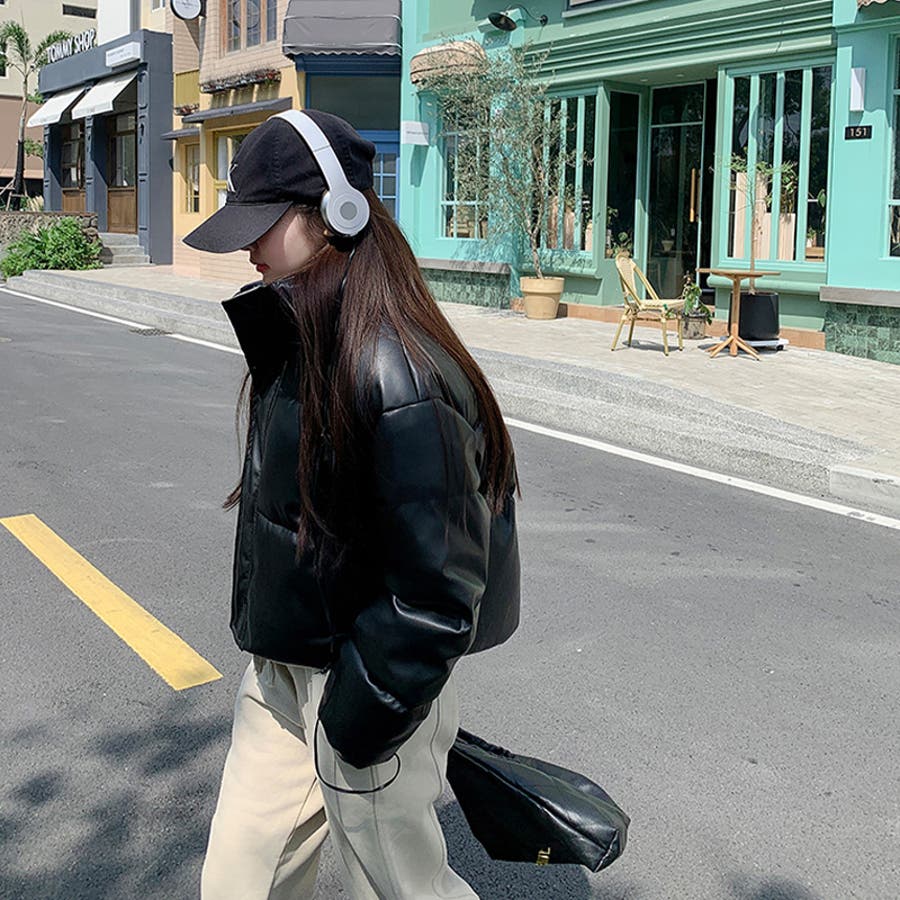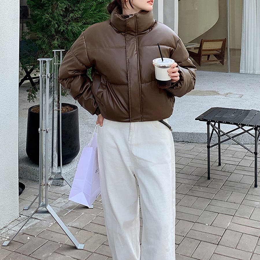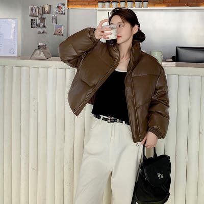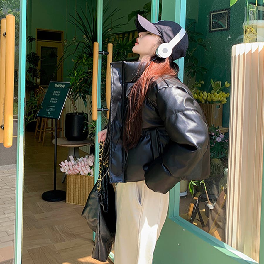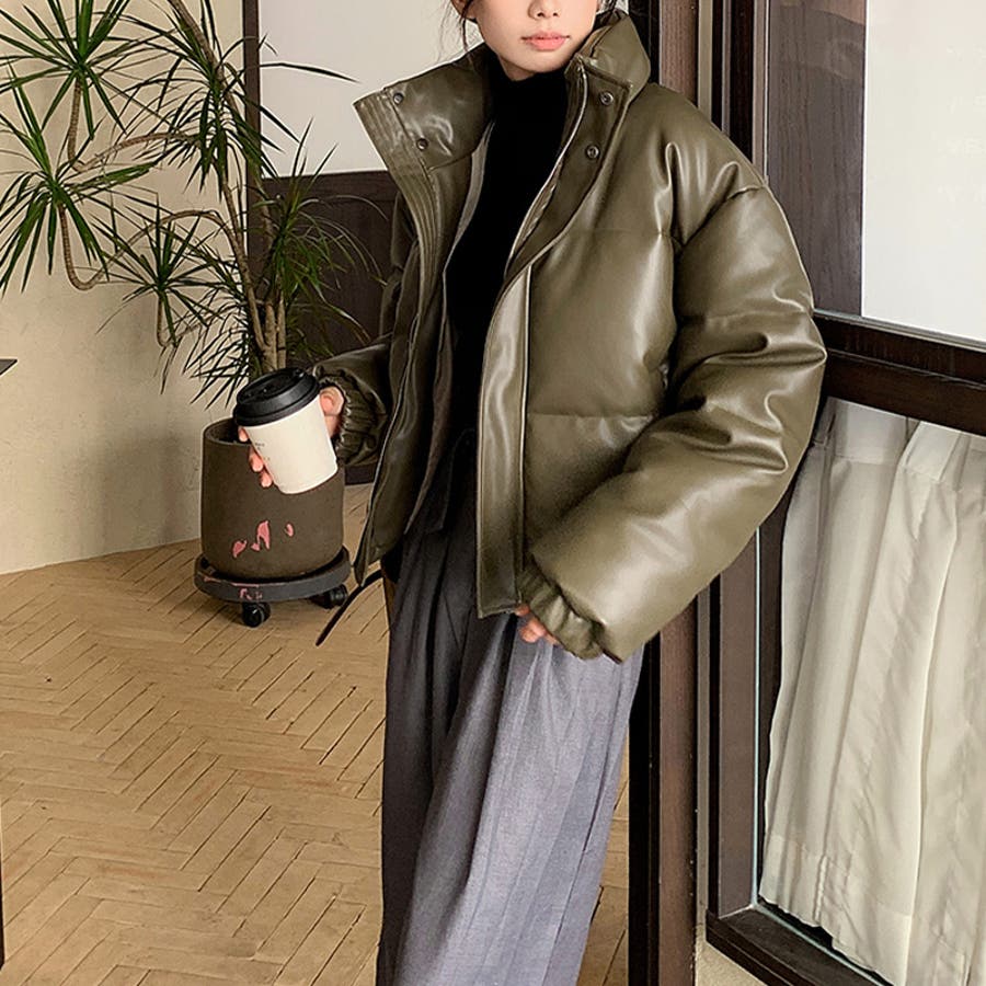 大人っぽく洗練された☆PUレザー中綿ジャケットショート丈アウター