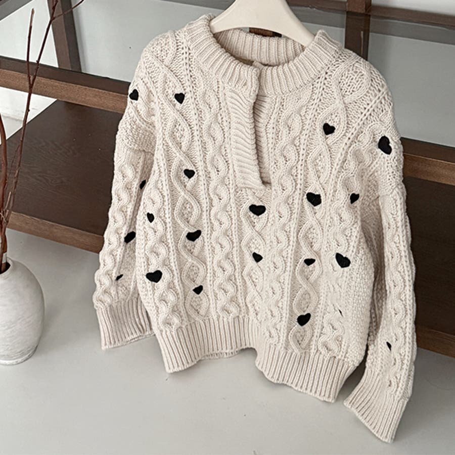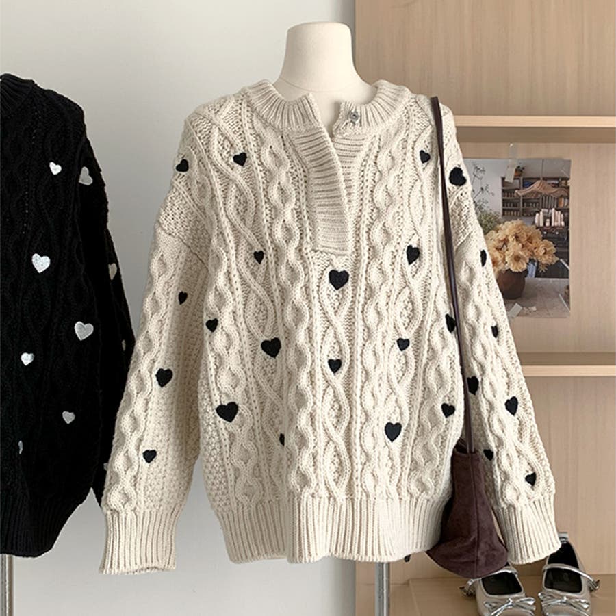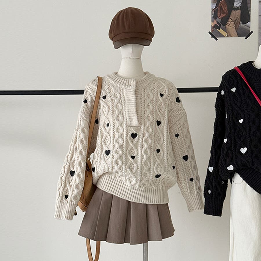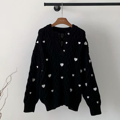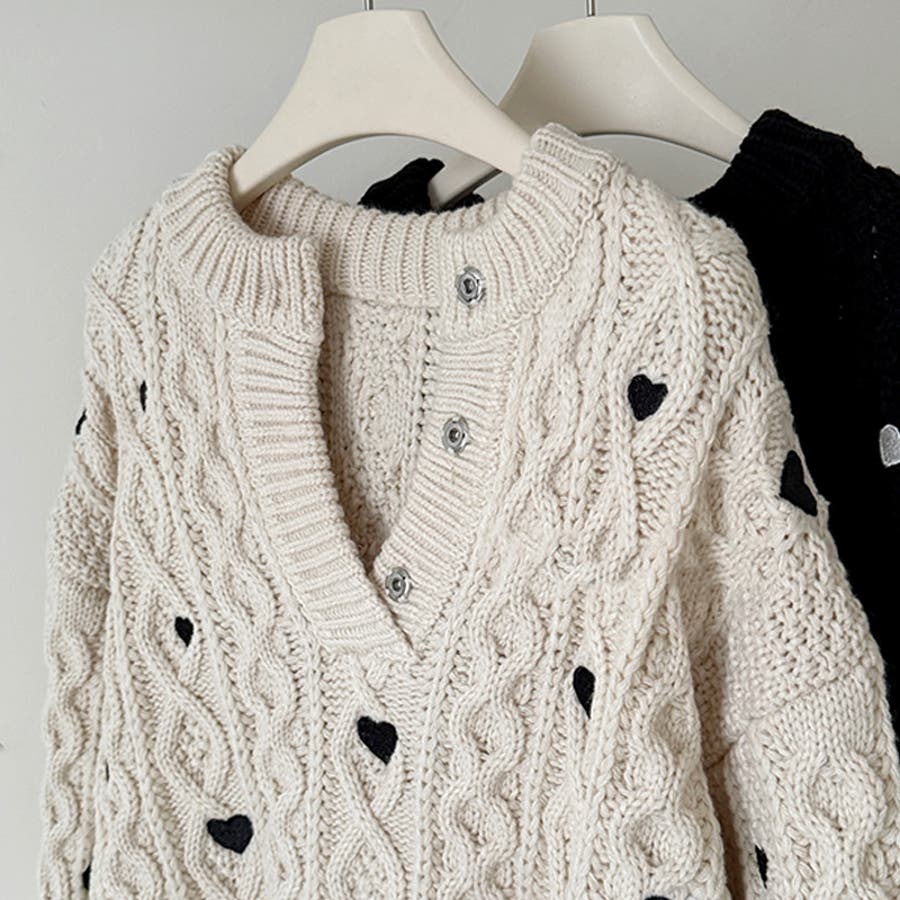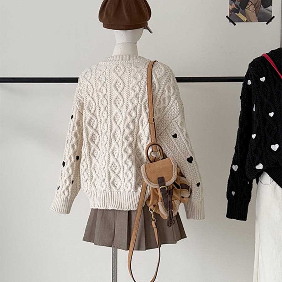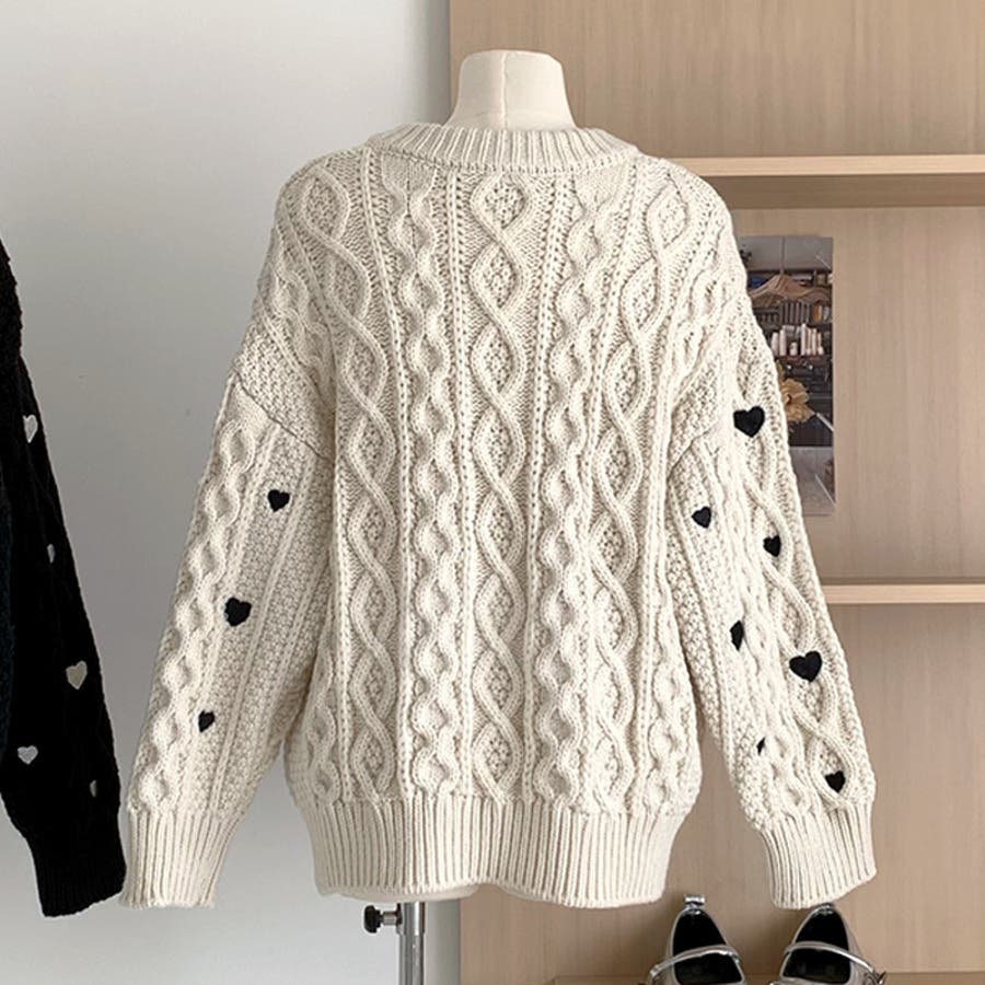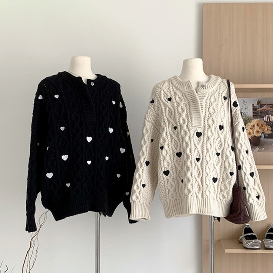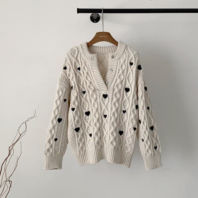 ゆるカワコーデ☆ハート柄ケーブル編みニットニットトップス
