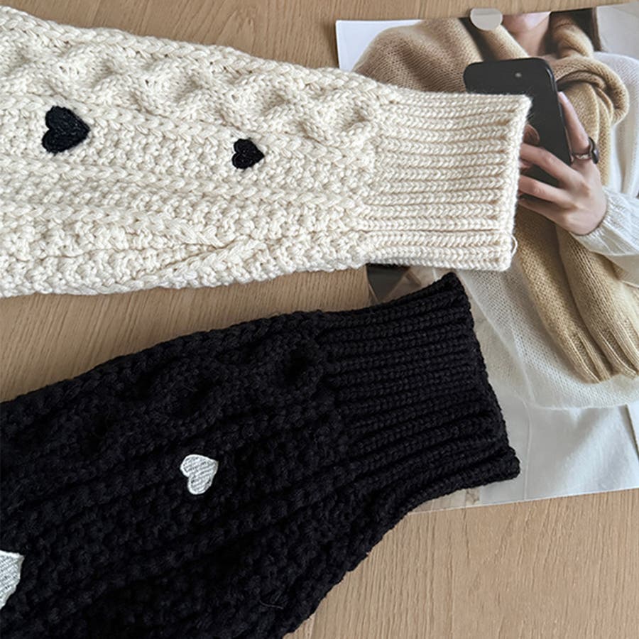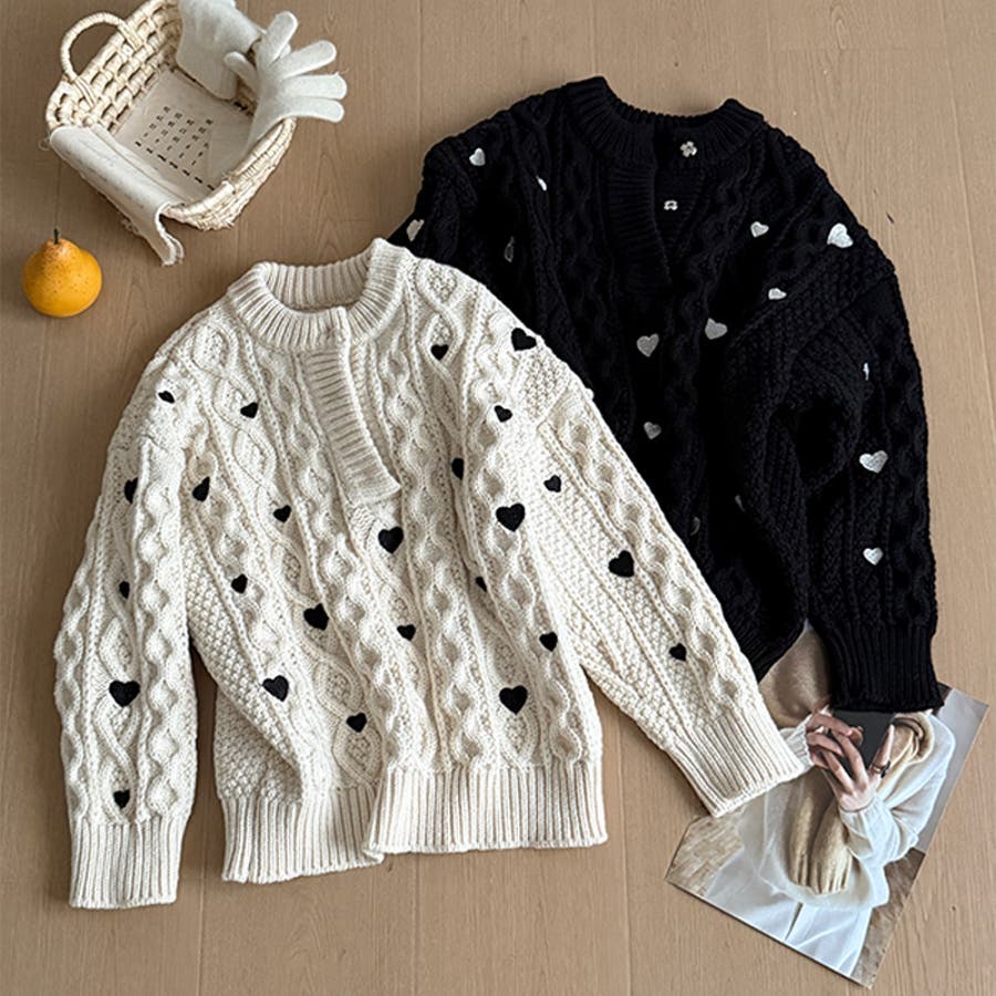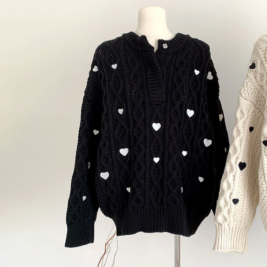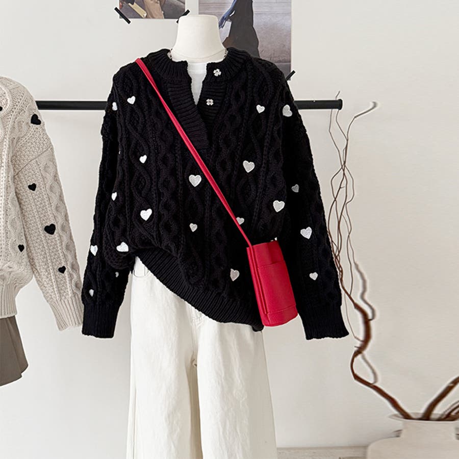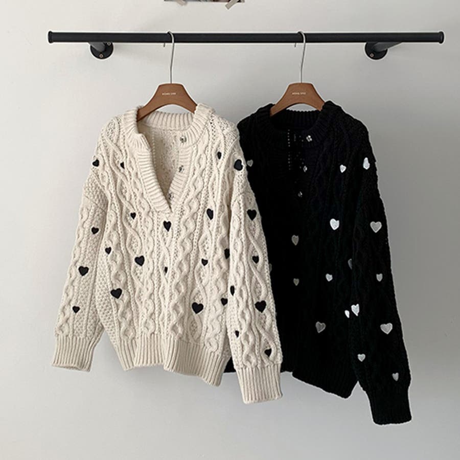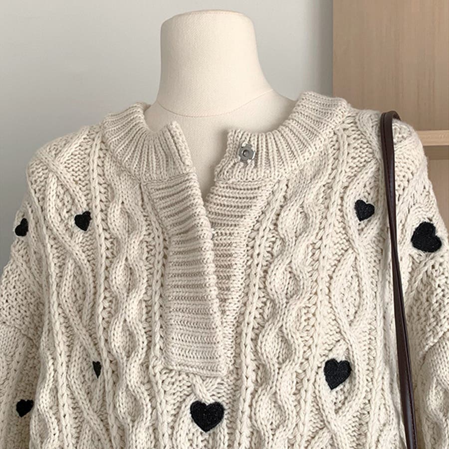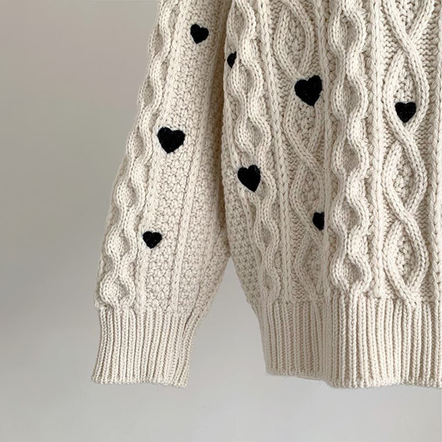 ゆるカワコーデ☆ハート柄ケーブル編みニットニットトップス