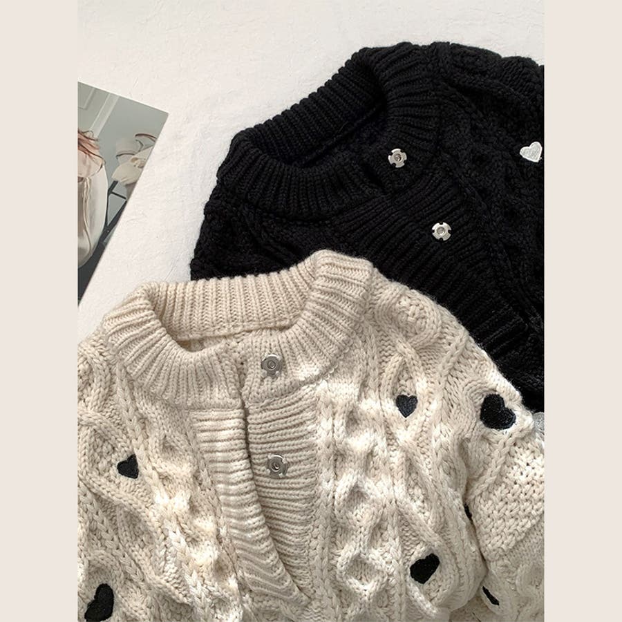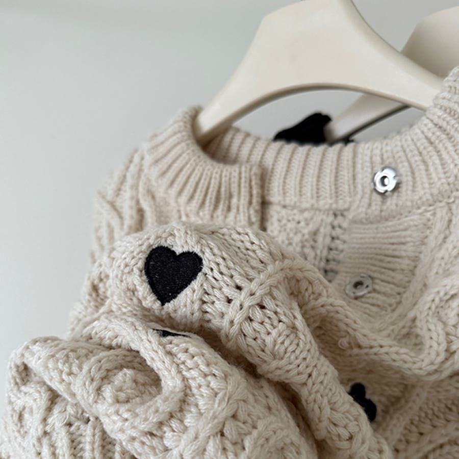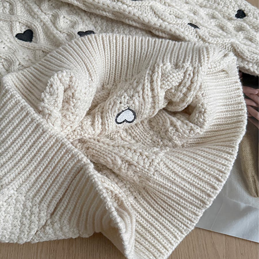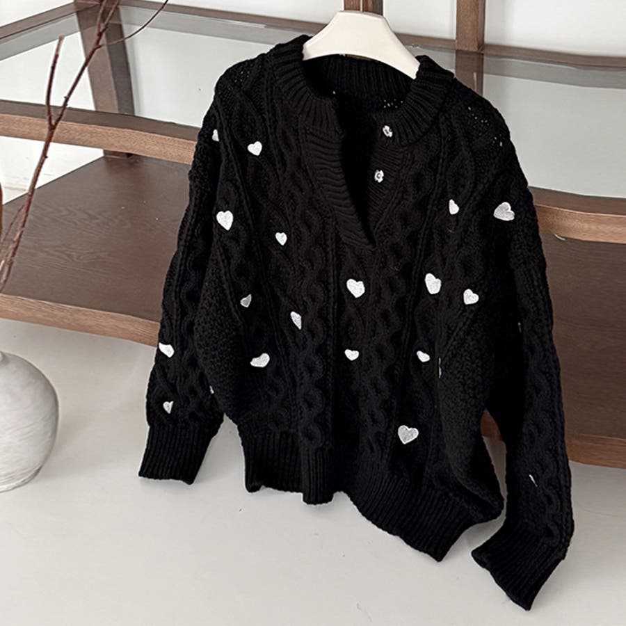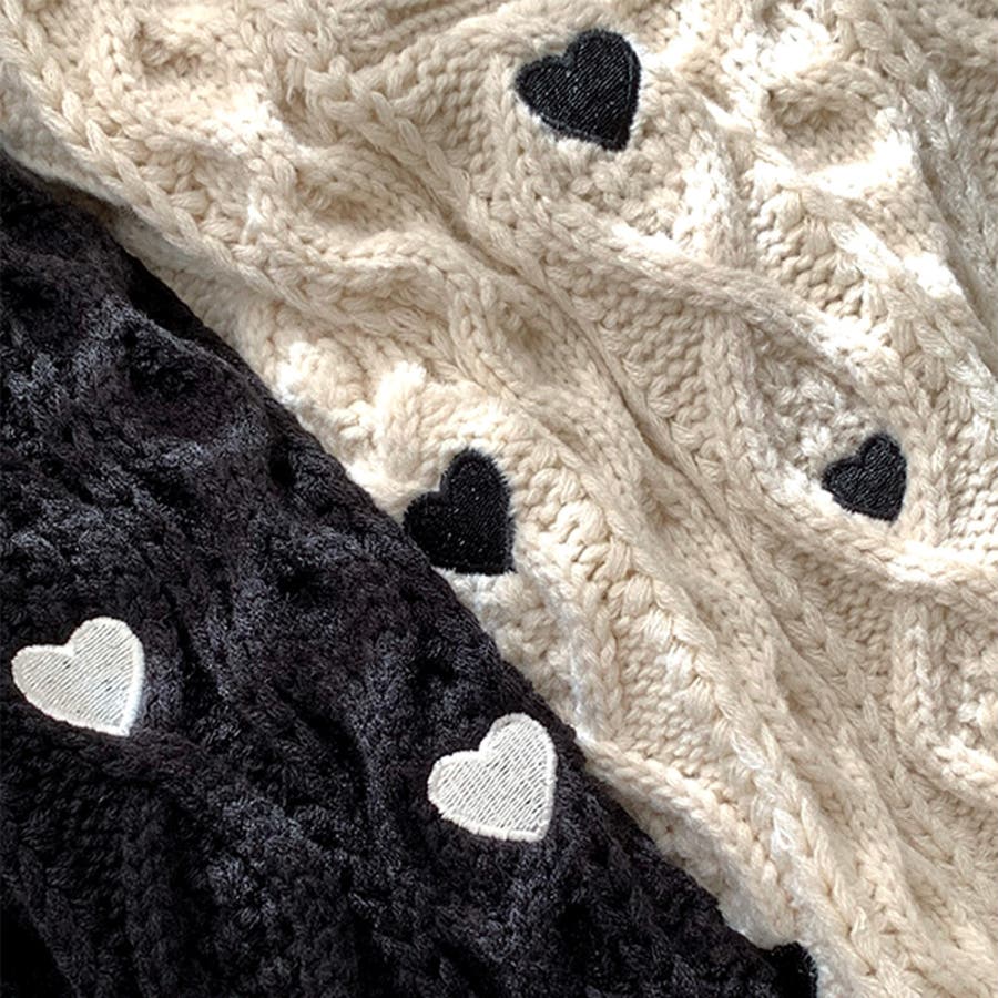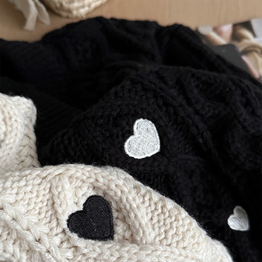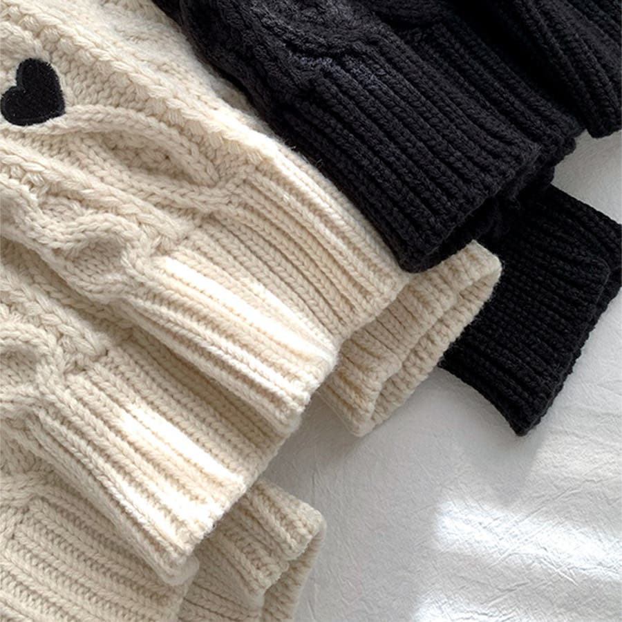 ゆるカワコーデ☆ハート柄ケーブル編みニットニットトップス
