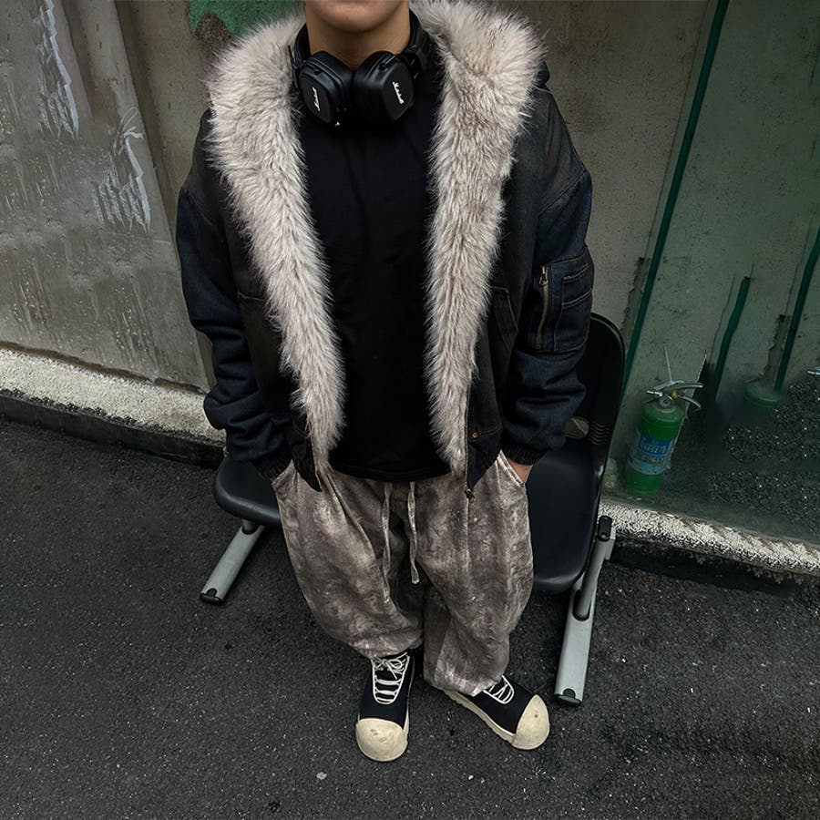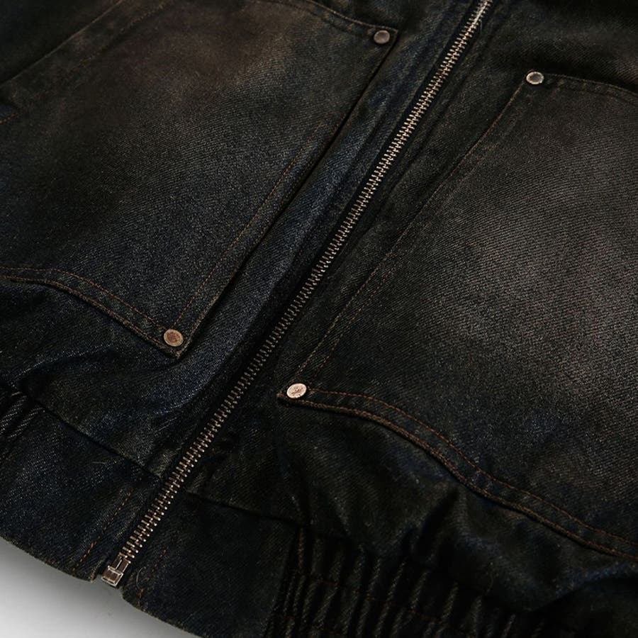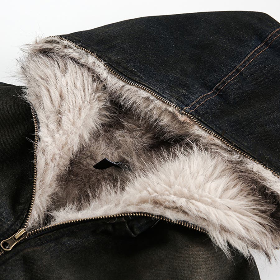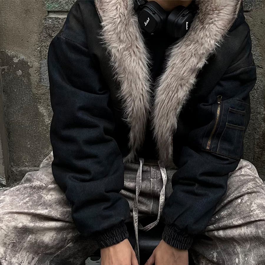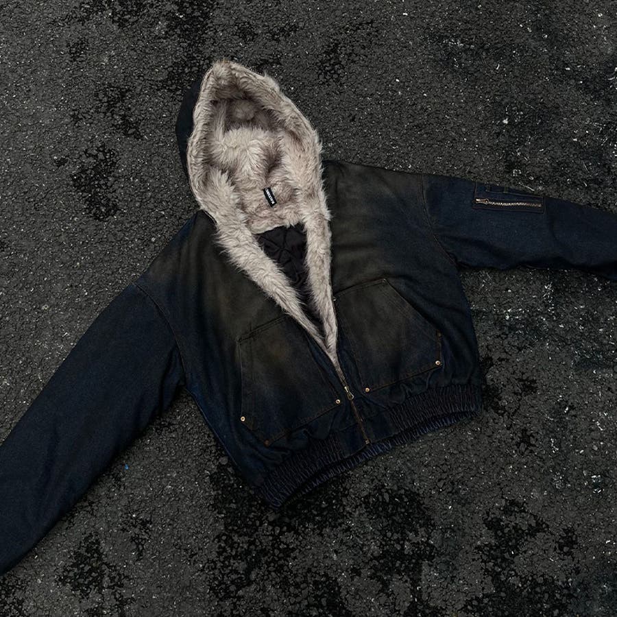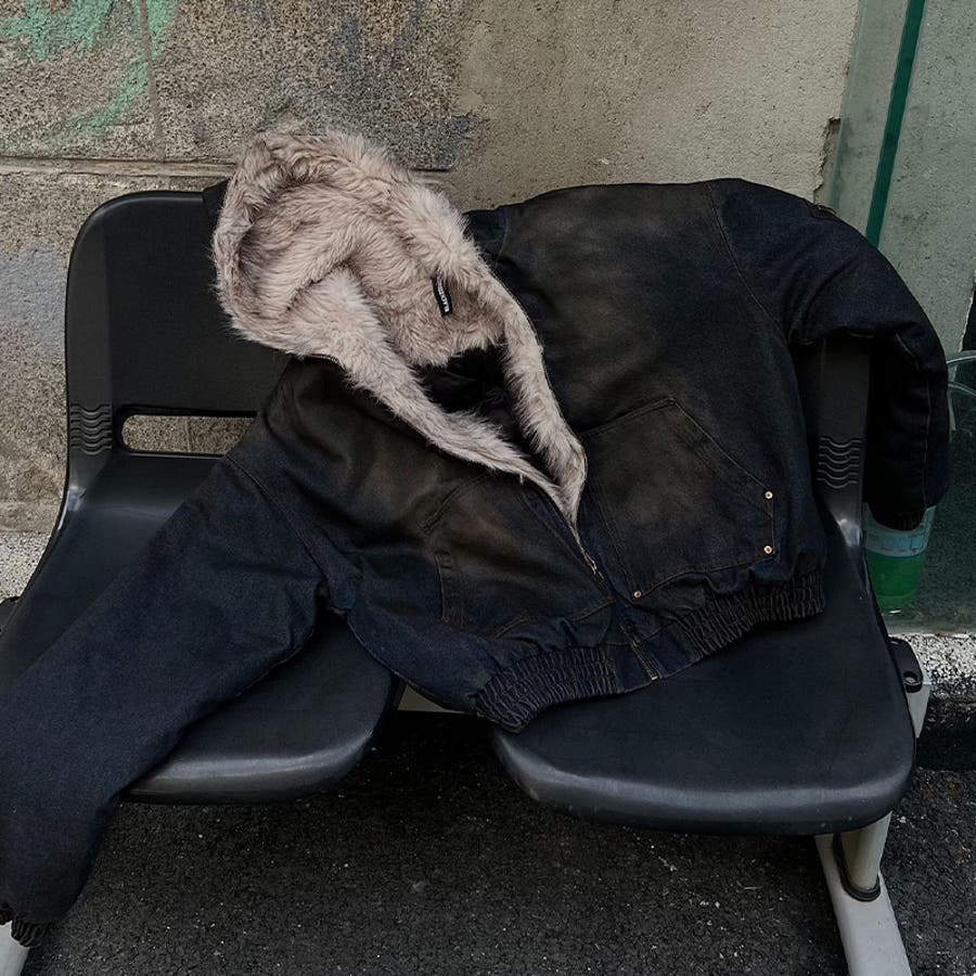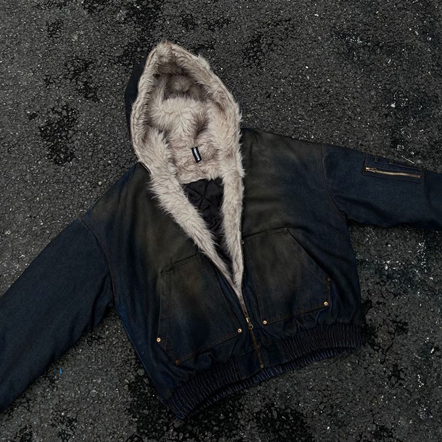 ユニセックス☆アメカジ系ウォッシュ加工デニム中綿ジャケット冬用裏起毛