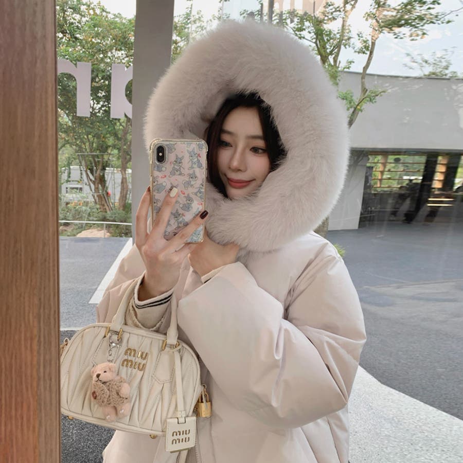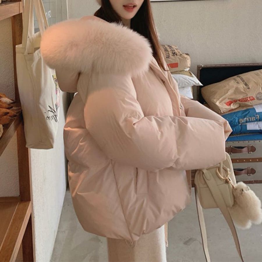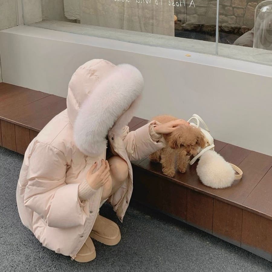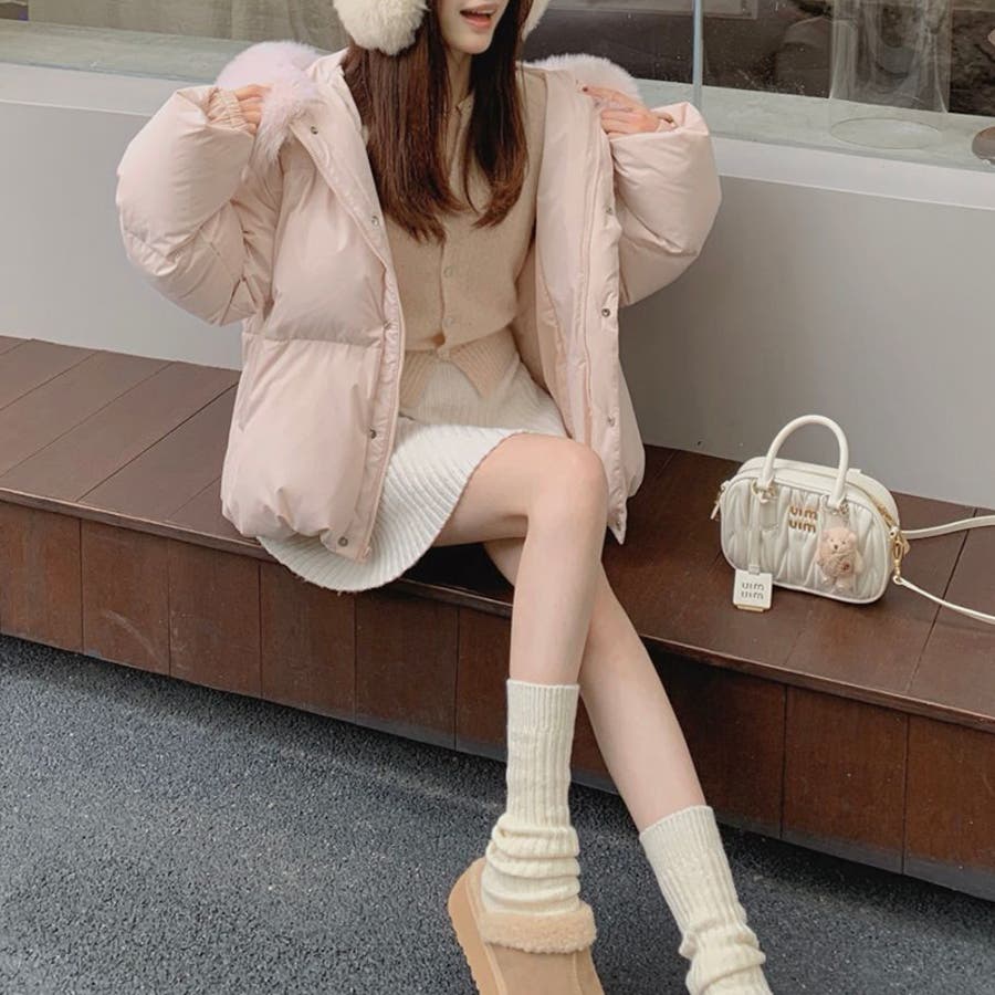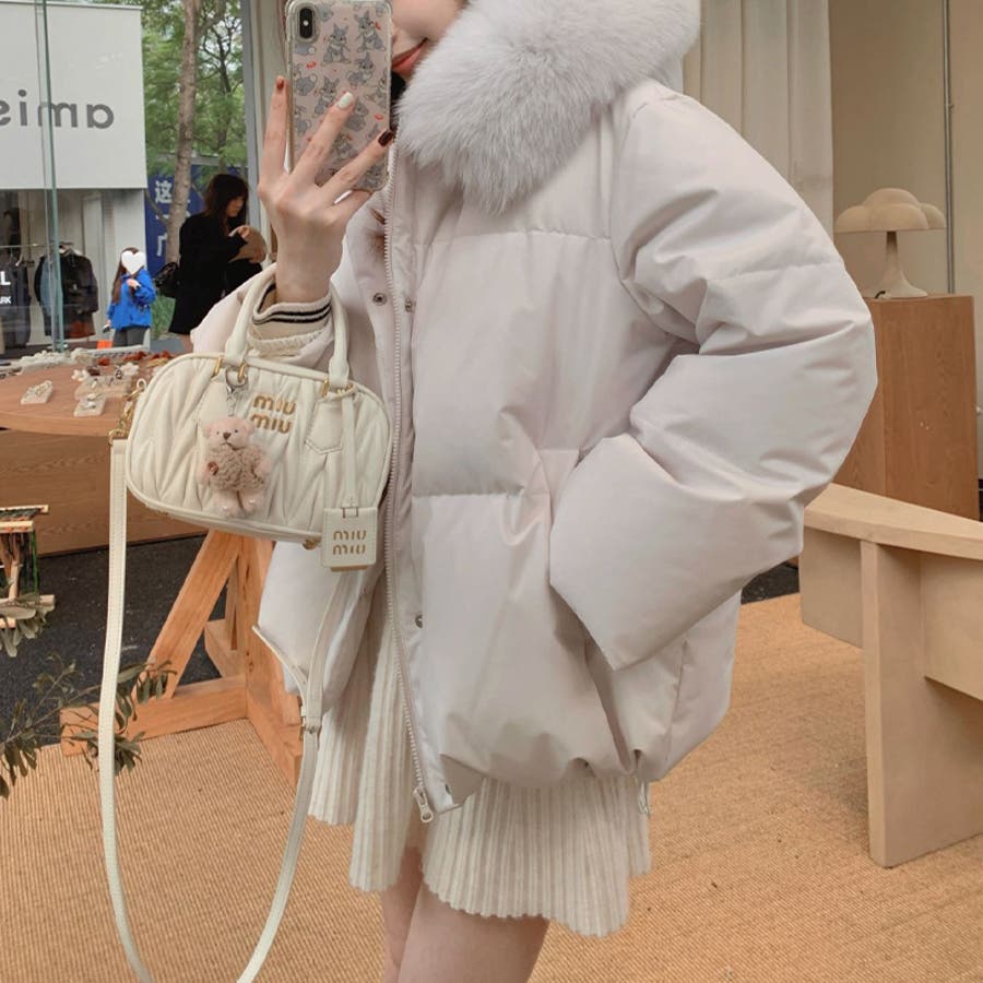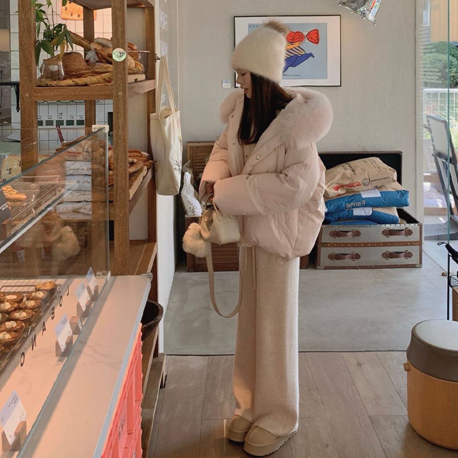 ゆるカワコーデ☆フォックス風ビッグファーフード付き ショート丈ダウンジャケット