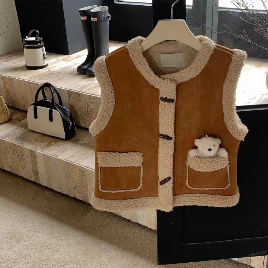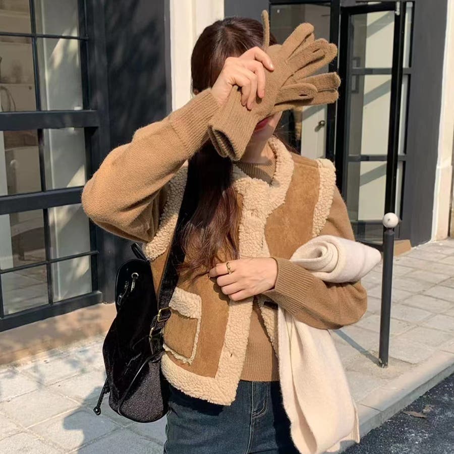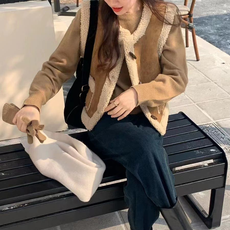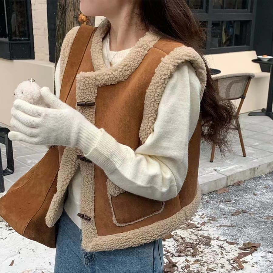 大人っぽく洗練された☆シープボア×フェイクファー牛角ボタン ベスト/ジレ