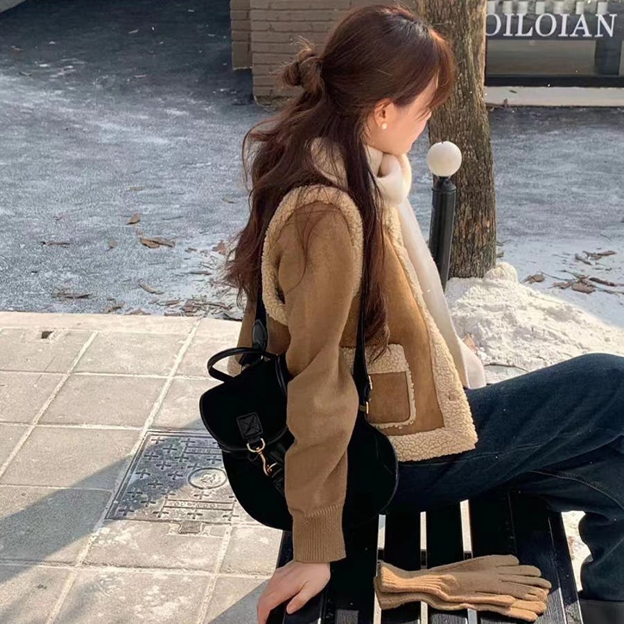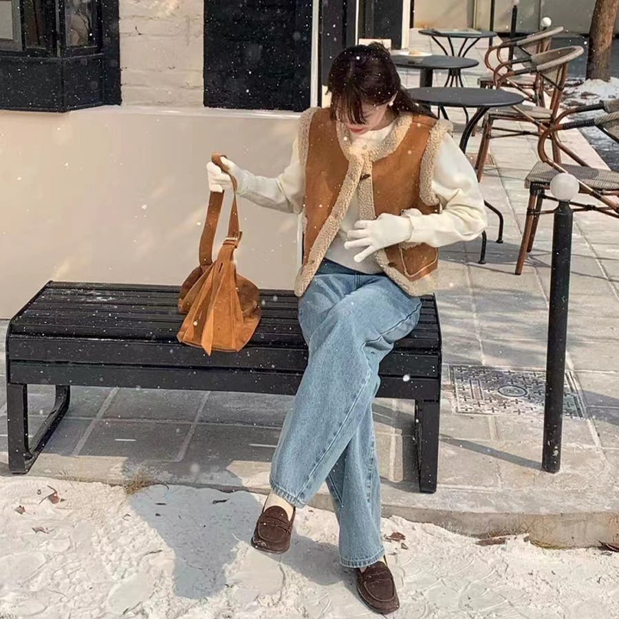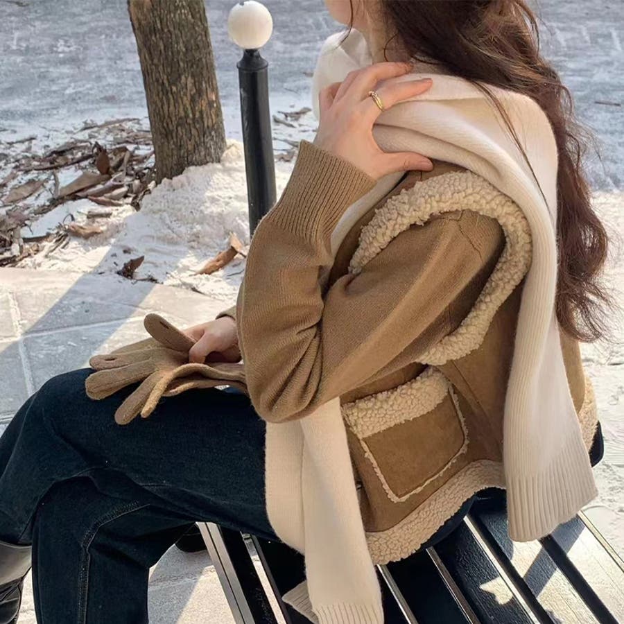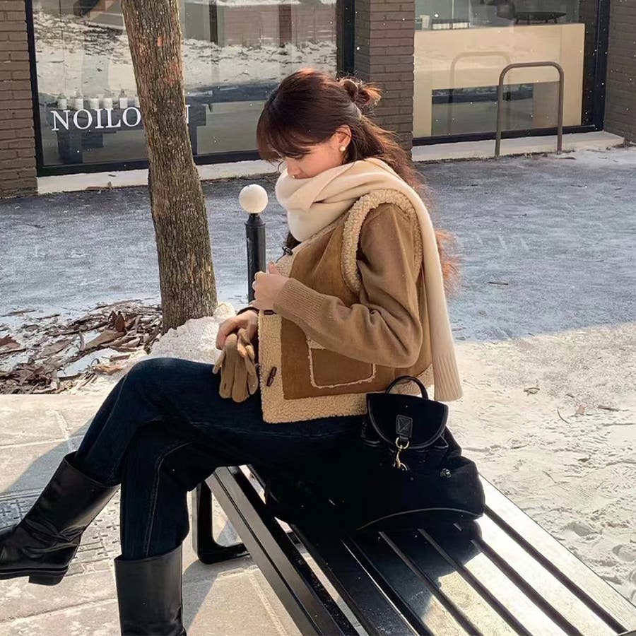 大人っぽく洗練された☆シープボア×フェイクファー牛角ボタン ベスト/ジレ