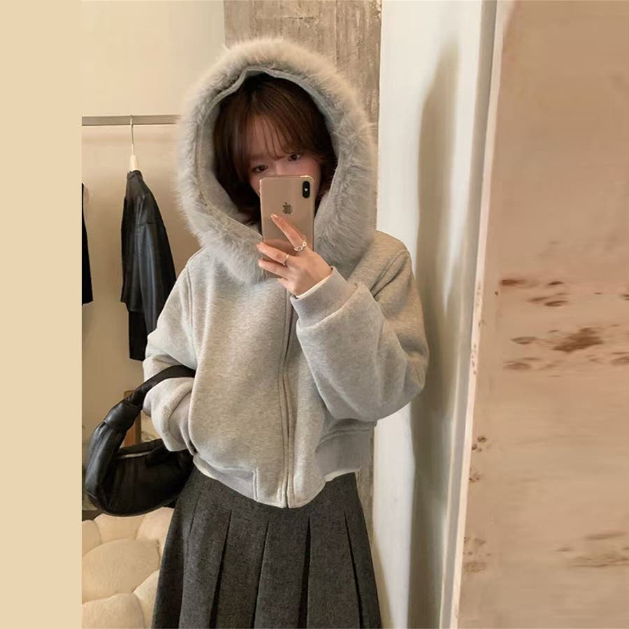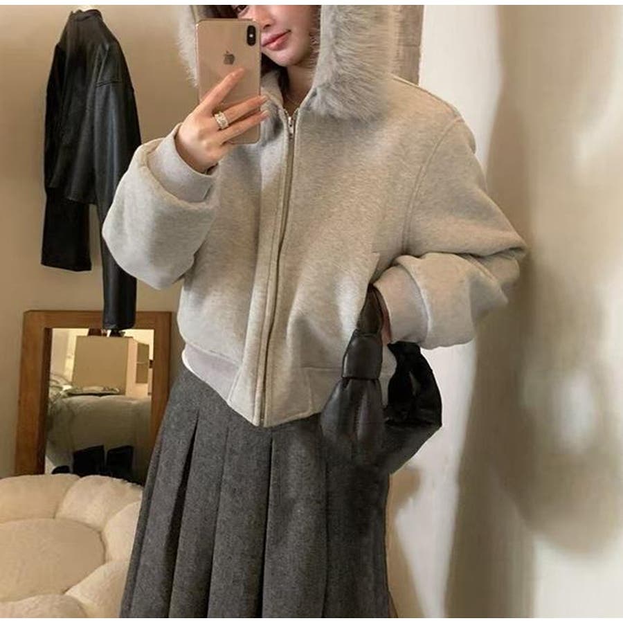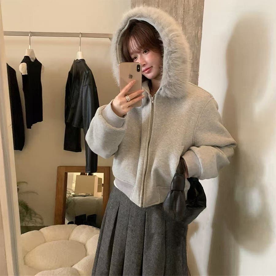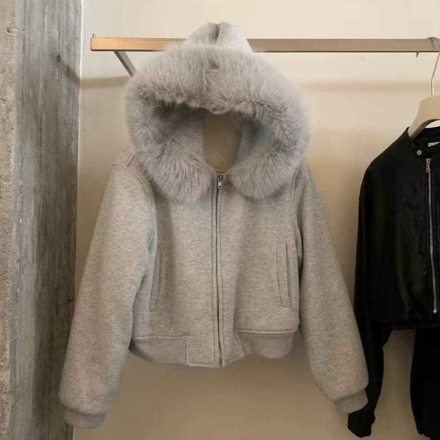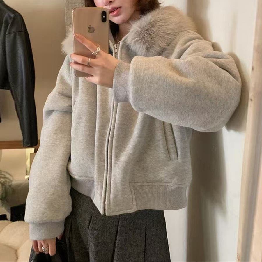 心地の良いスウェット風 取り外し可能なビッグファー付き フード一体型