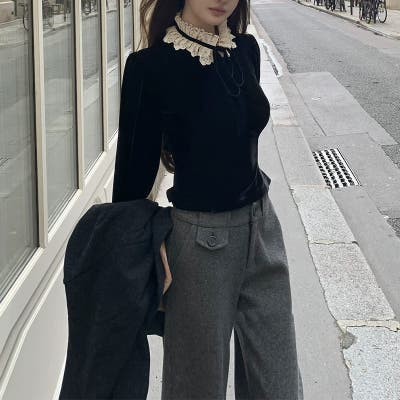 ゆるカワコーデ☆バロックベルベットシリーズ取り外し可能な襟 シャツ/ワンピース