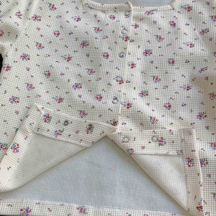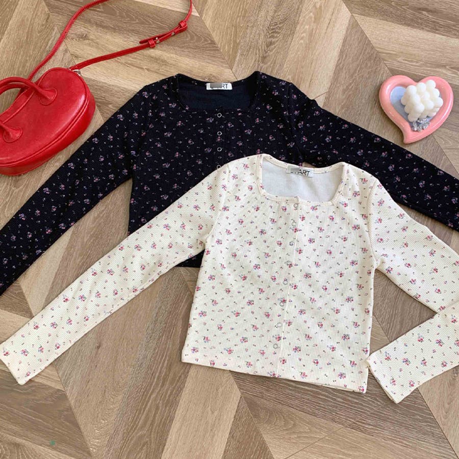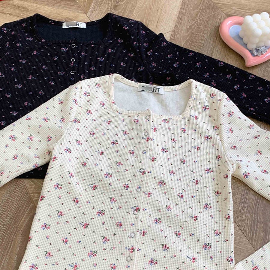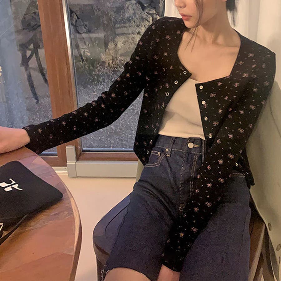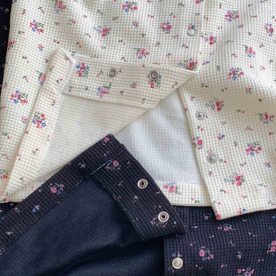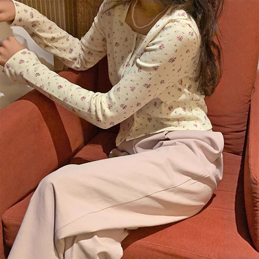 ゆるカワコーデ☆フラワープリント スクエアネック ショート丈 ニットトップス