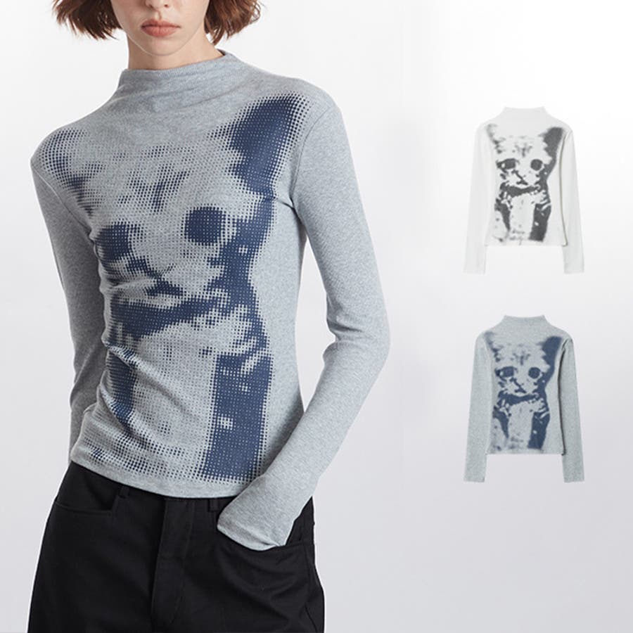 甘辛系ガールズ 猫プリント トップス長袖インナー