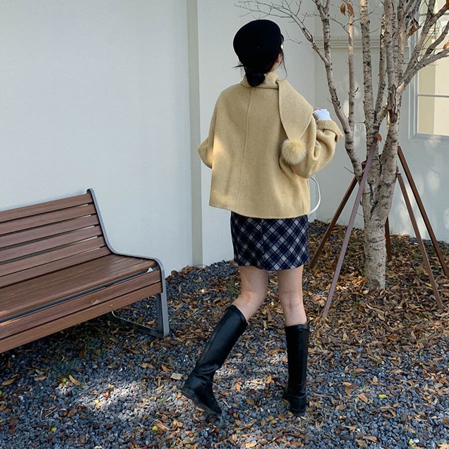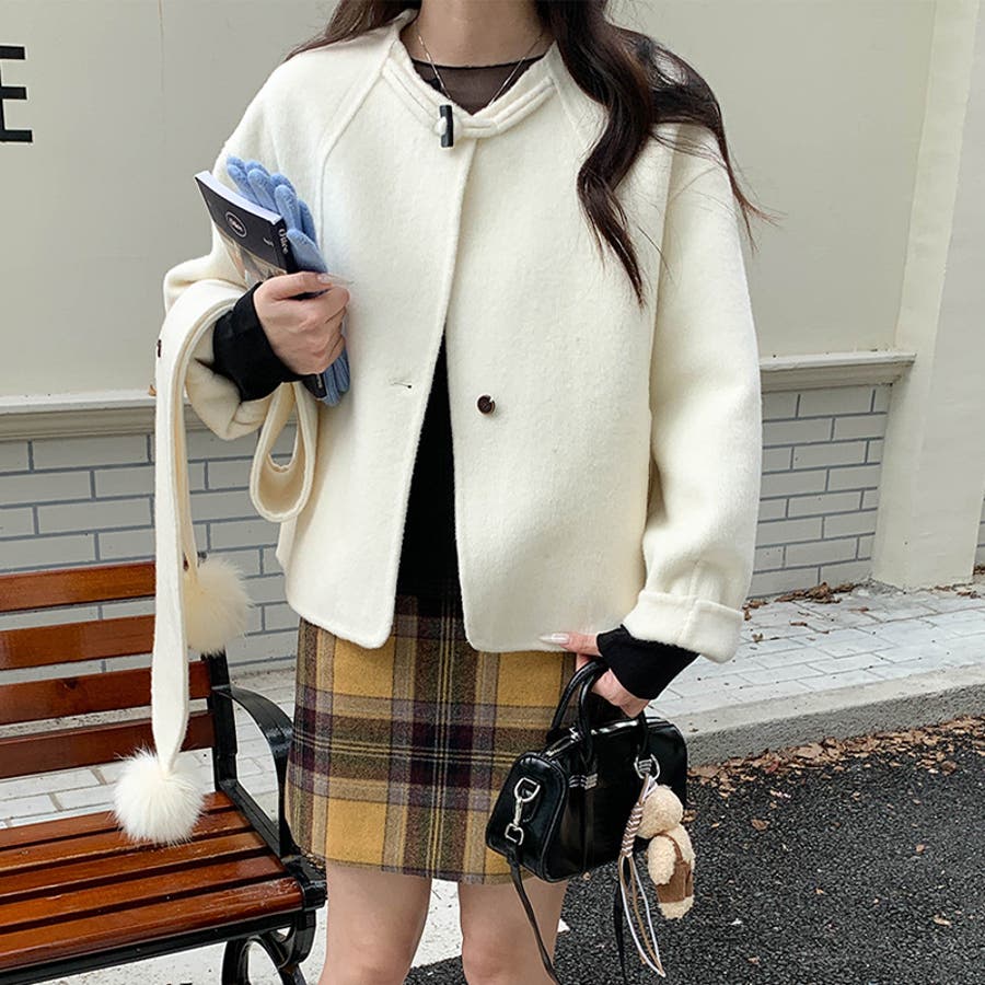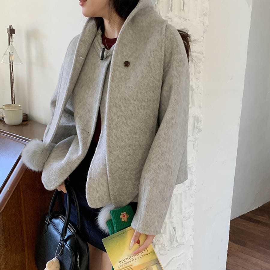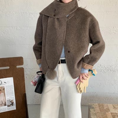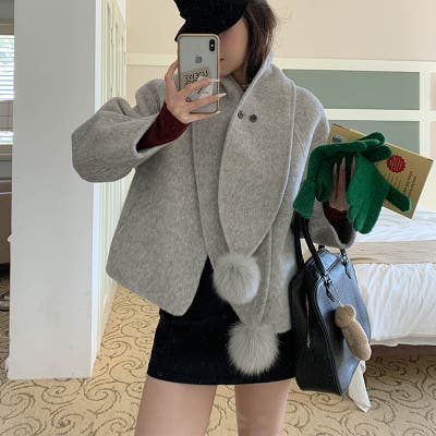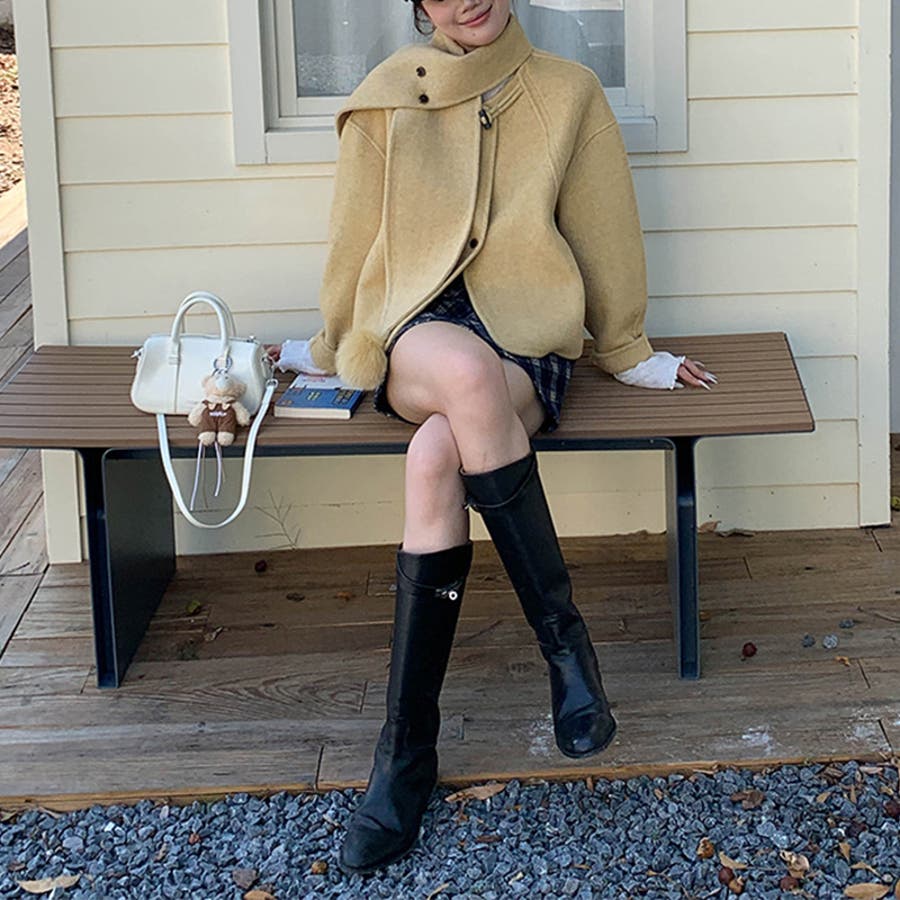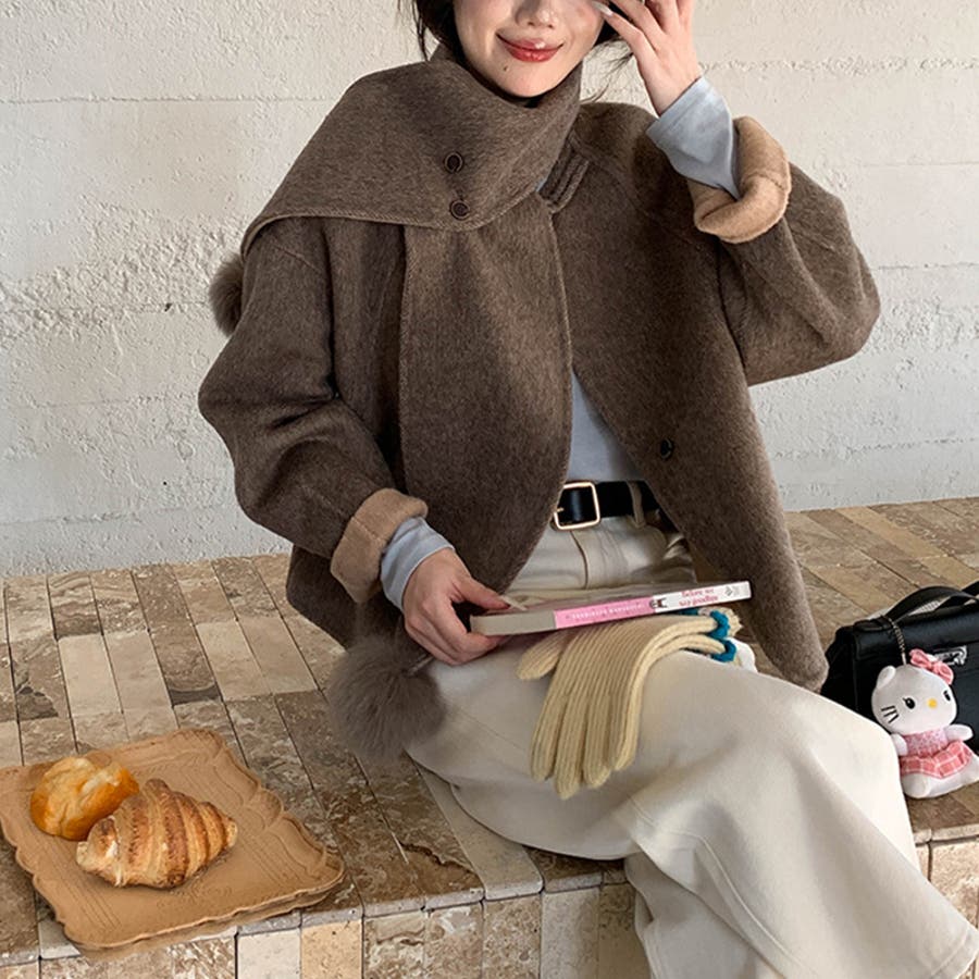 ゆるカワコーデ☆スカーフ付き デザイン性 上品 ウールコート
