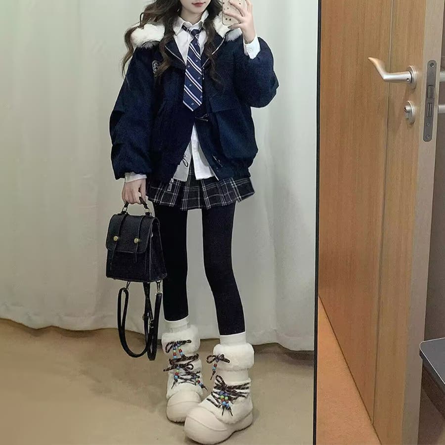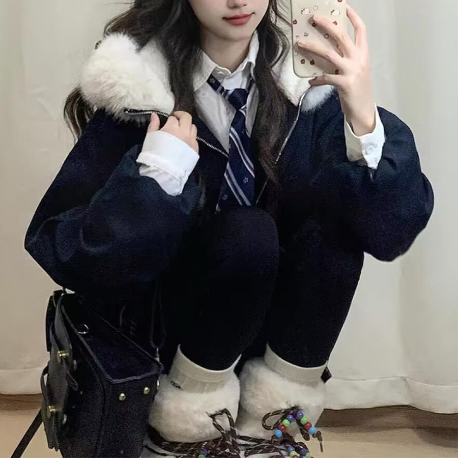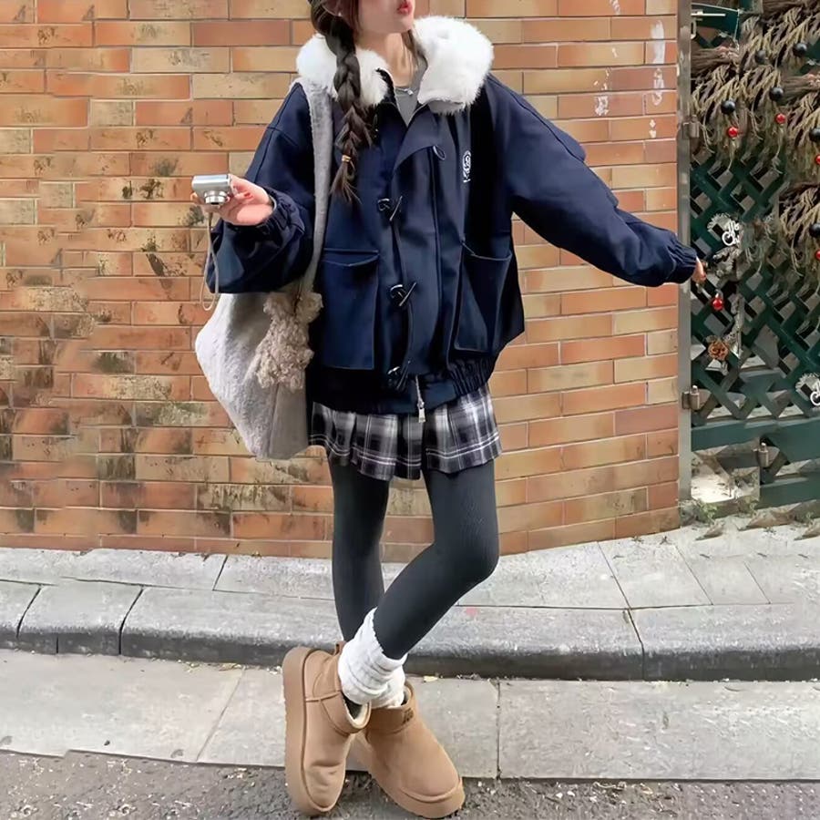 気負わず快適☆中綿ジャケットショート丈 ボア切替