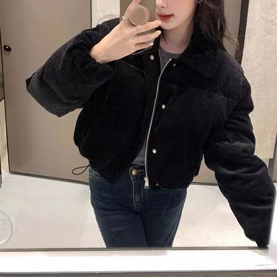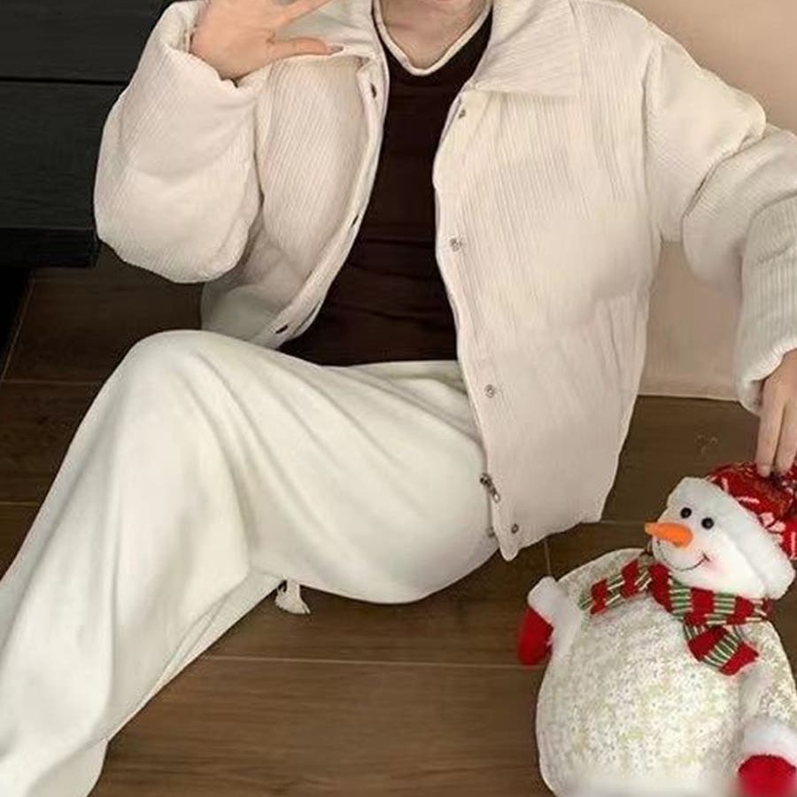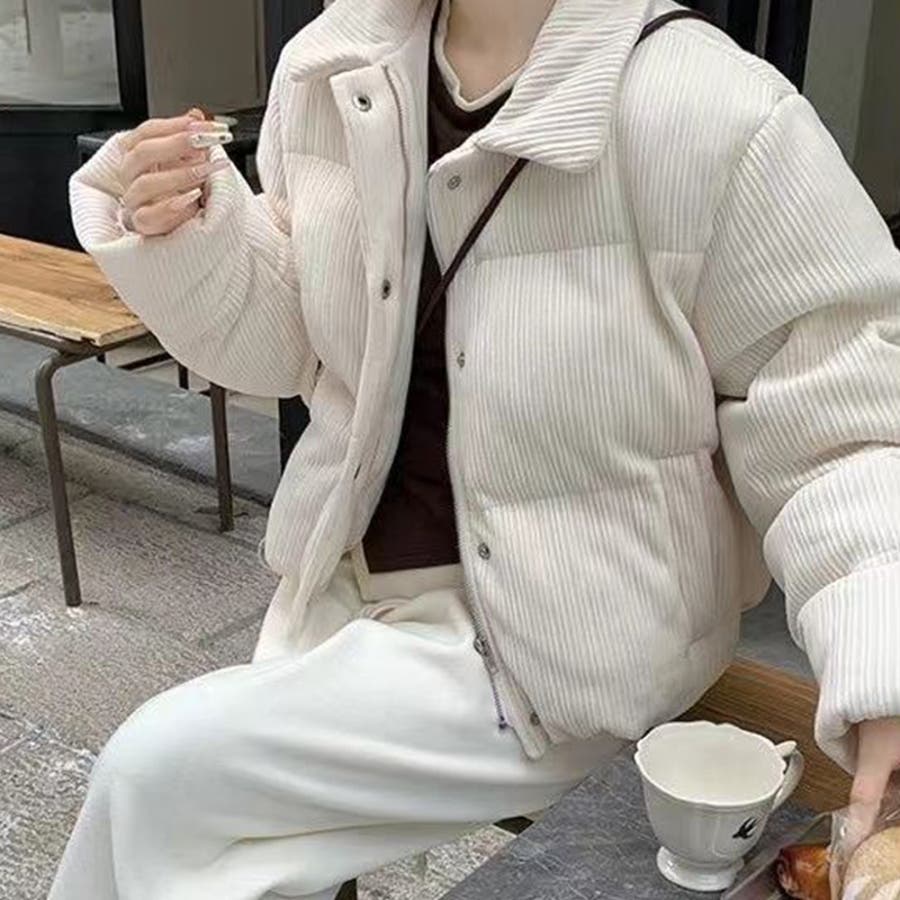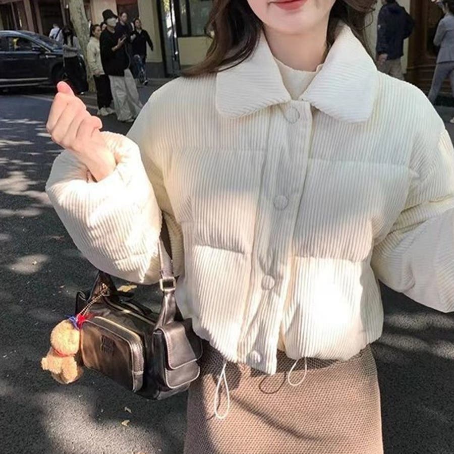 ゆるカワコーデ☆コーデュロイ パン服 襟付き 中綿 厚手ショート丈ジャケット