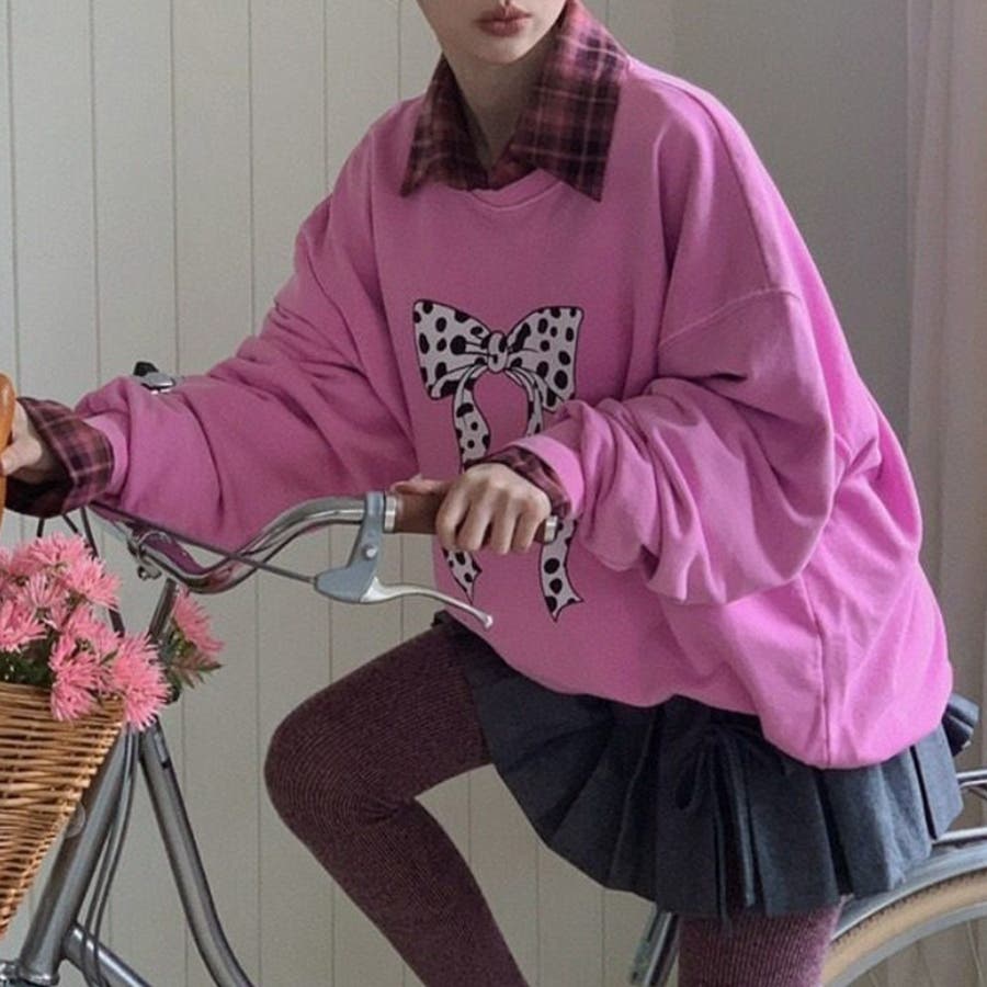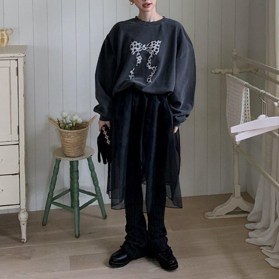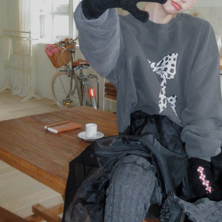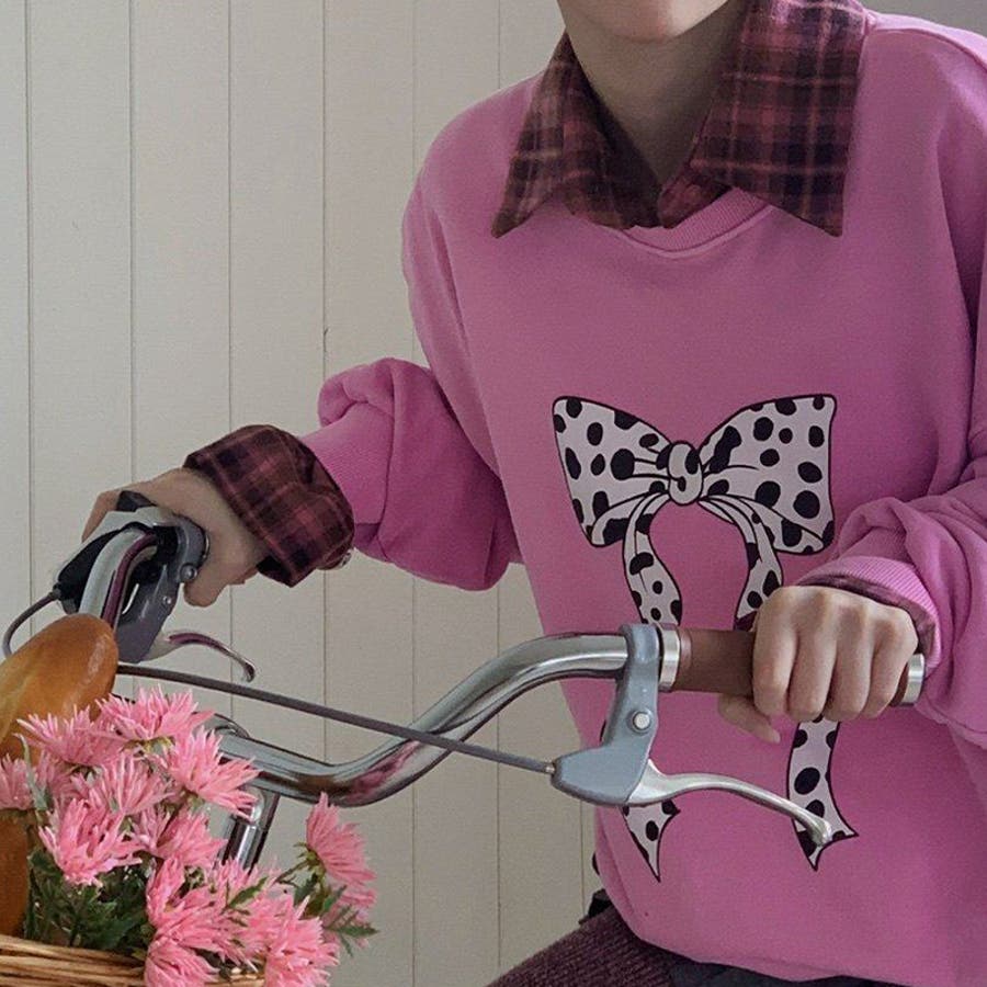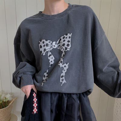 甘辛系ガールズ☆リボンプリント プルオーバースウェット