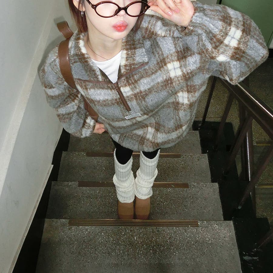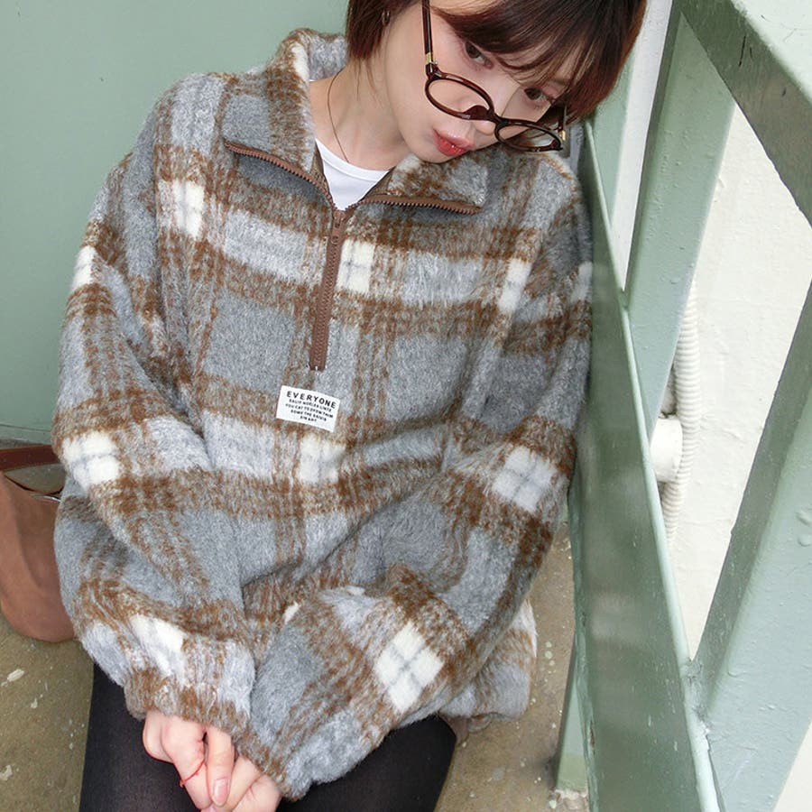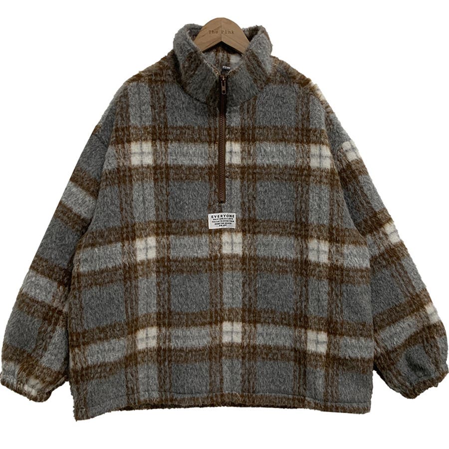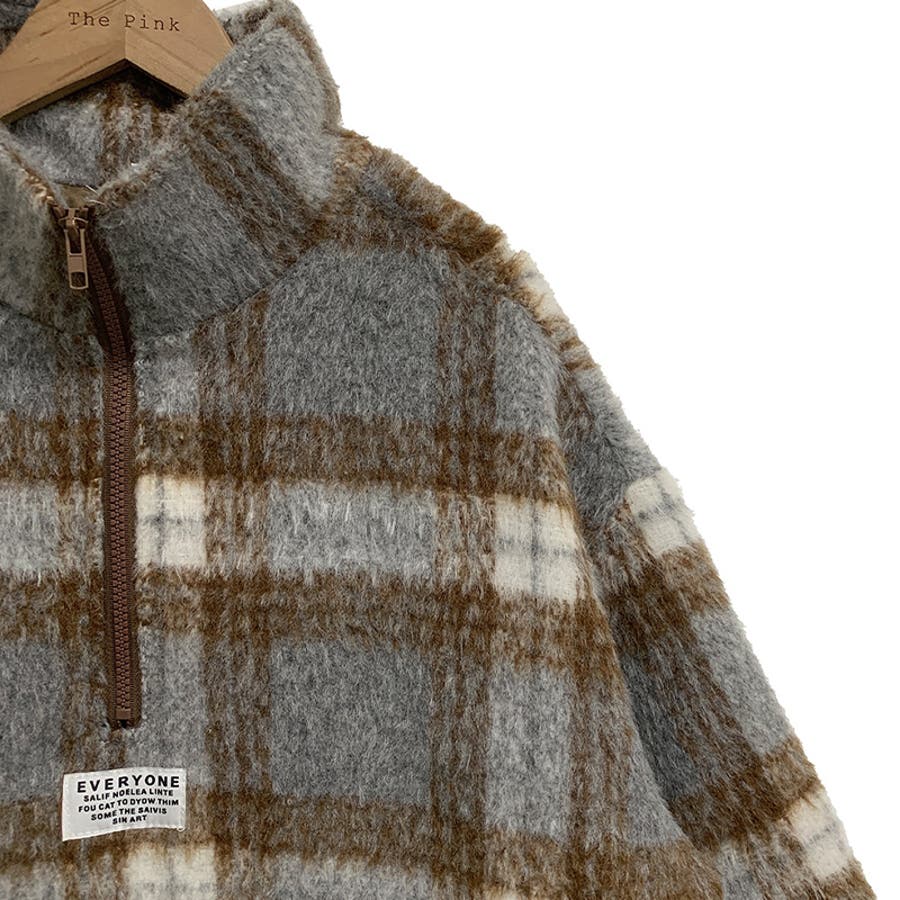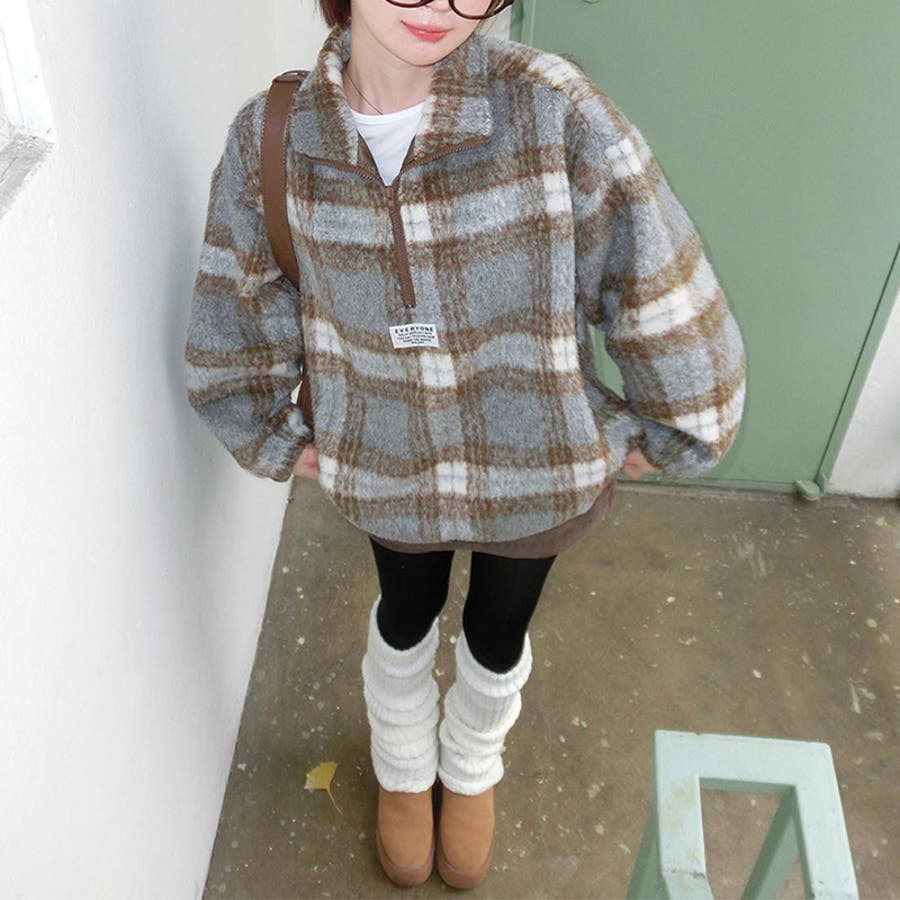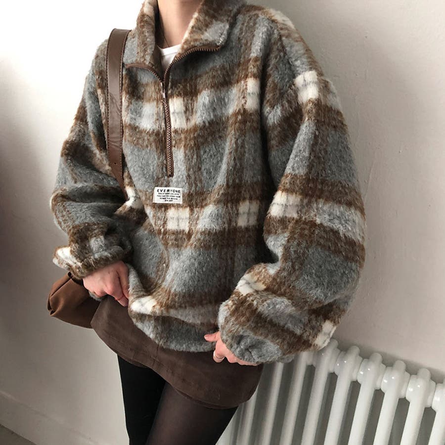 気負わず快適☆レトログリーン チェック柄 ジップアップ ファースウェット
