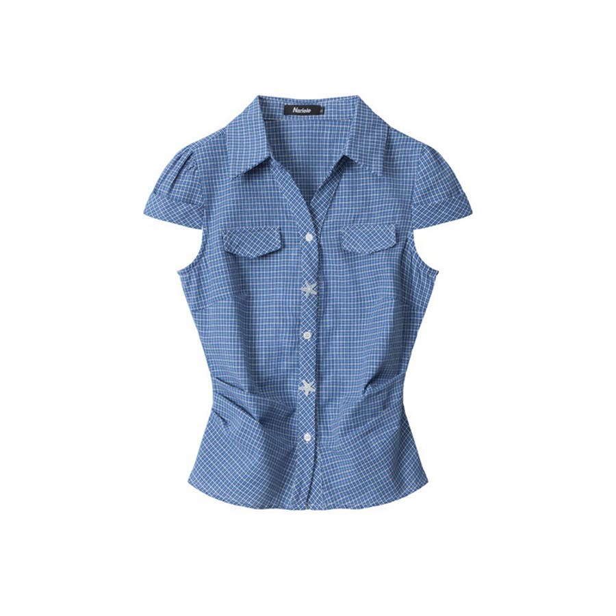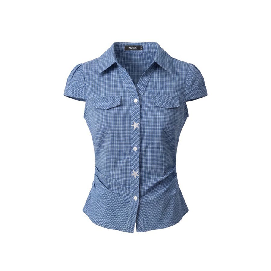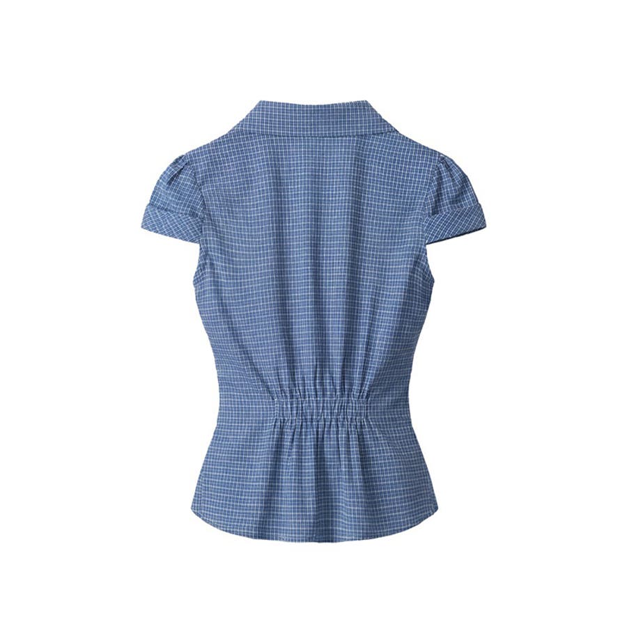 甘辛系ガールズ☆スリムフィット・ウエストシェイプチェック柄 半袖シャツ