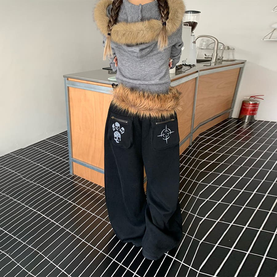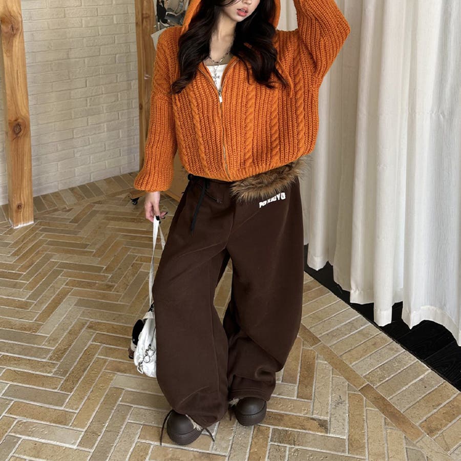 甘辛系ガールズ☆ファー・ベルト付き カジュアルスウェットパンツ