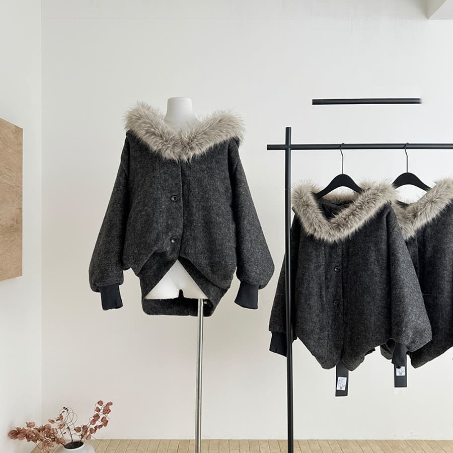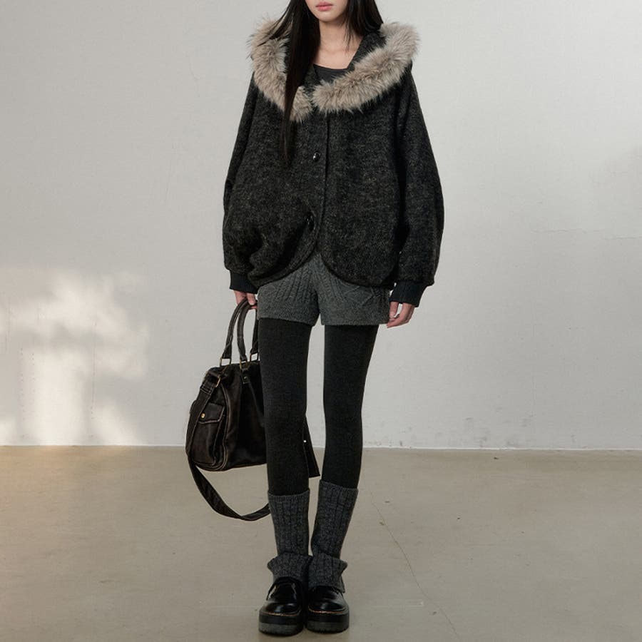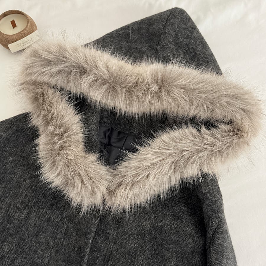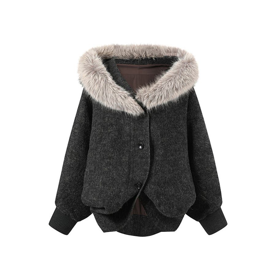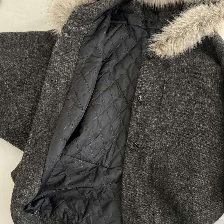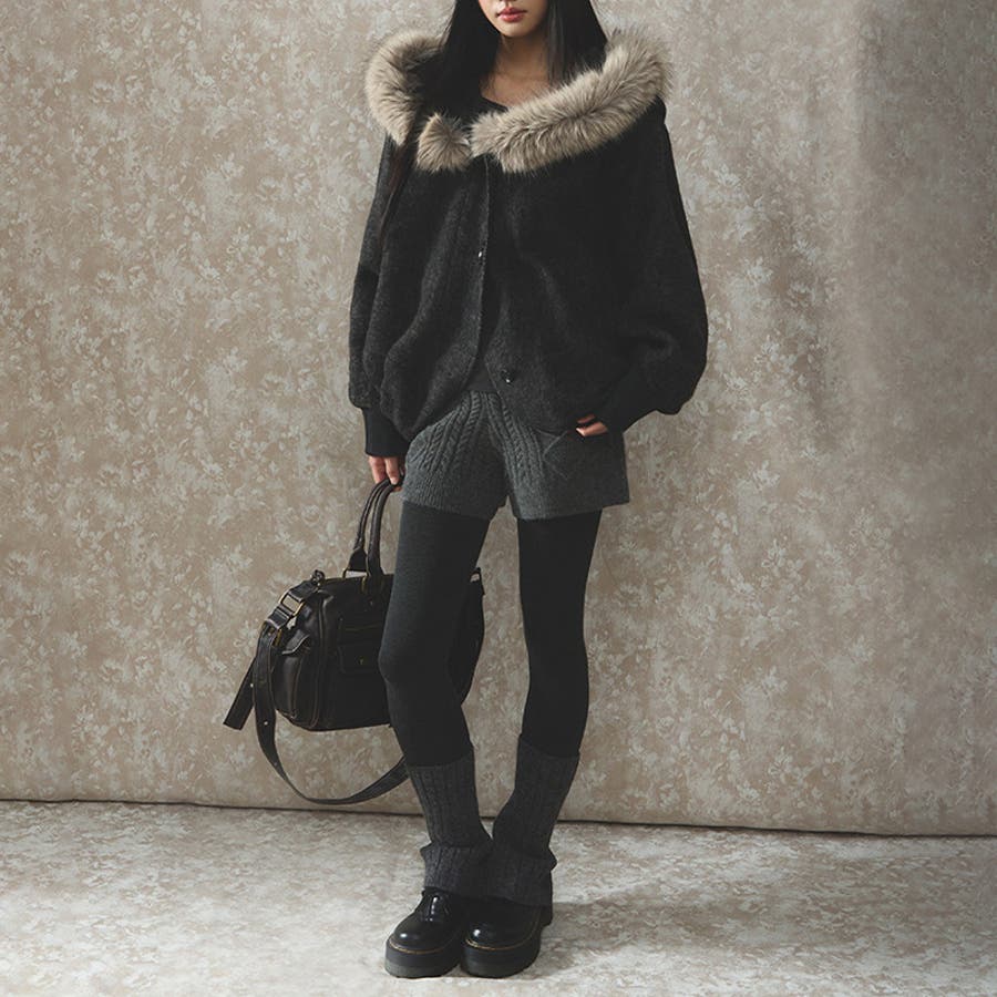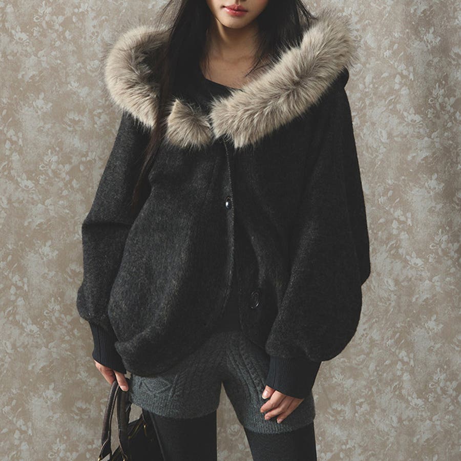 甘辛系ガールズ ダークグレー ファー襟付き
