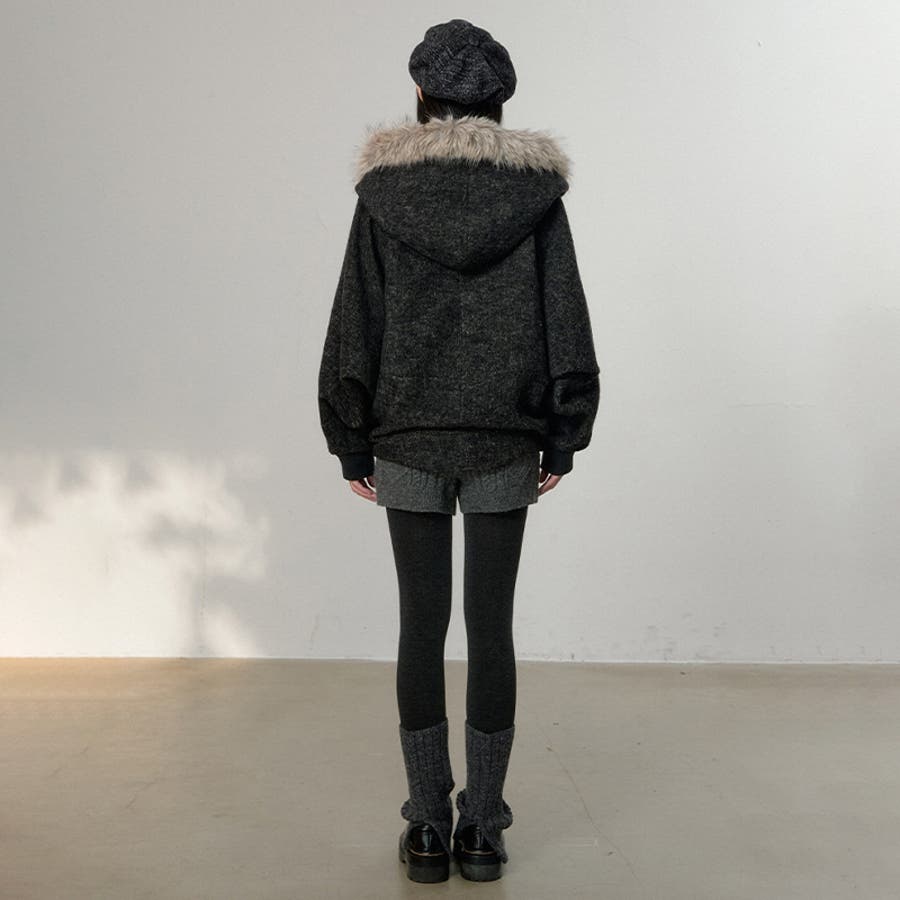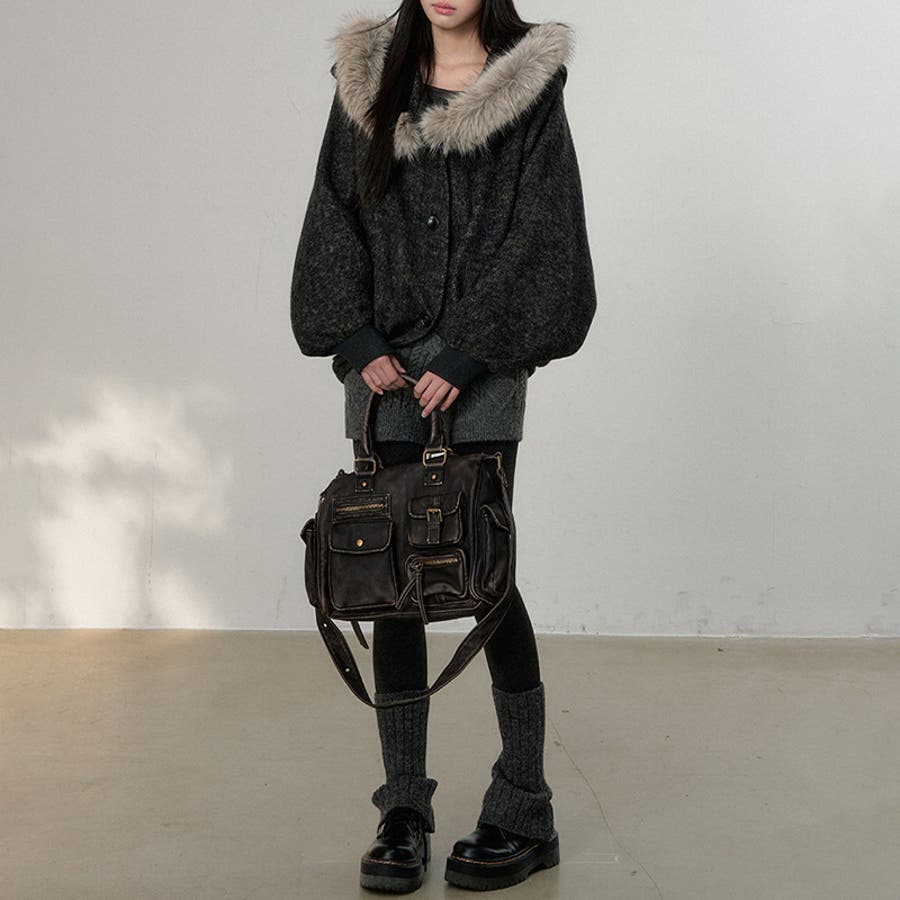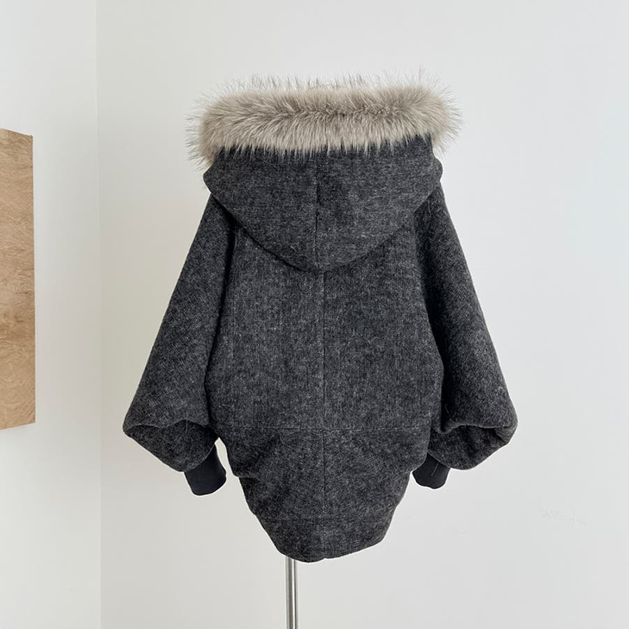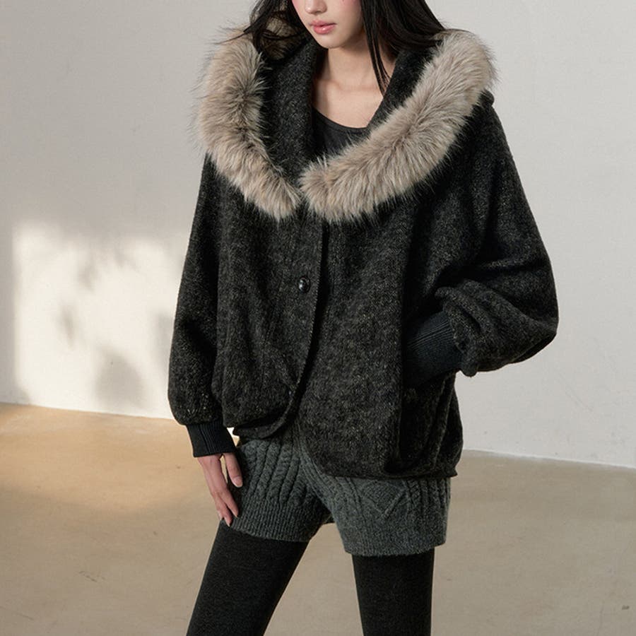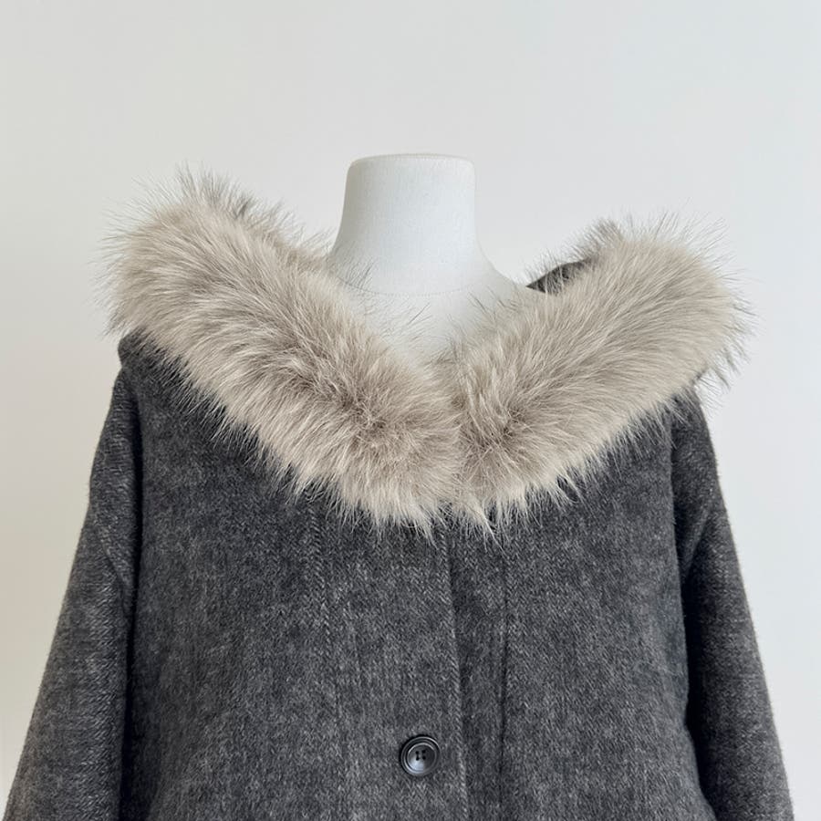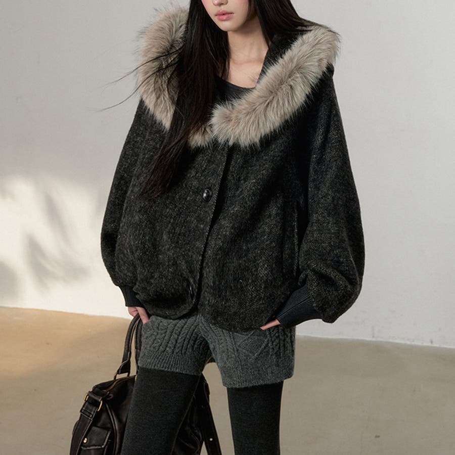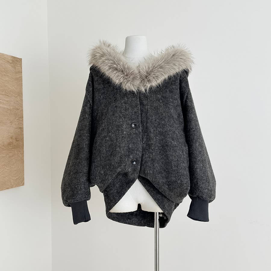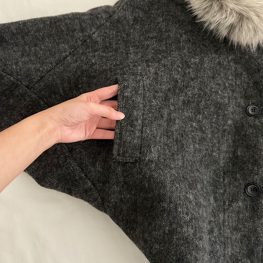 甘辛系ガールズ ダークグレー ファー襟付き