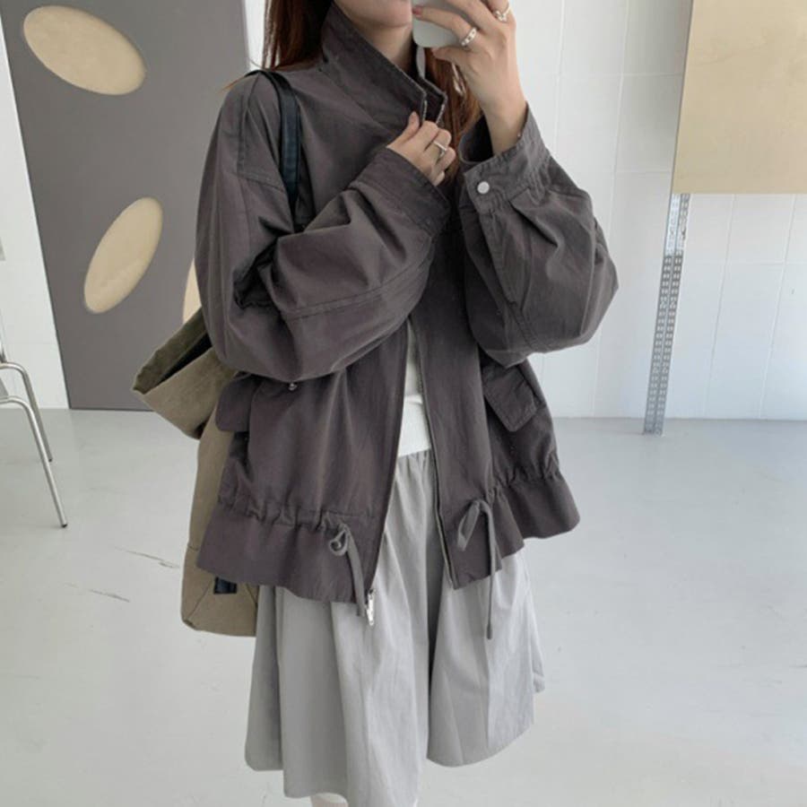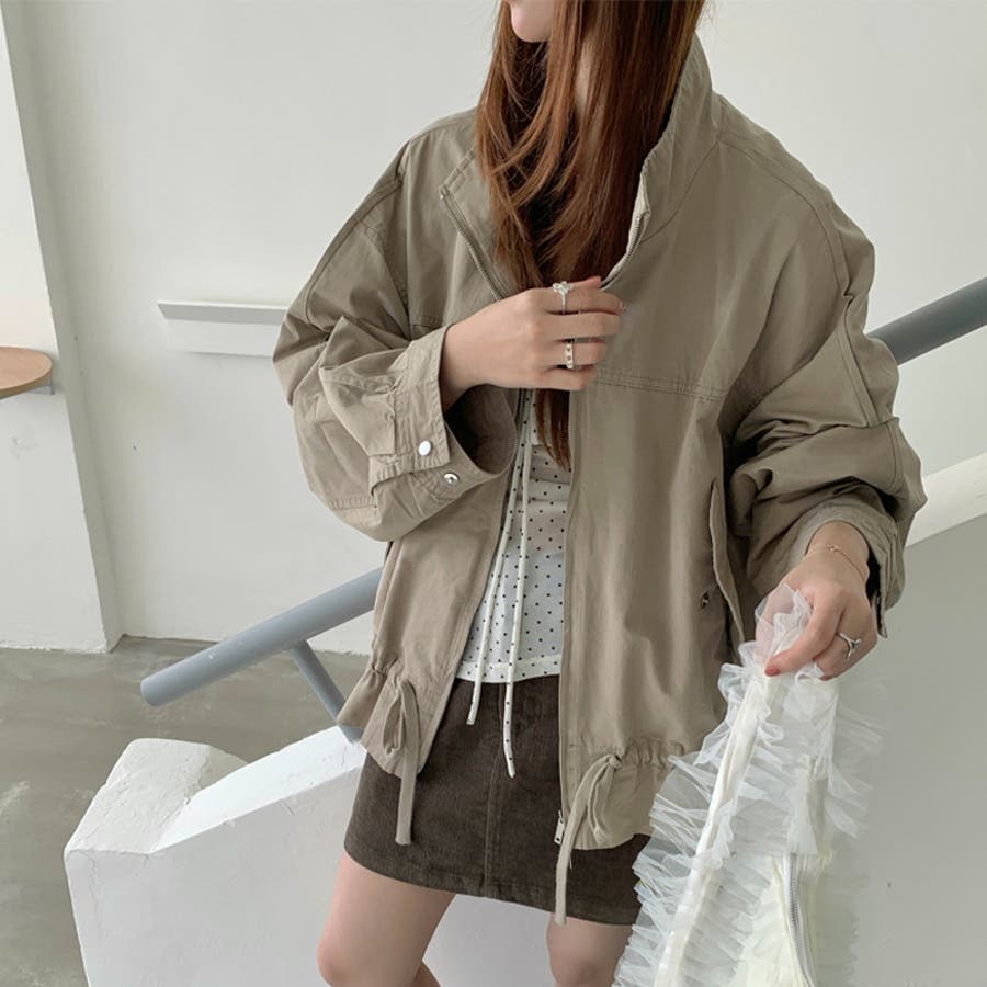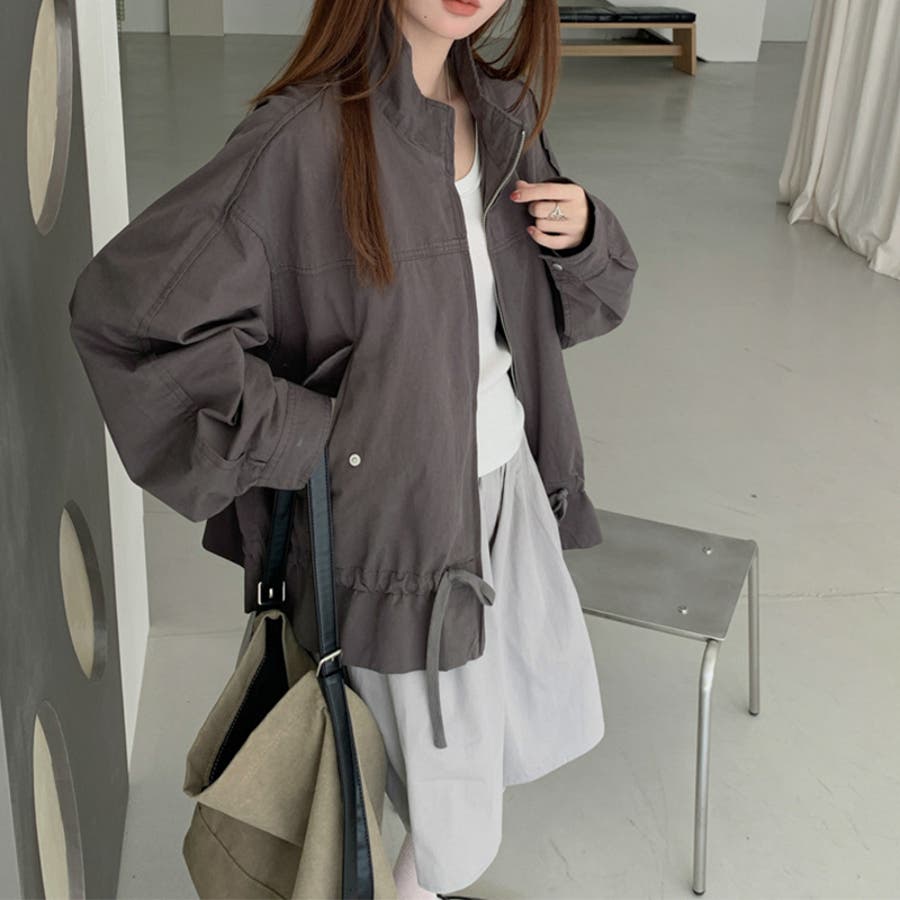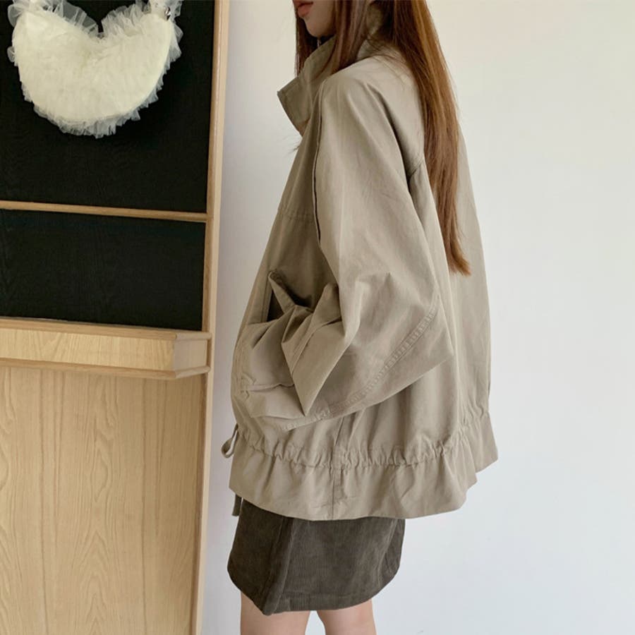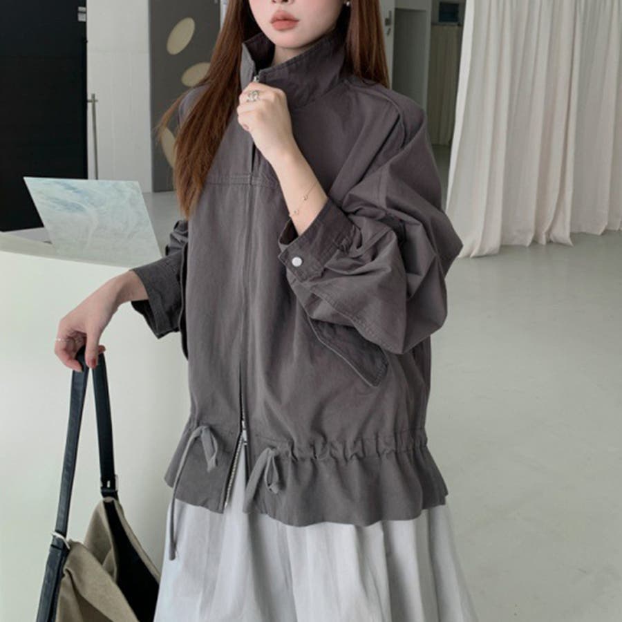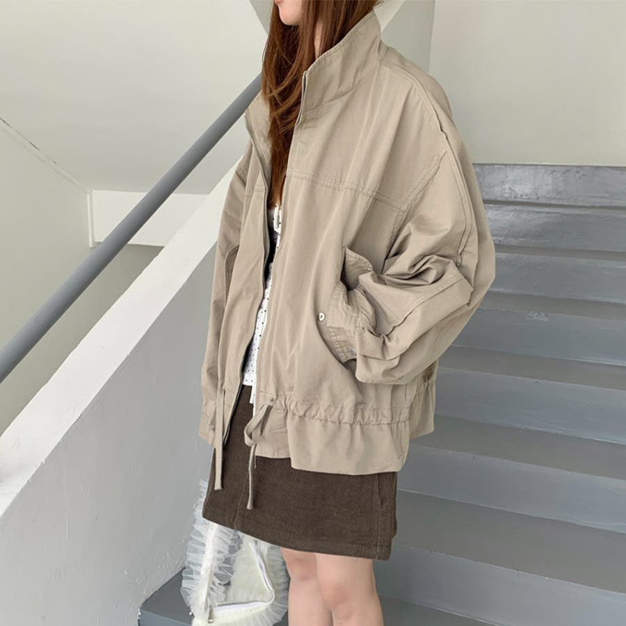 気負わず快適 ドローストリングスタンドカラー ジャケットルーズフィット