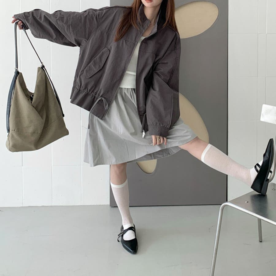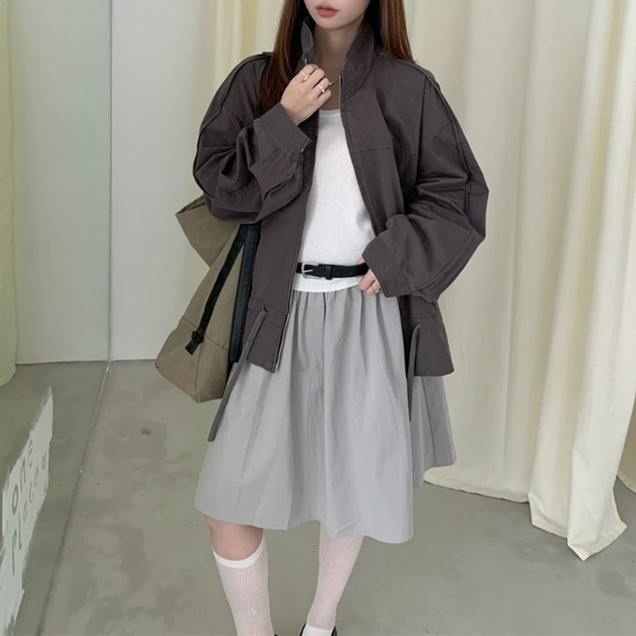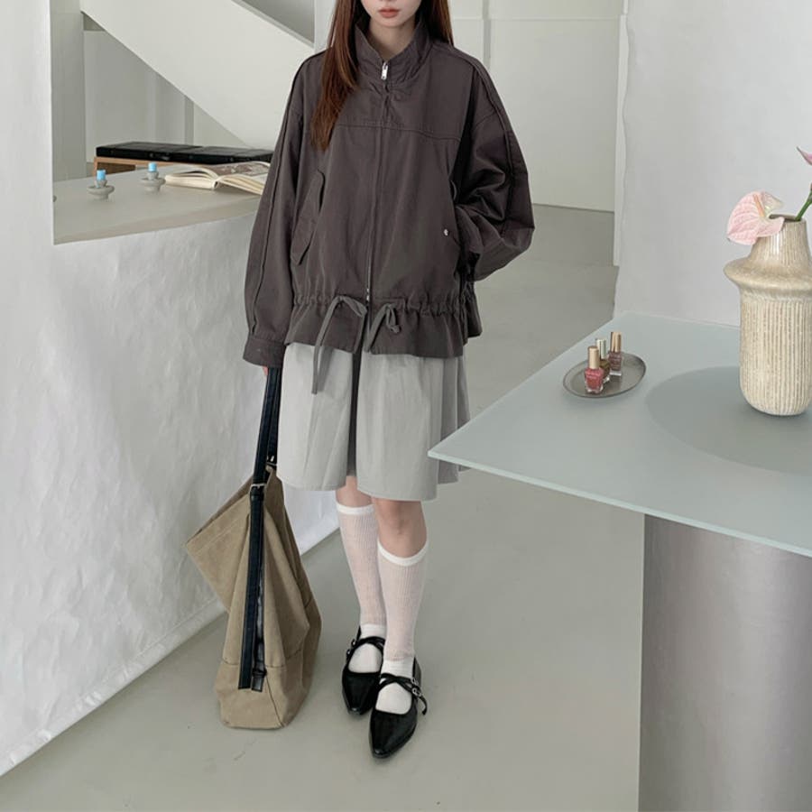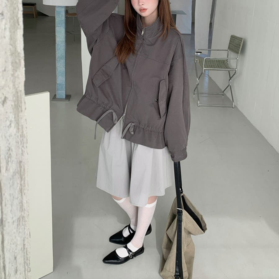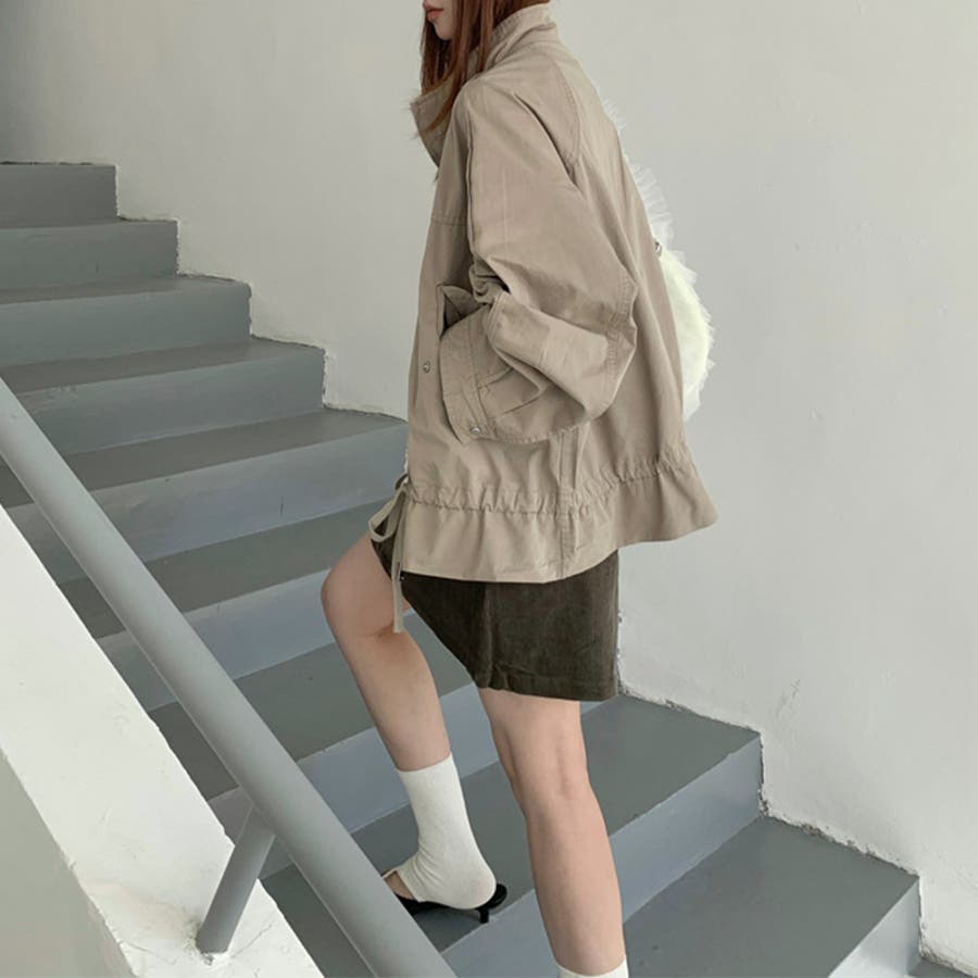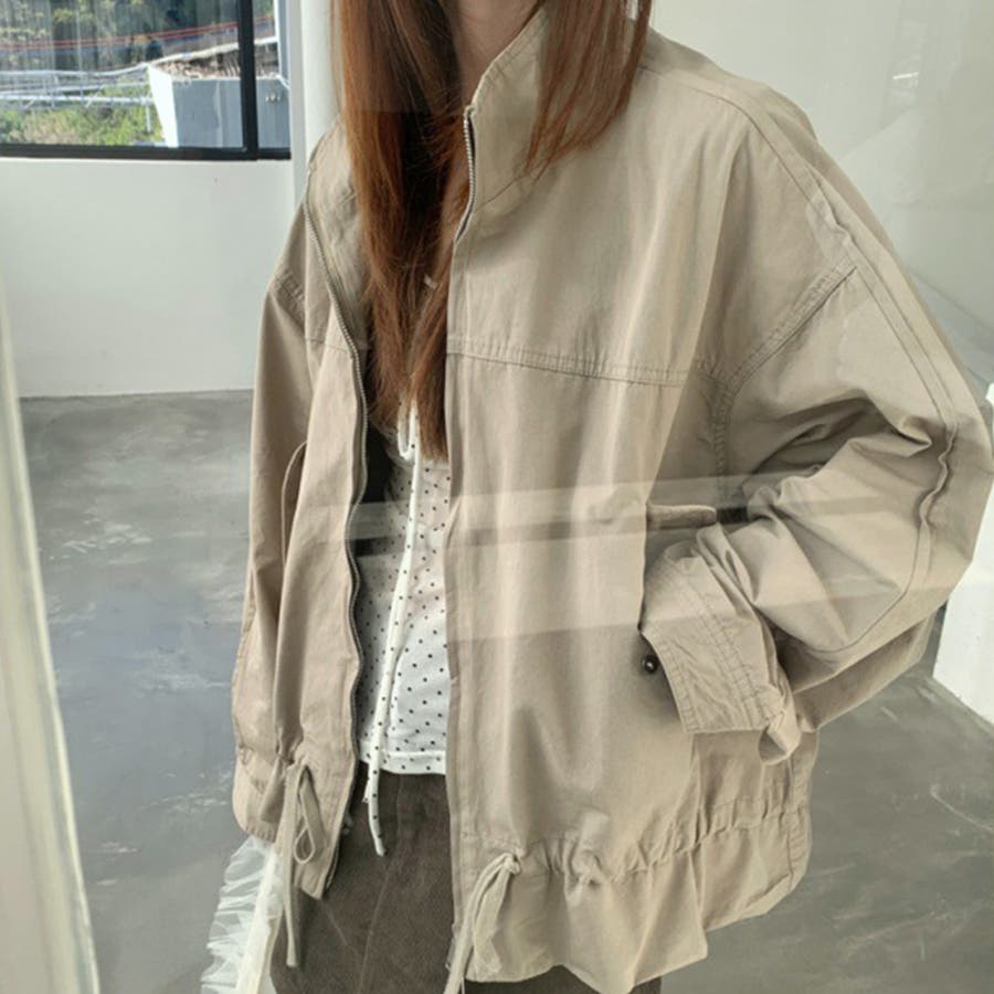 気負わず快適 ドローストリングスタンドカラー ジャケットルーズフィット