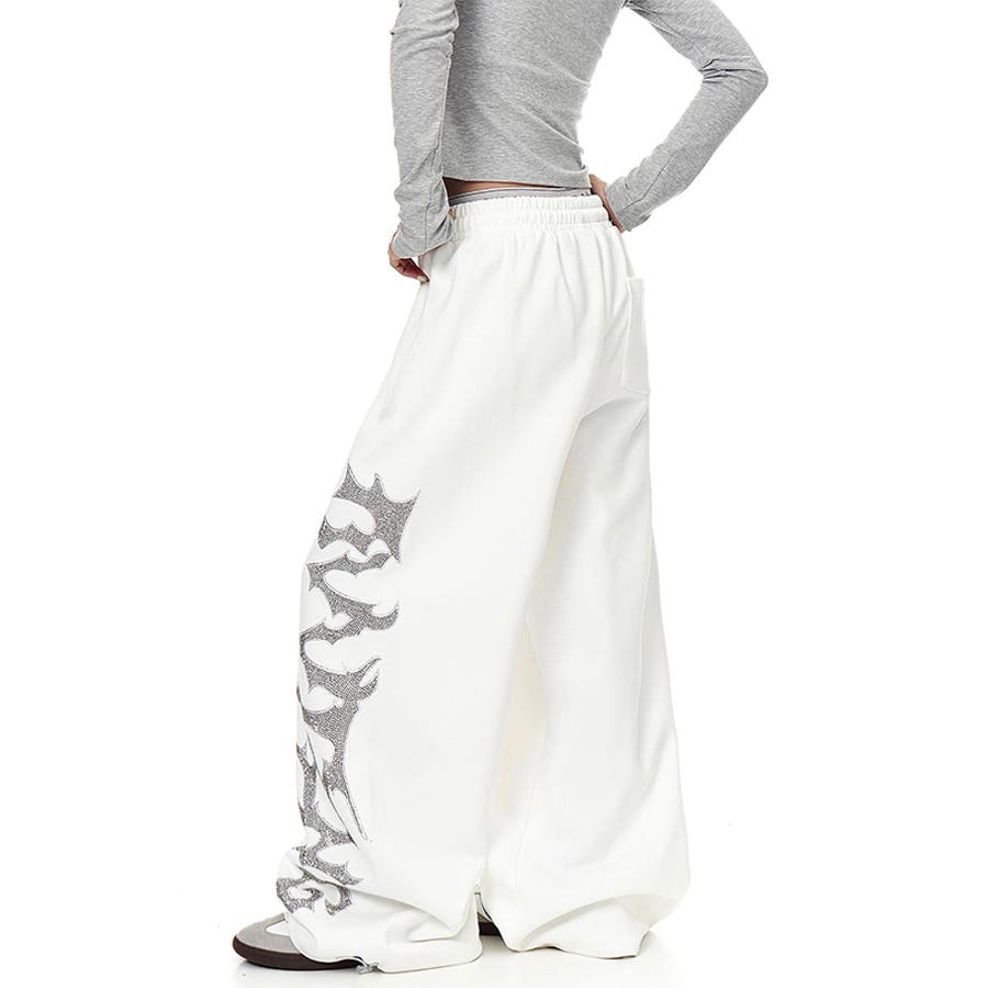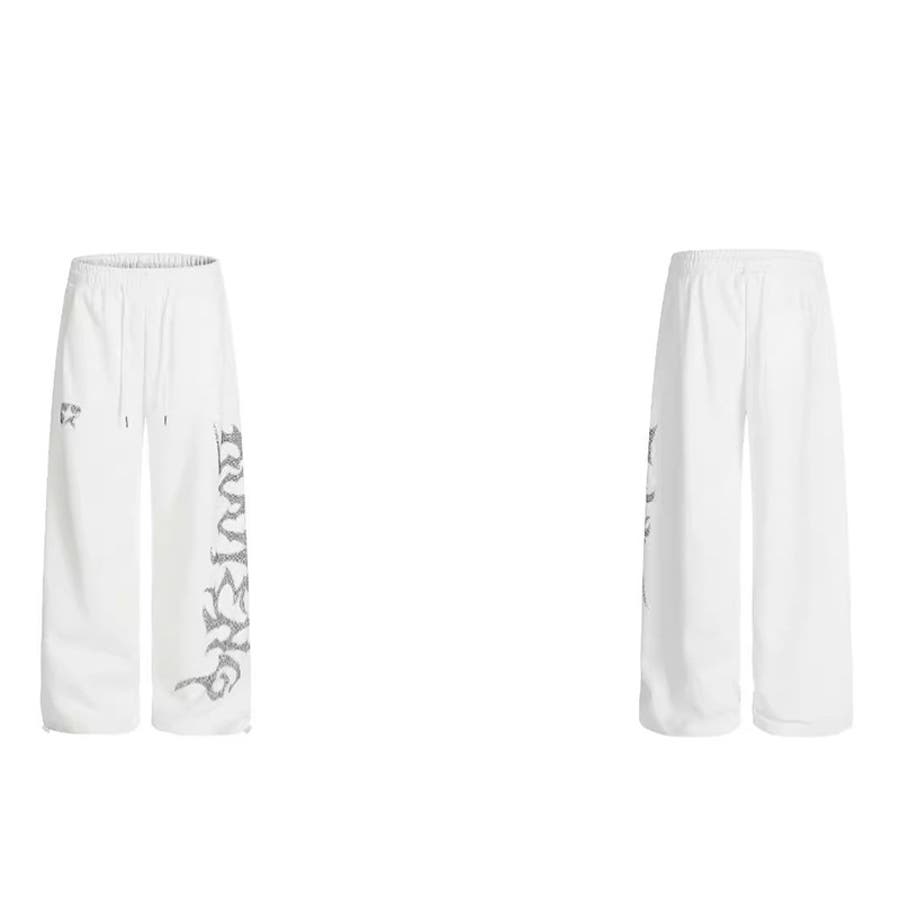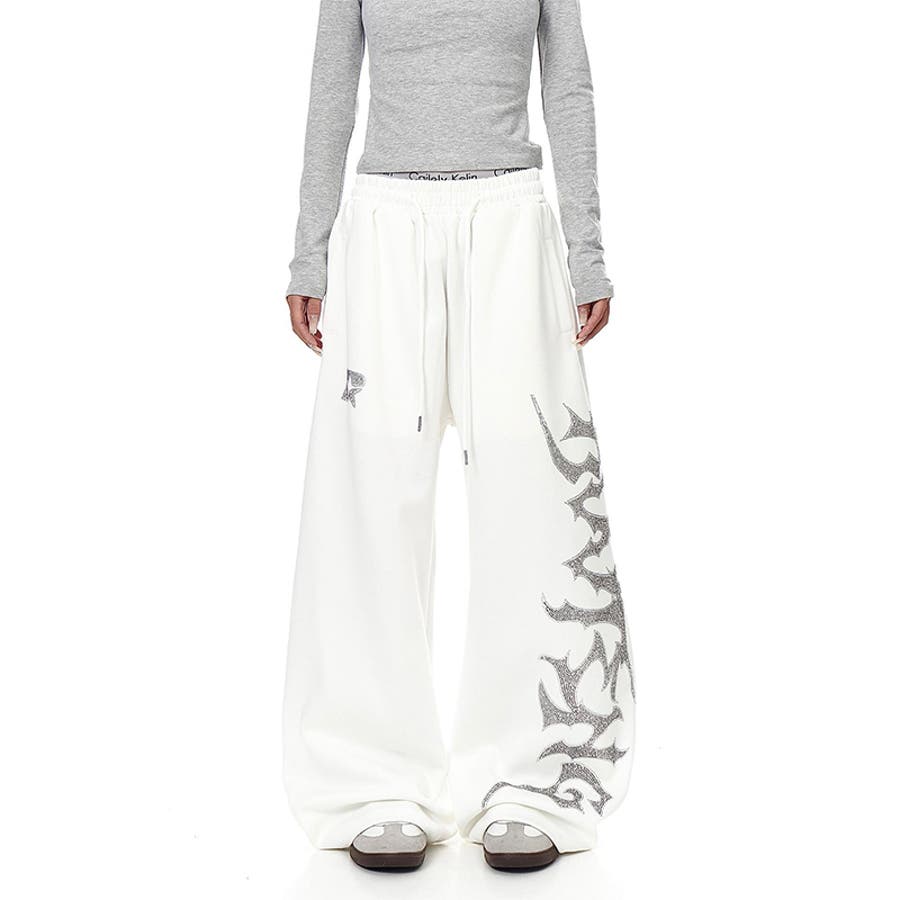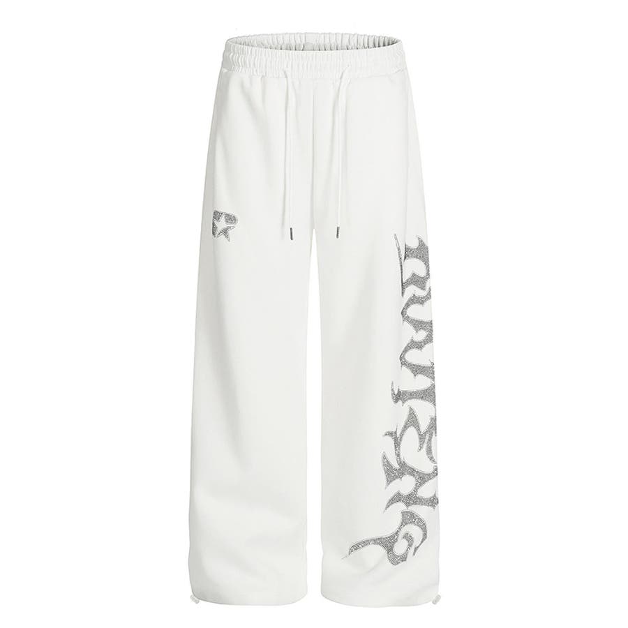 ユニセックス☆レトロ 重工ロゴ ラインストーン装飾スウェットパンツ