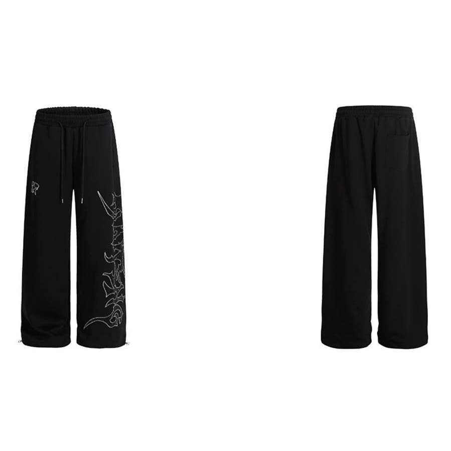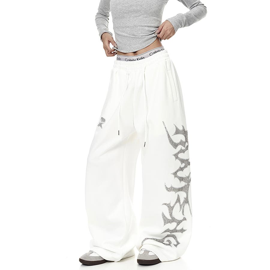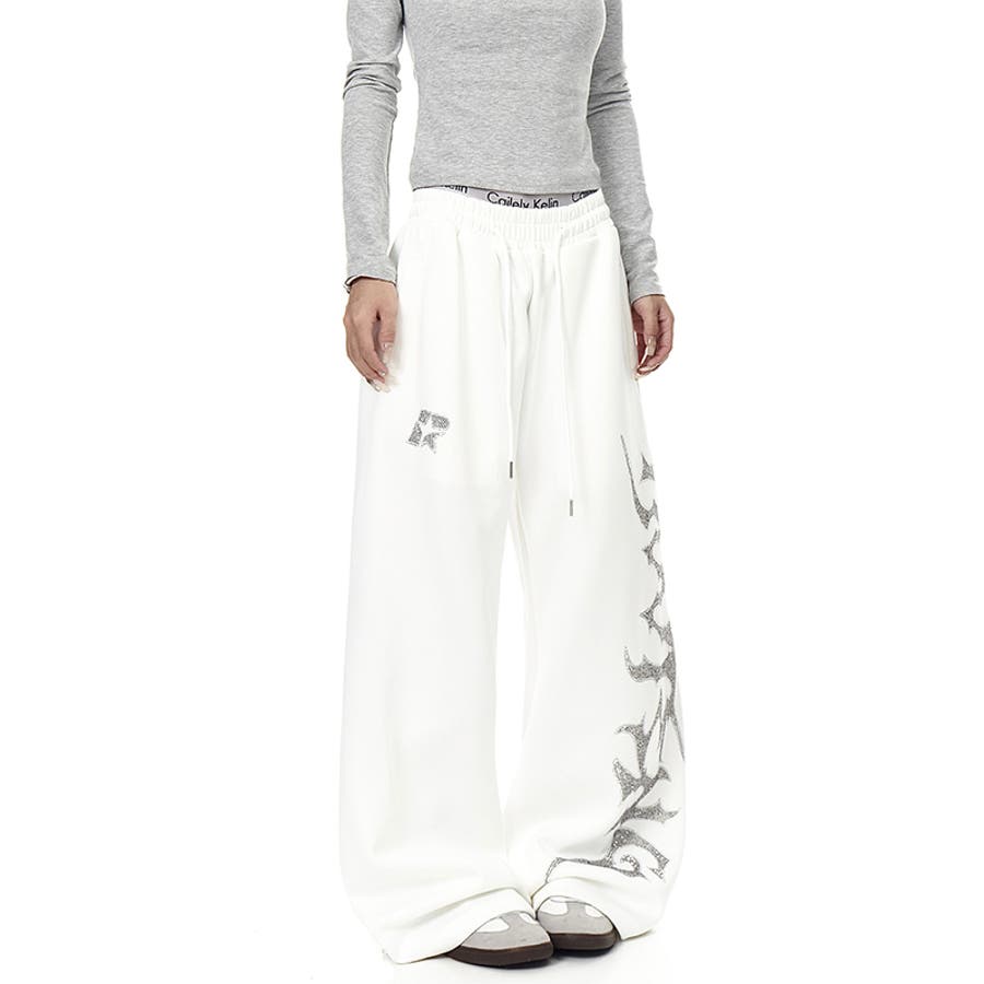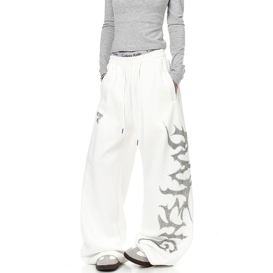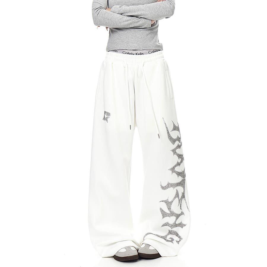 ユニセックス☆レトロ 重工ロゴ ラインストーン装飾スウェットパンツ