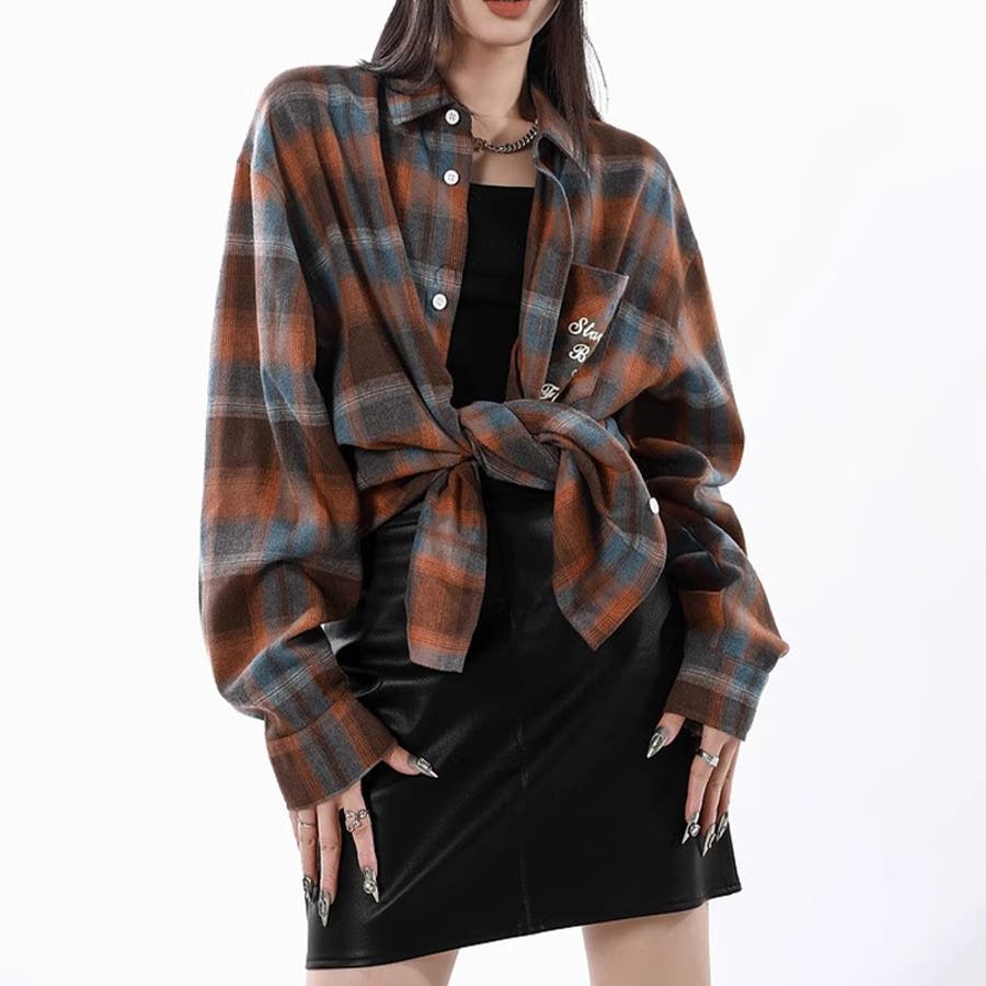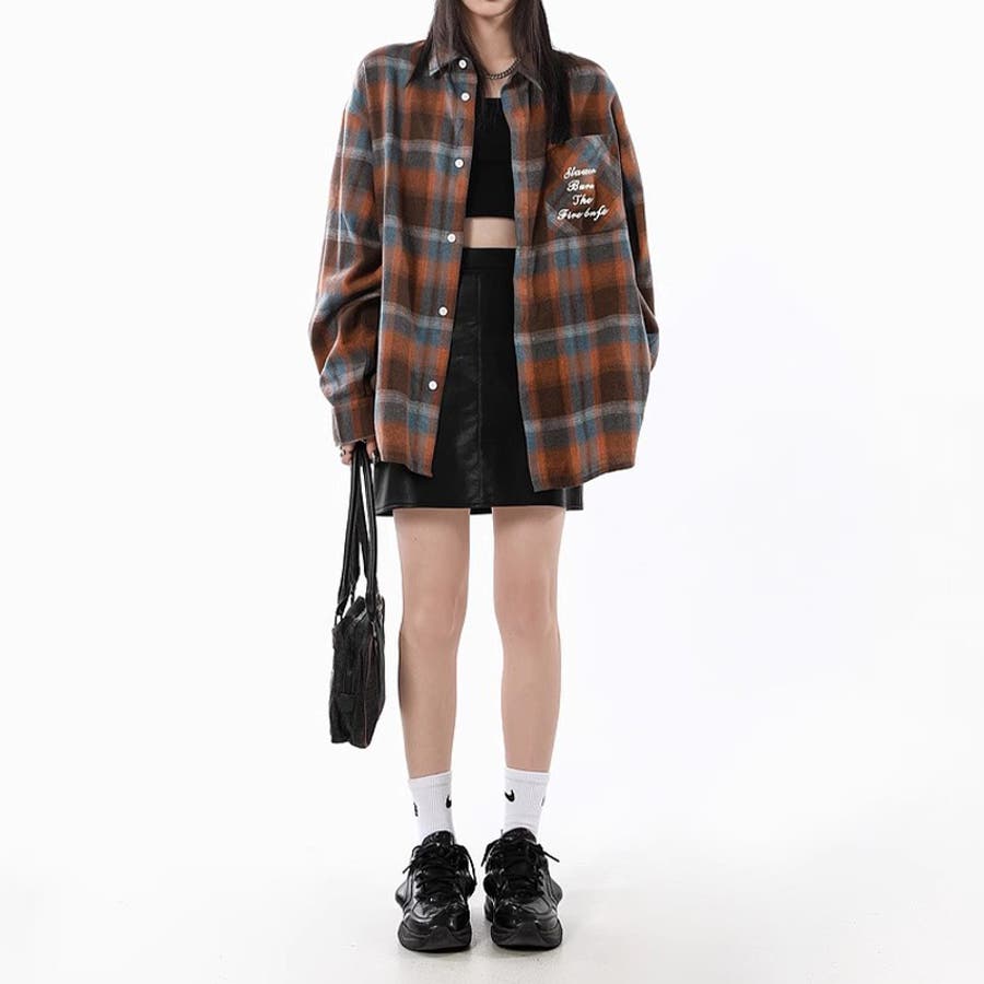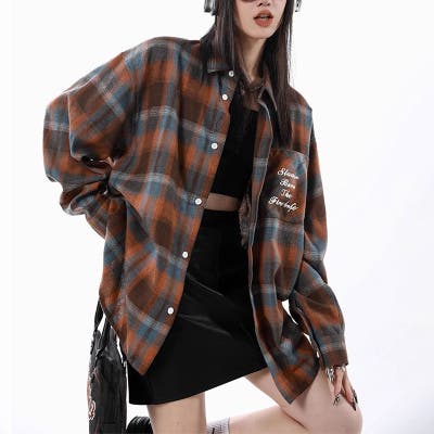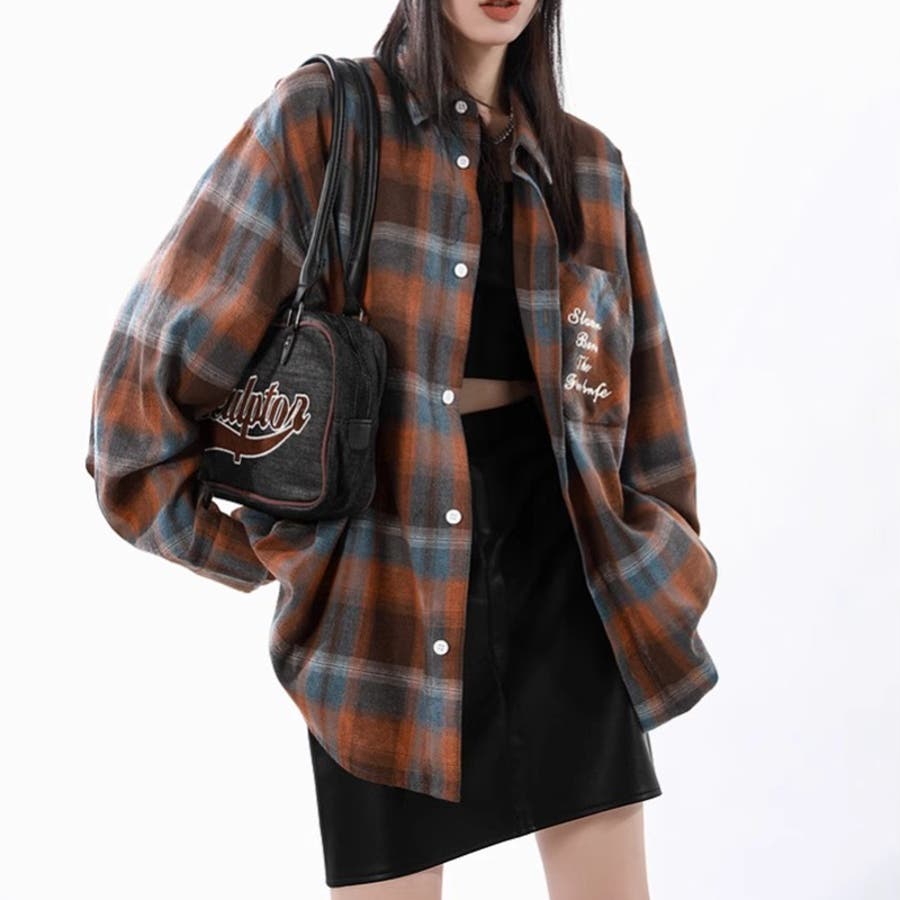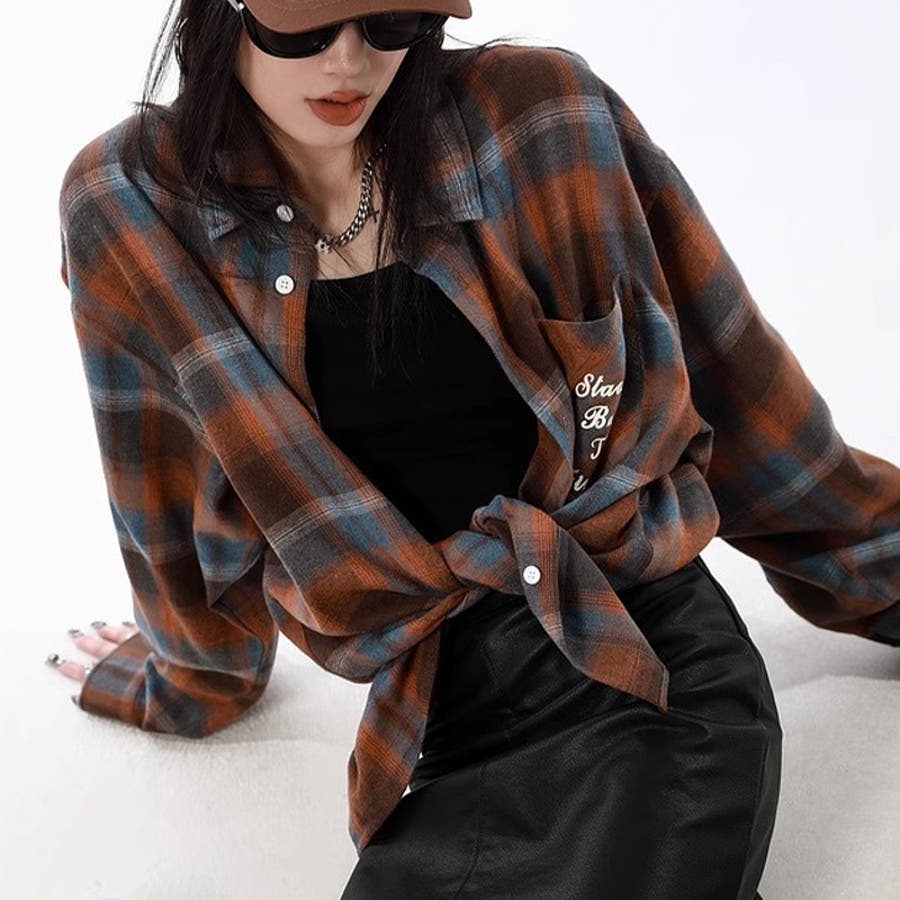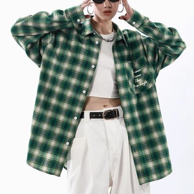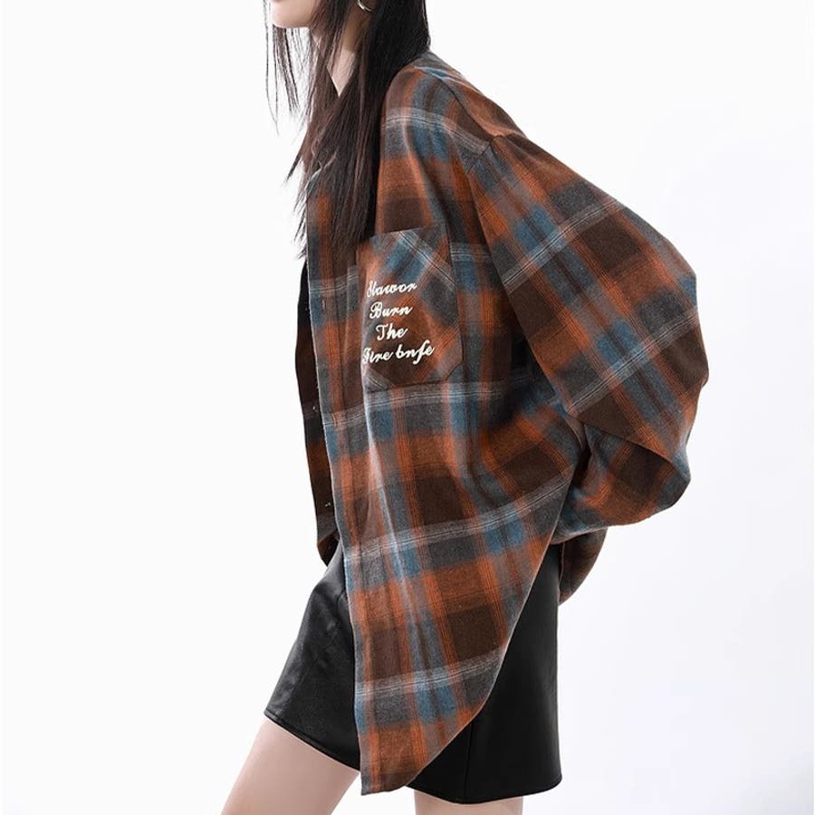 ユニセックス☆配色チェック柄 長袖シャツ若々しい ルーズフィット
