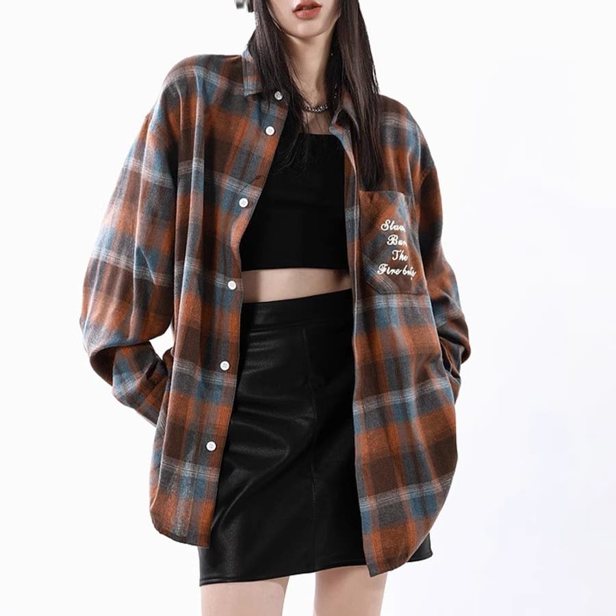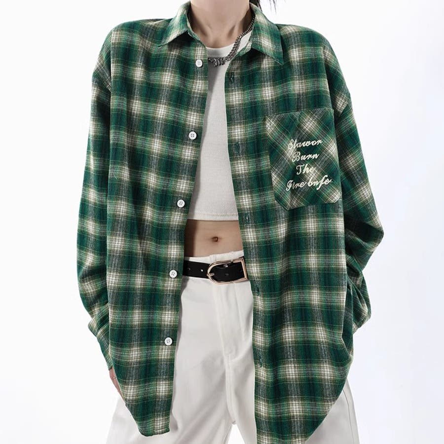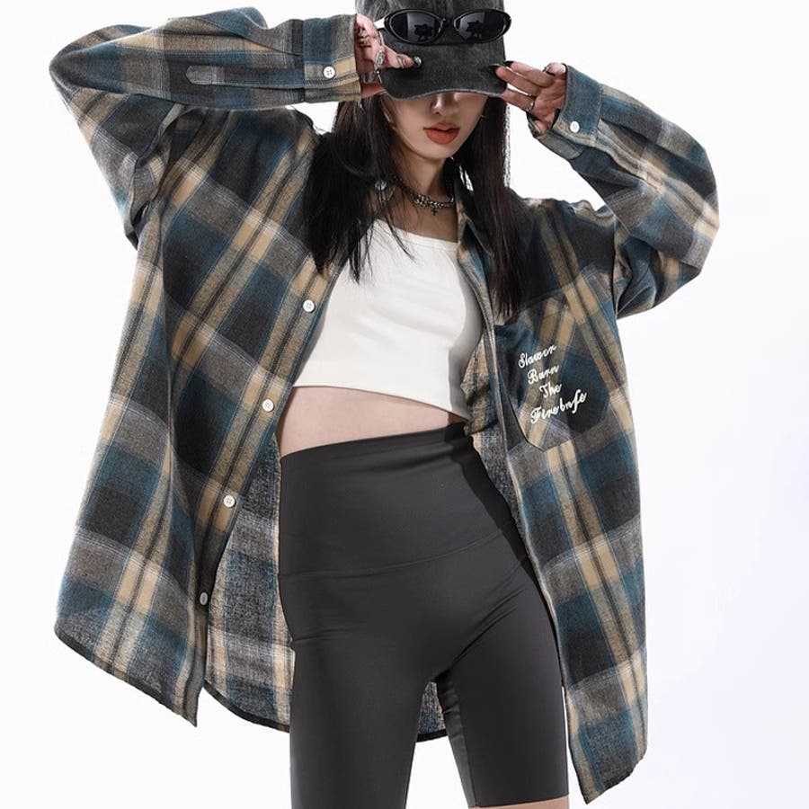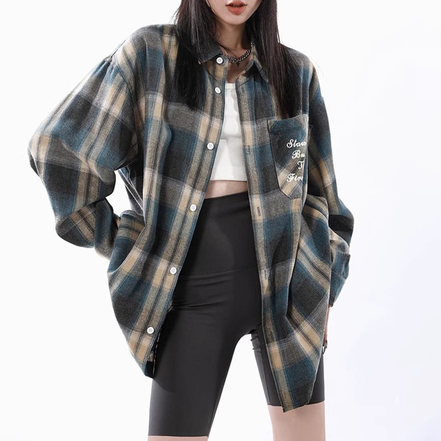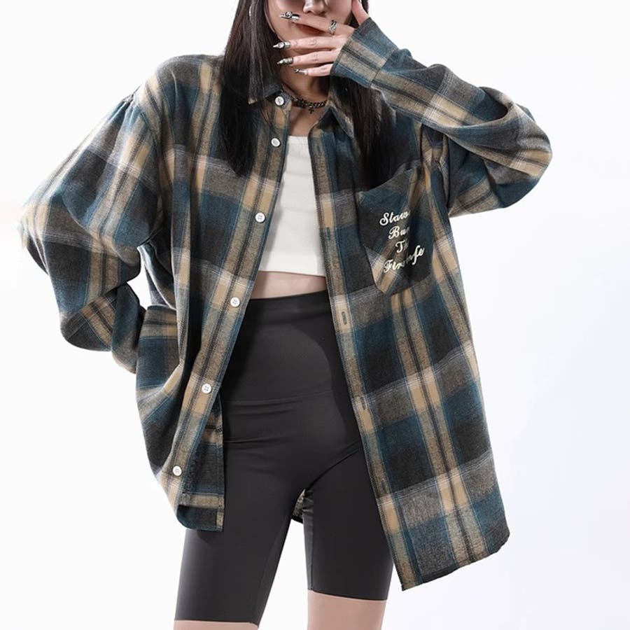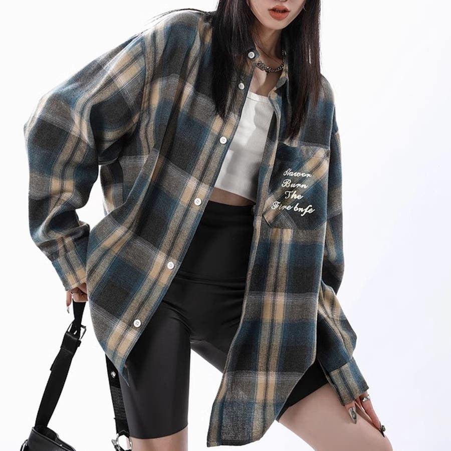 ユニセックス☆配色チェック柄 長袖シャツ若々しい ルーズフィット