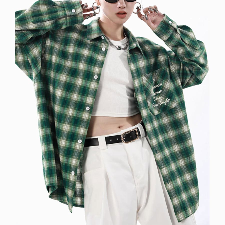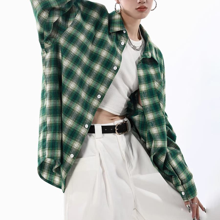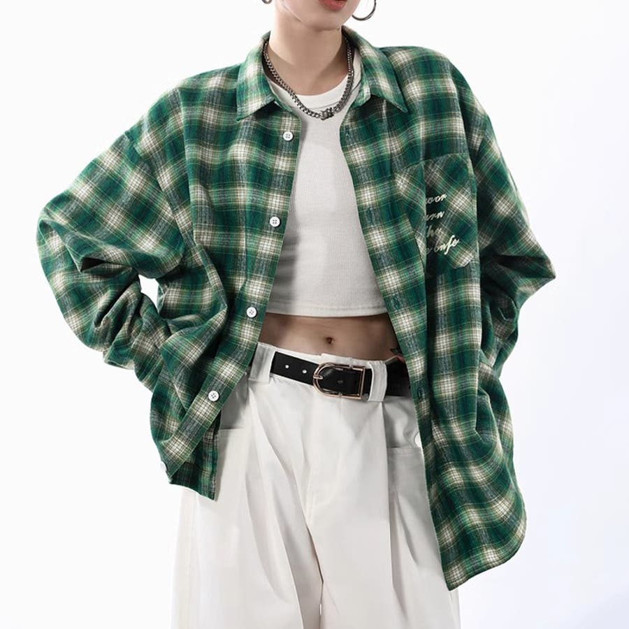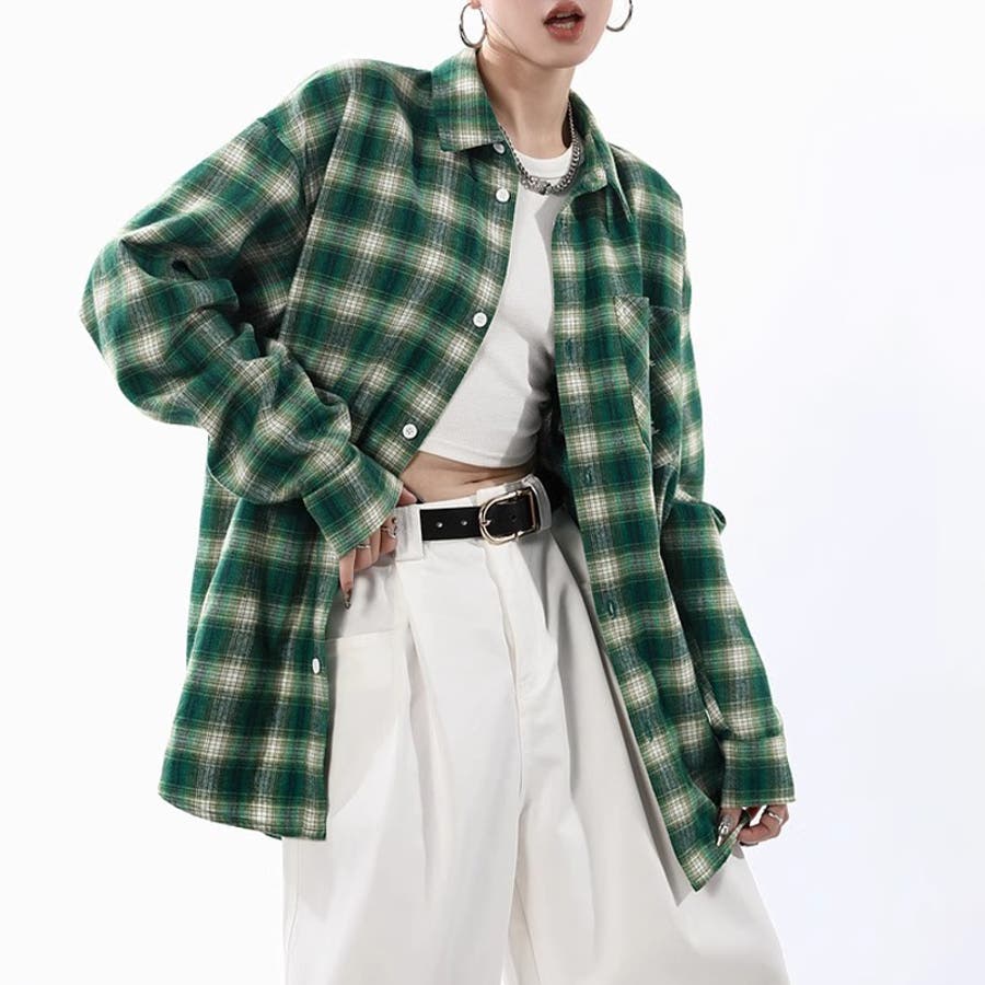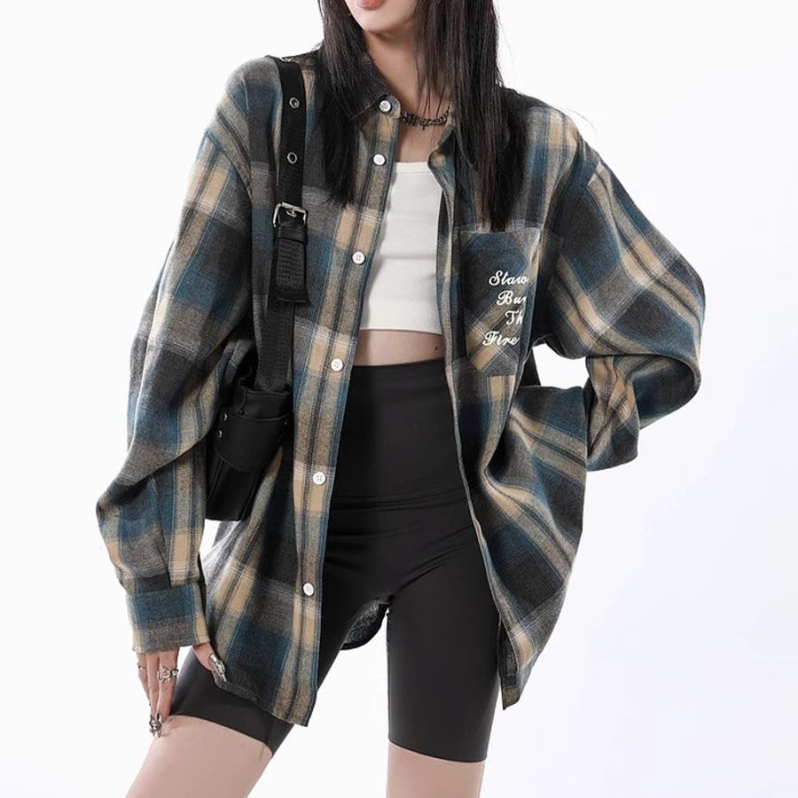 ユニセックス☆配色チェック柄 長袖シャツ若々しい ルーズフィット