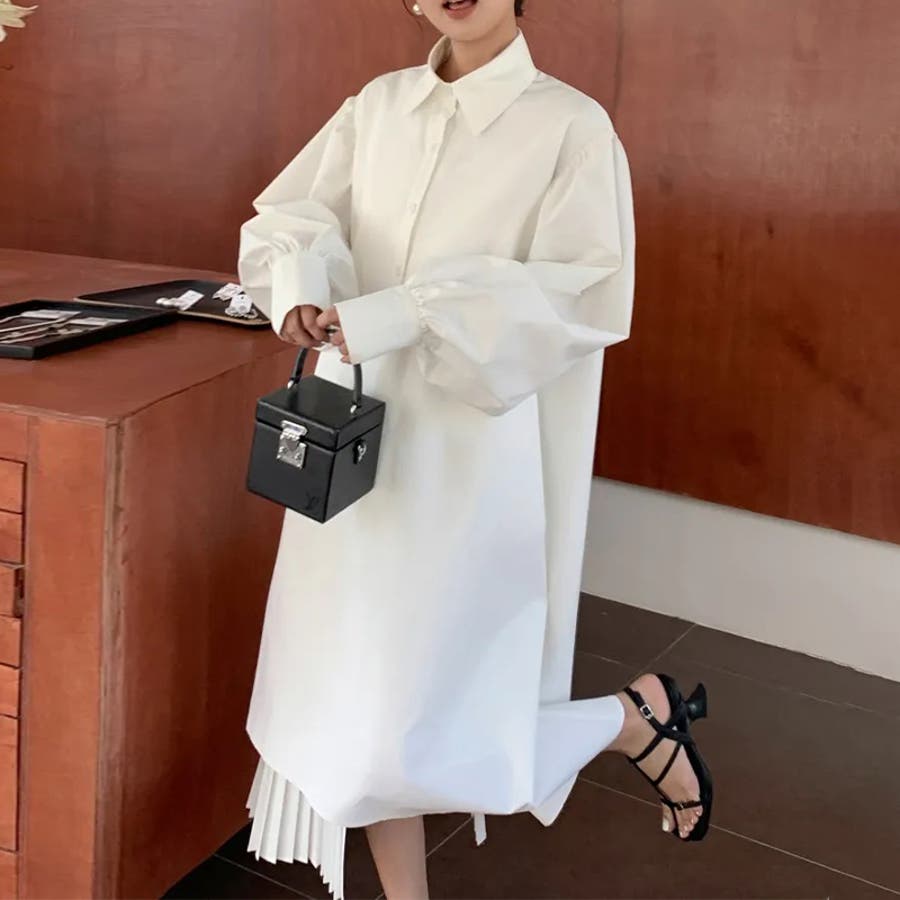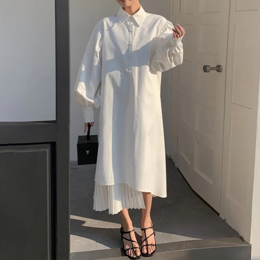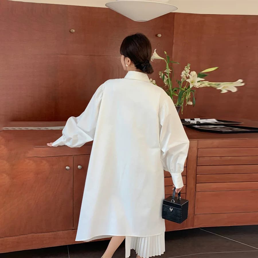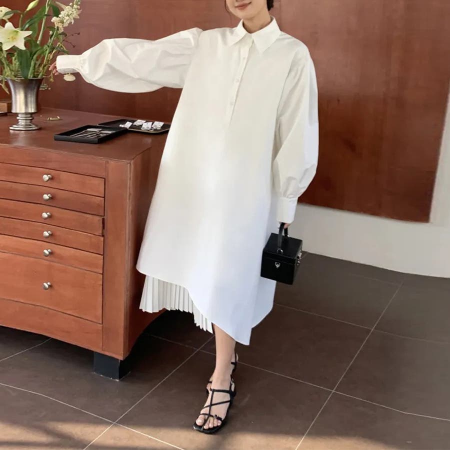 気負わず快適☆【春】切り替えプリーツ シャツワンピース
