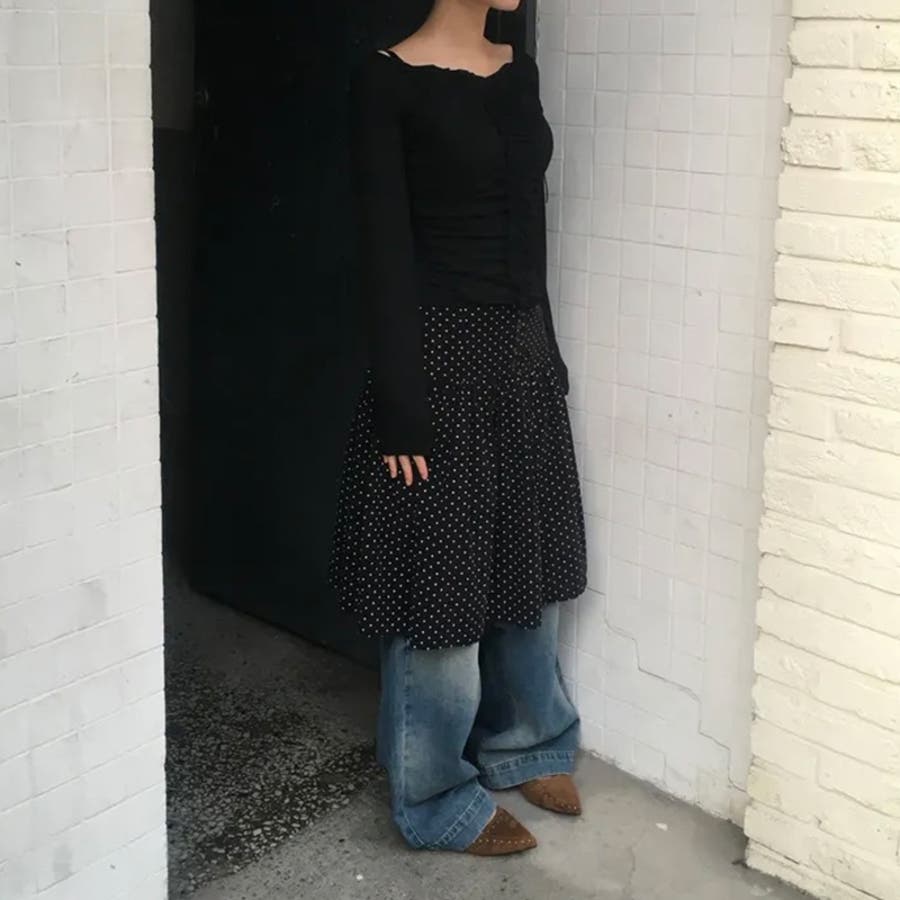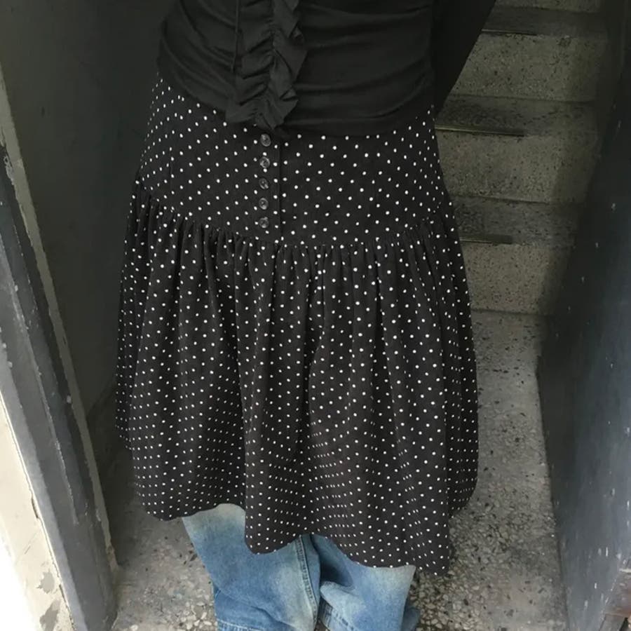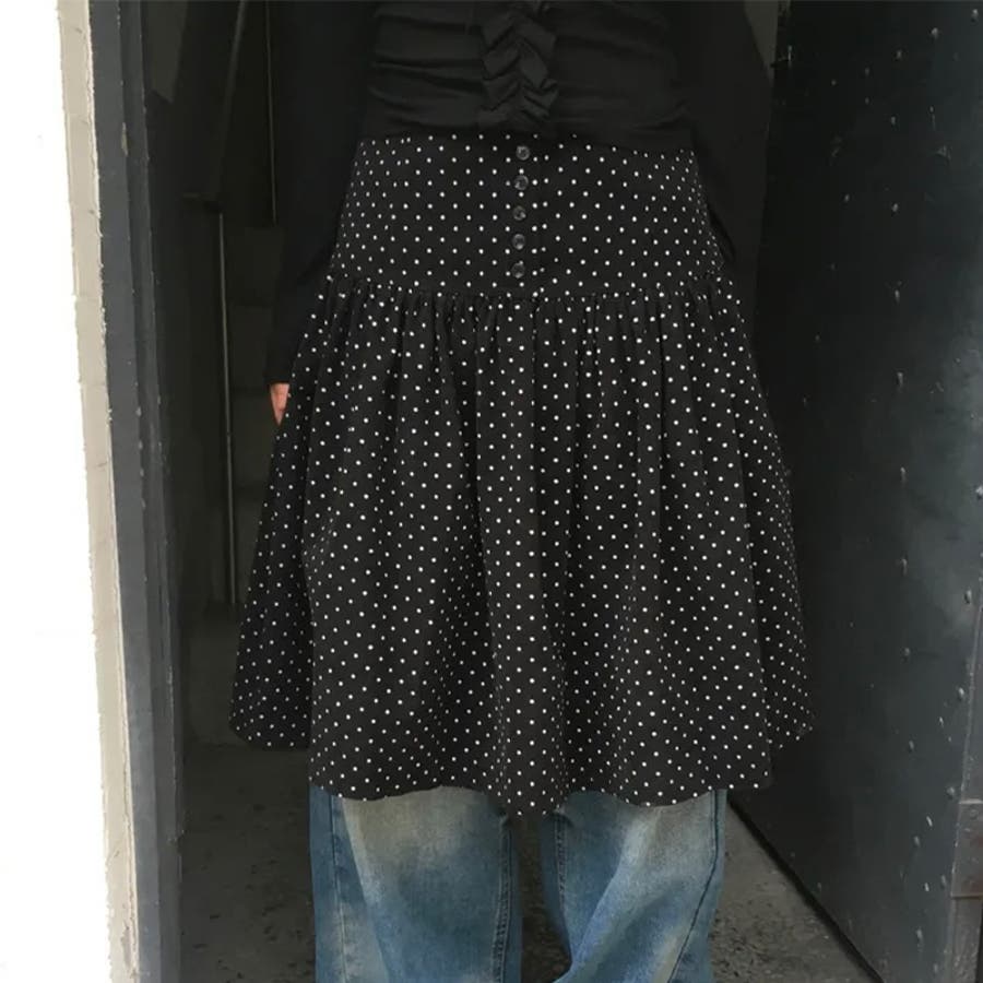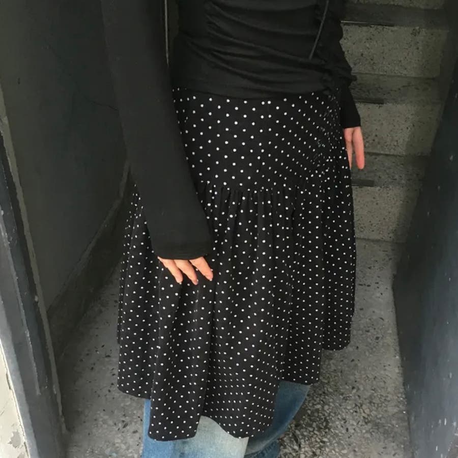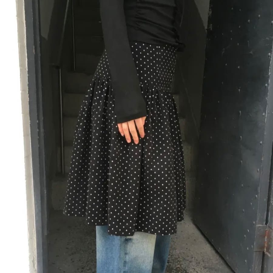 今季トレンド☆【春】スーツ素材ドット柄 フレアスカート体型カバー ミディ丈