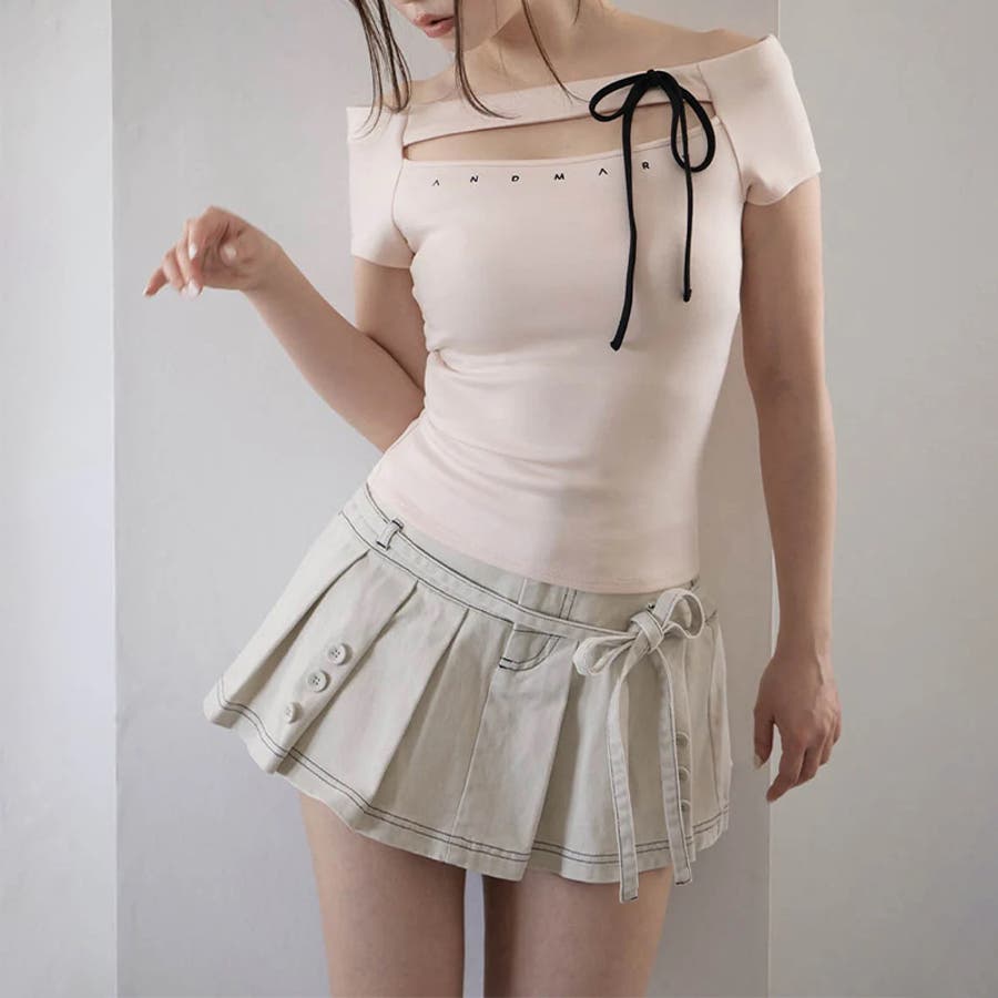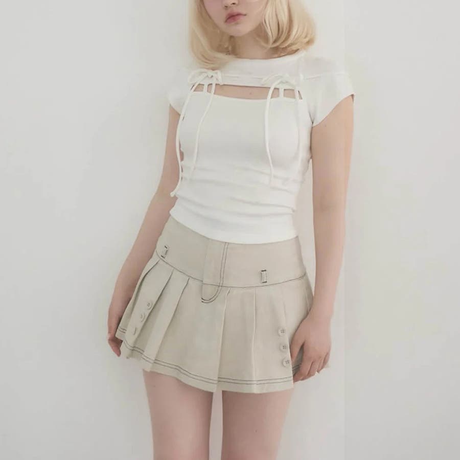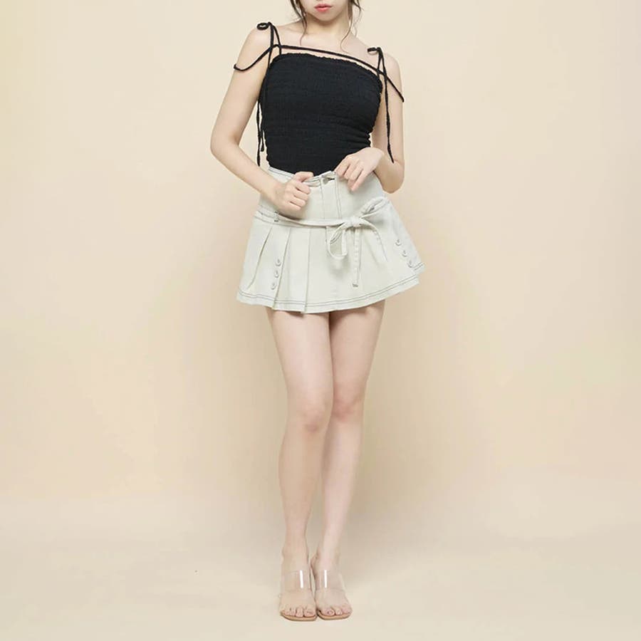 甘辛系ガールズ☆【春】ボタン&リボン プリーツ Aライン ミニスカート