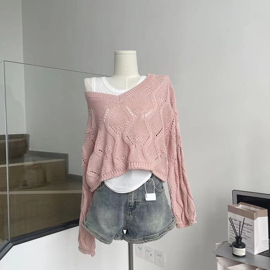 インナーのタンクトップも伸縮性がすごくあって、かつ透けることもなく着やすかった。ニットは若干引っかかりやすさはあるけど2パターンの着方ができるのはいい