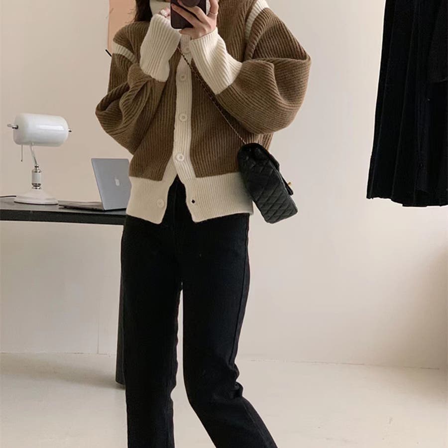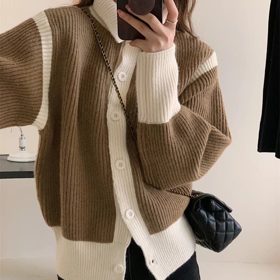 【SHOPLIST限定】柔らかいバイカラータートルネックカーディガン